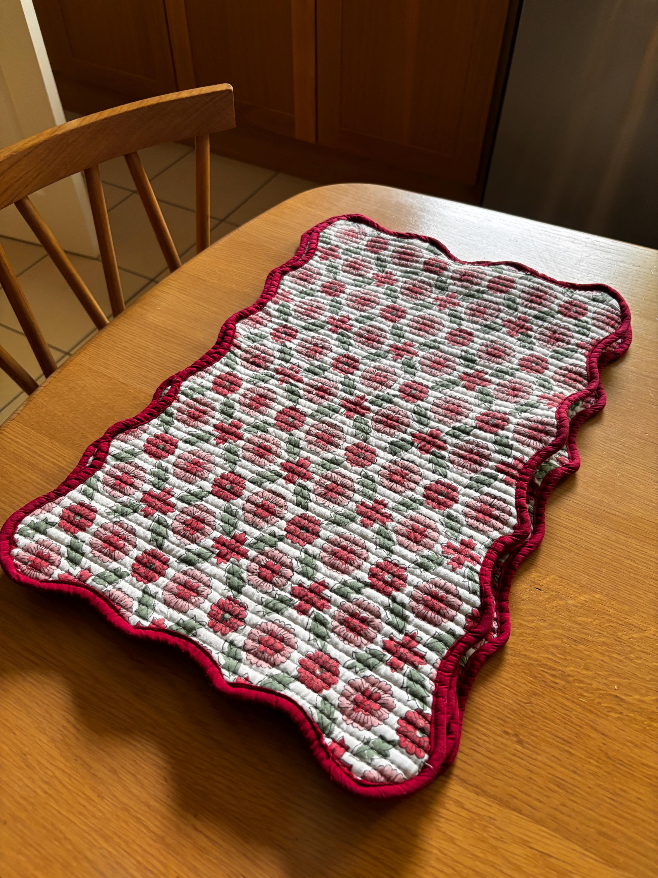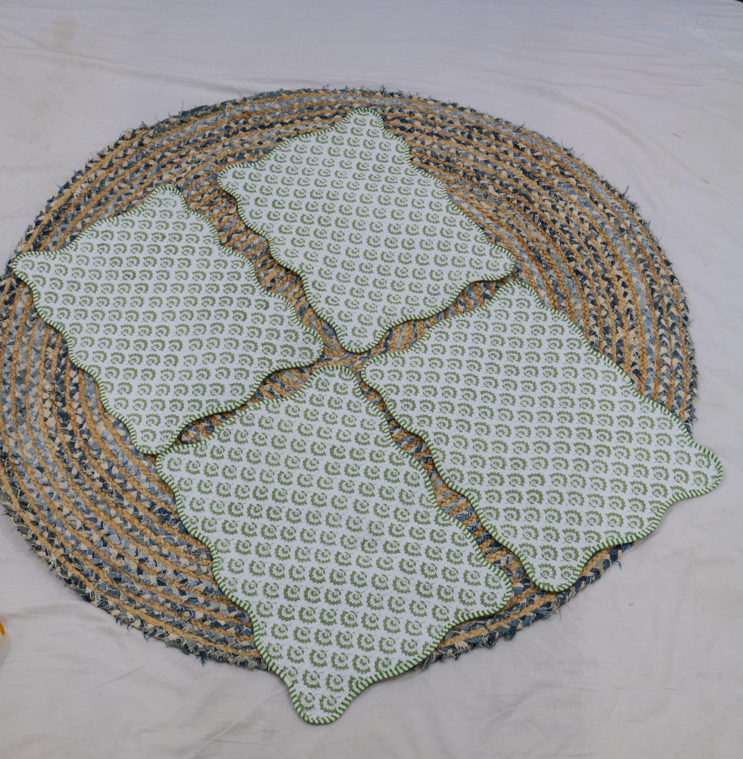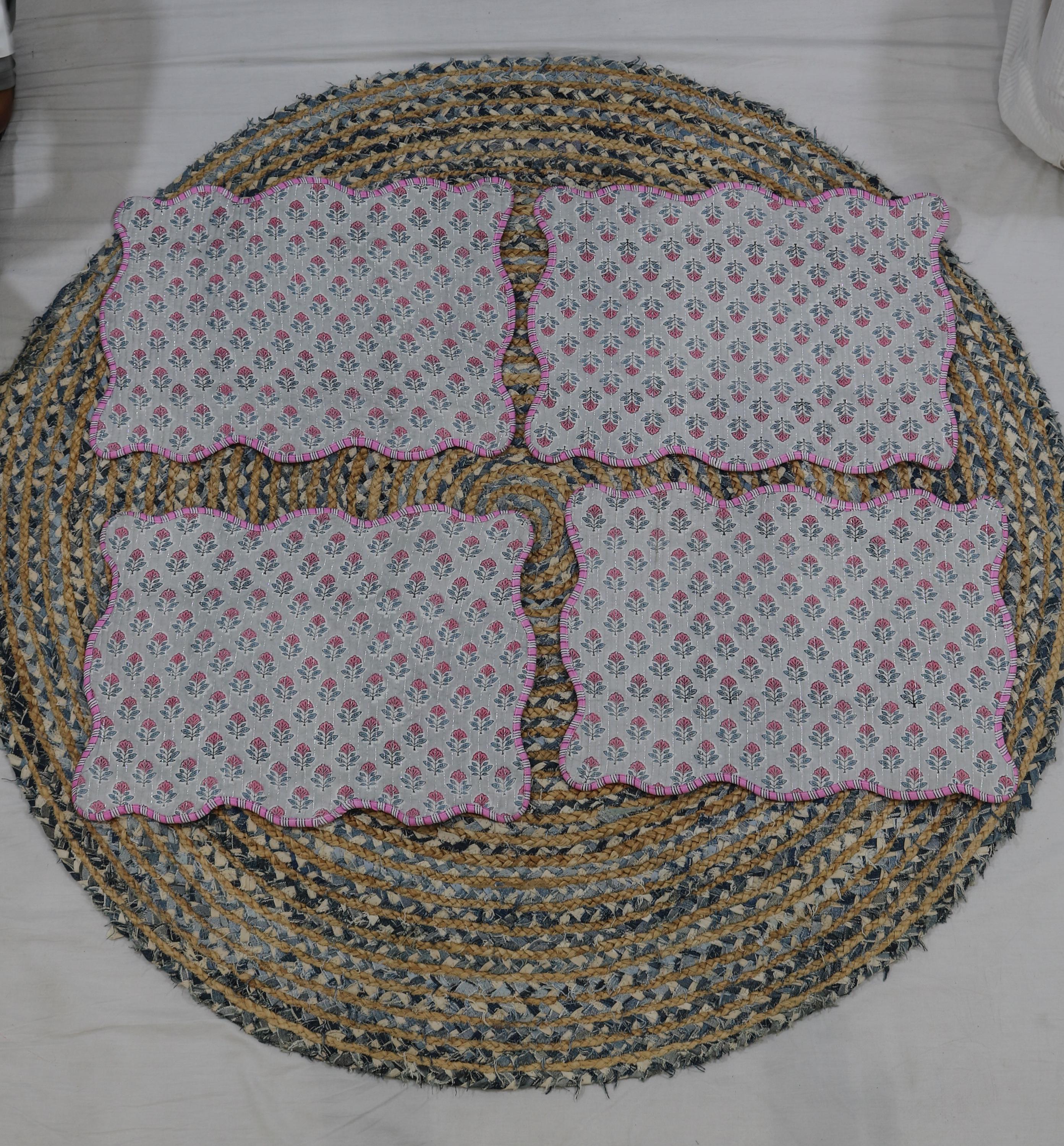 Hand Block Print Cotton Placemats: Floral Table Decor, Set of 2