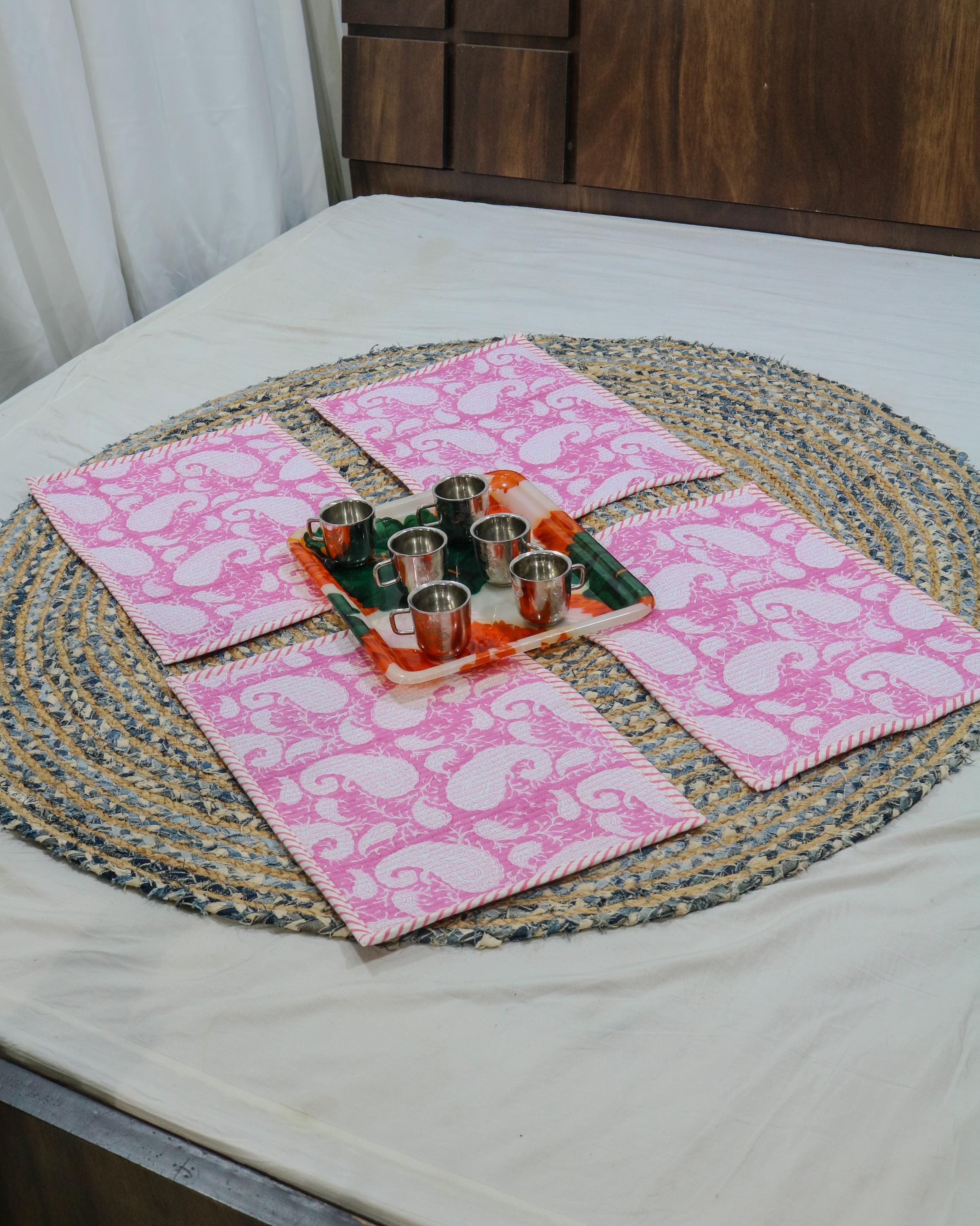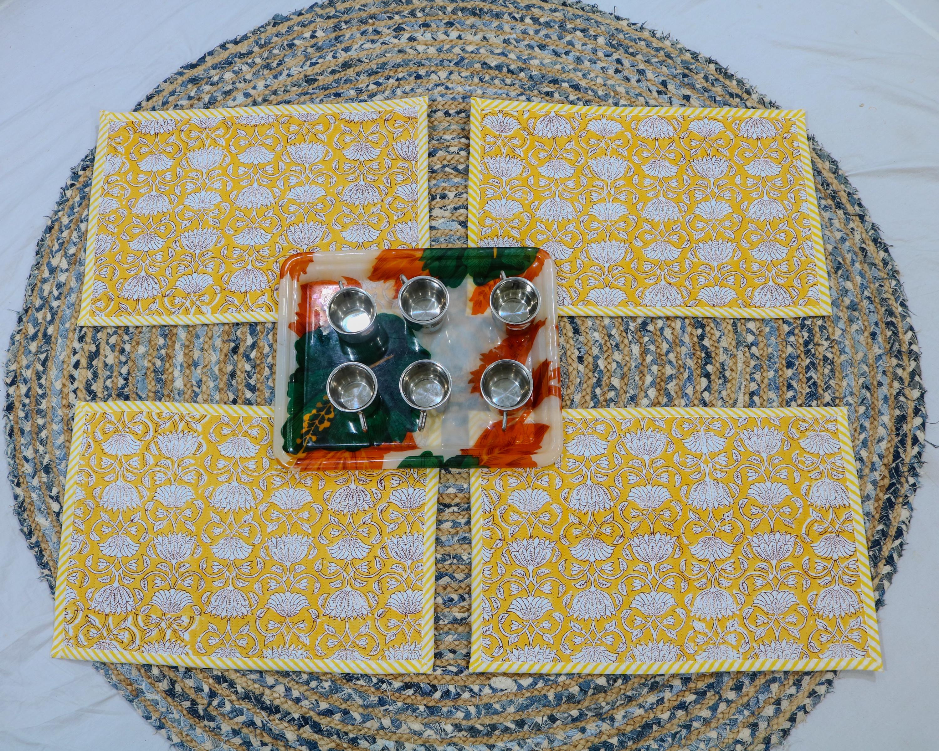 Add a splash of color with our placemats! Our gorgeous Rainbow blossom floral block print placemats are created from beautiful hand block printed Cotton fabric. The placemats are perfectly constructed Table Mat and Placemats