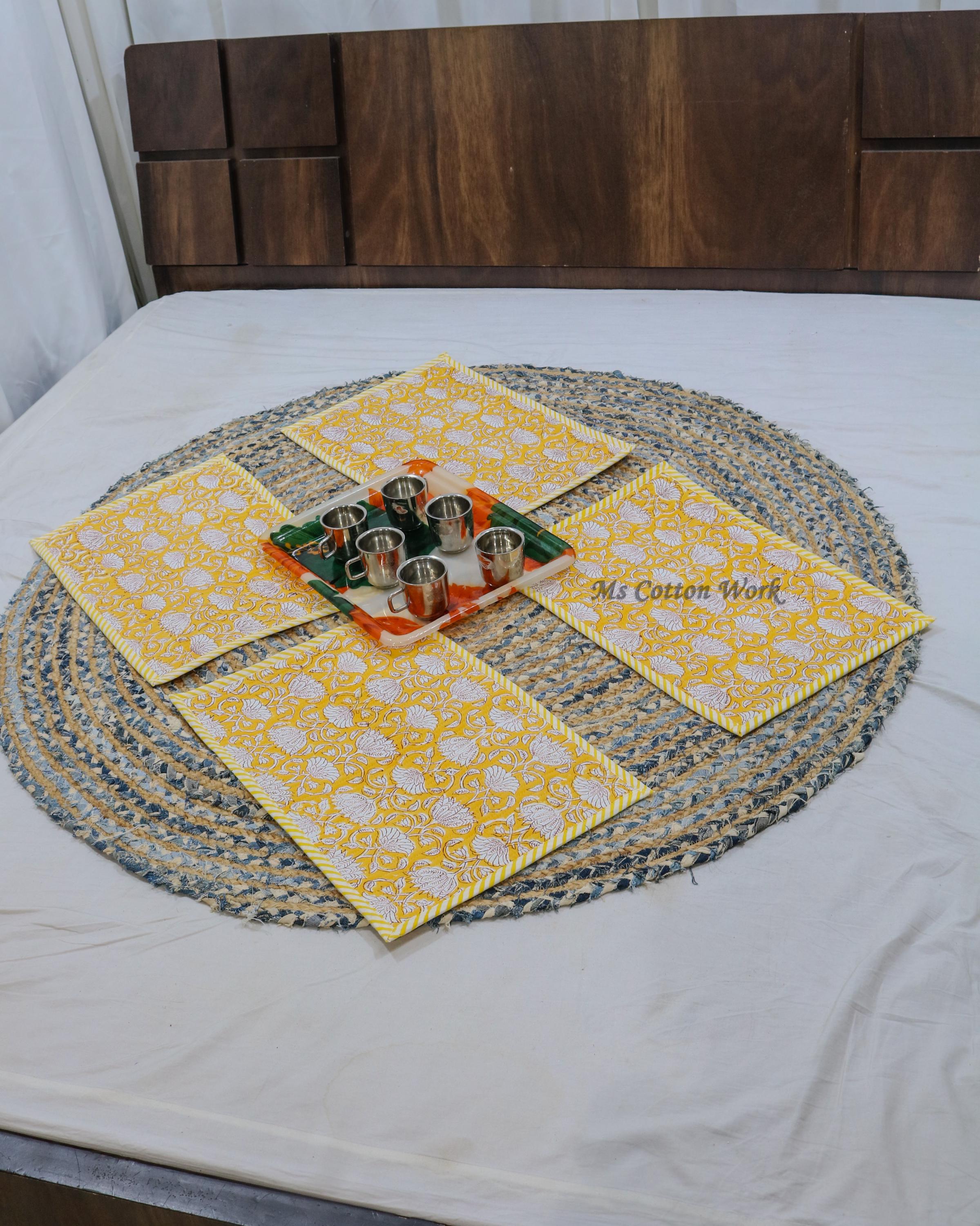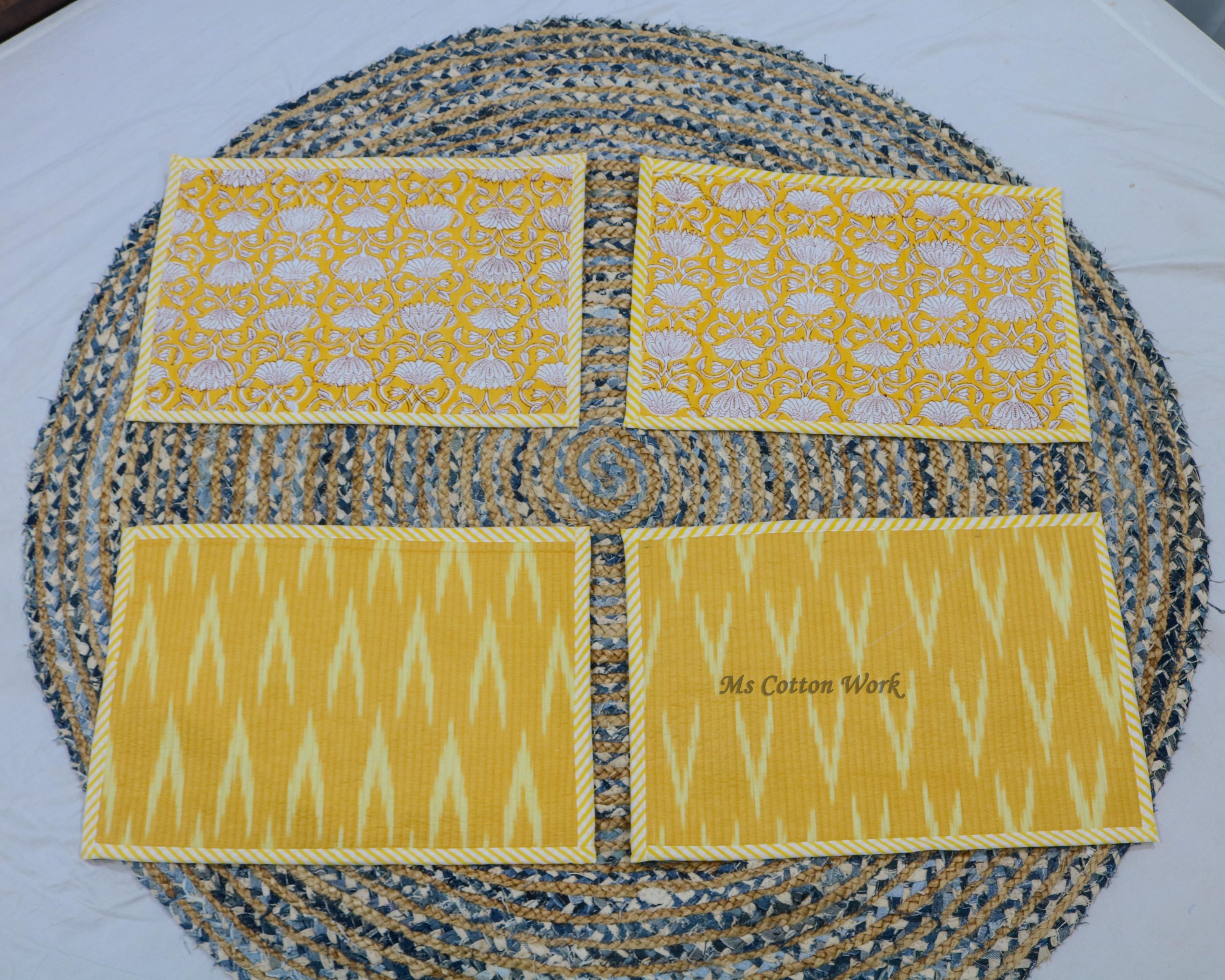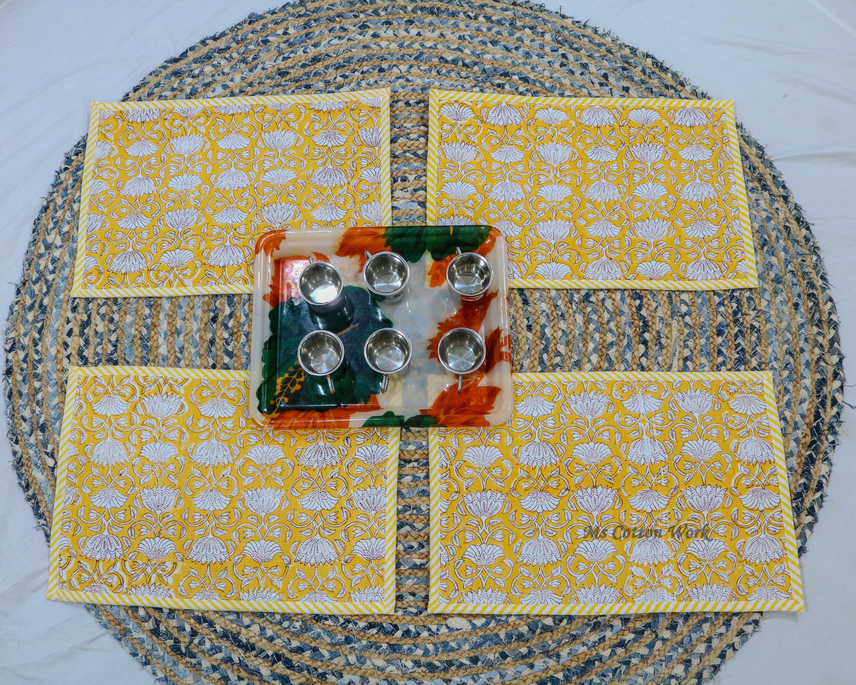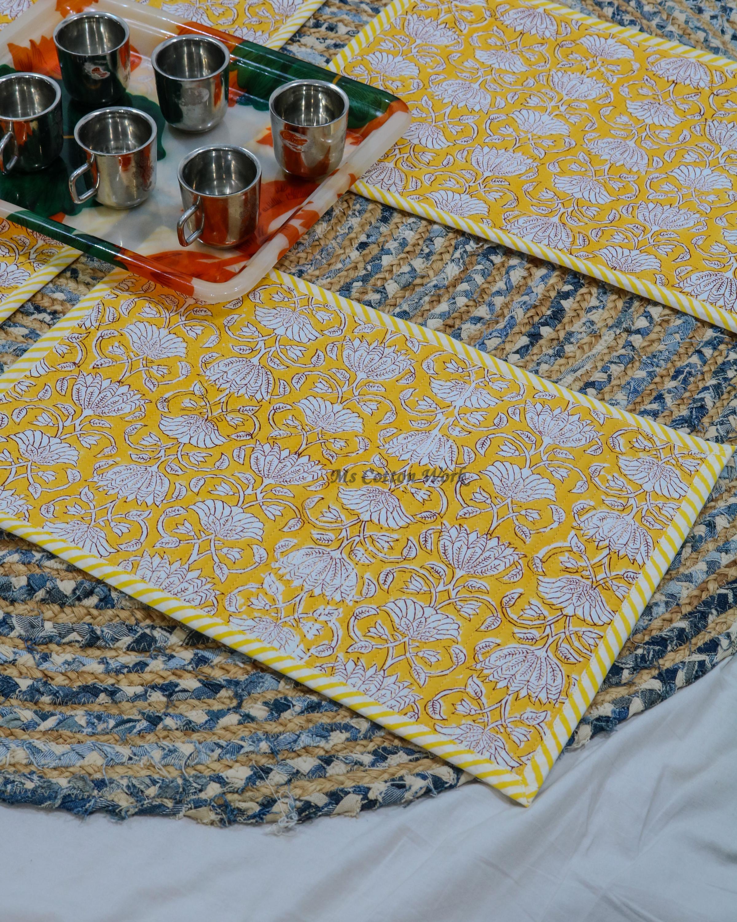 Add a splash of color with our placemats! Our gorgeous Rainbow blossom floral block print placemats are created from beautiful hand block printed Cotton fabric. The placemats are perfectly constructed Table Mat and Napkins.