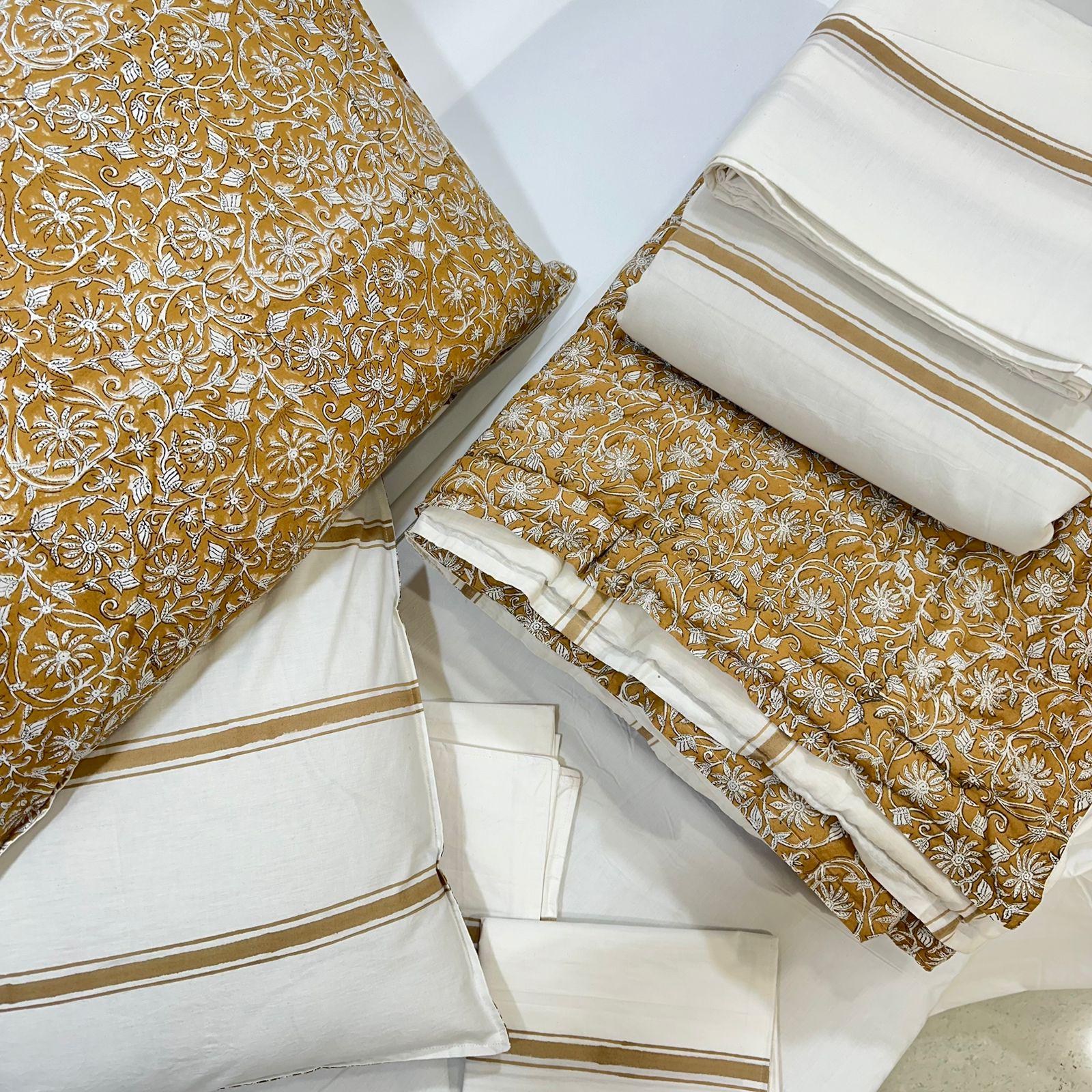 Transform your bedroom into a sanctuary of style and comfort with our Hand Block Printed Quilt and AC Blanket (Dohar). Experience the perfect balance of warmth and breathability for a restful night's sleep, no matter the season.