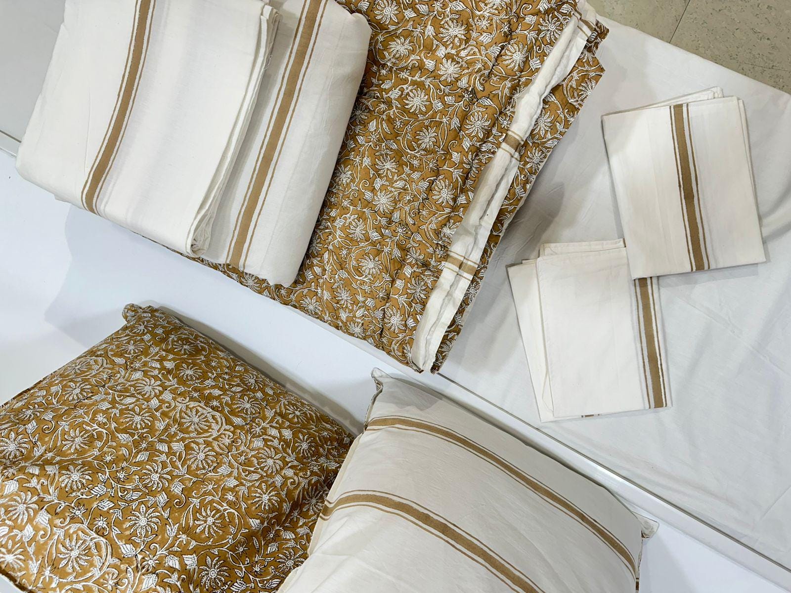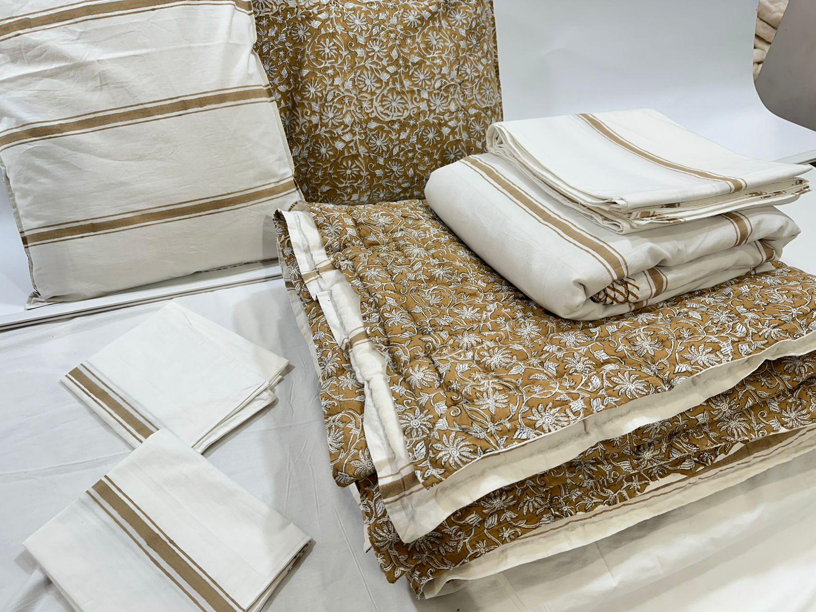 Cotton Block Print Quilt [Q.] (90x108 ) +Dohar [D.] (90x108 ) + (Bedsheet With 2 Pillow Cover) + 2 Pillow Cover - {18x28"} Inch