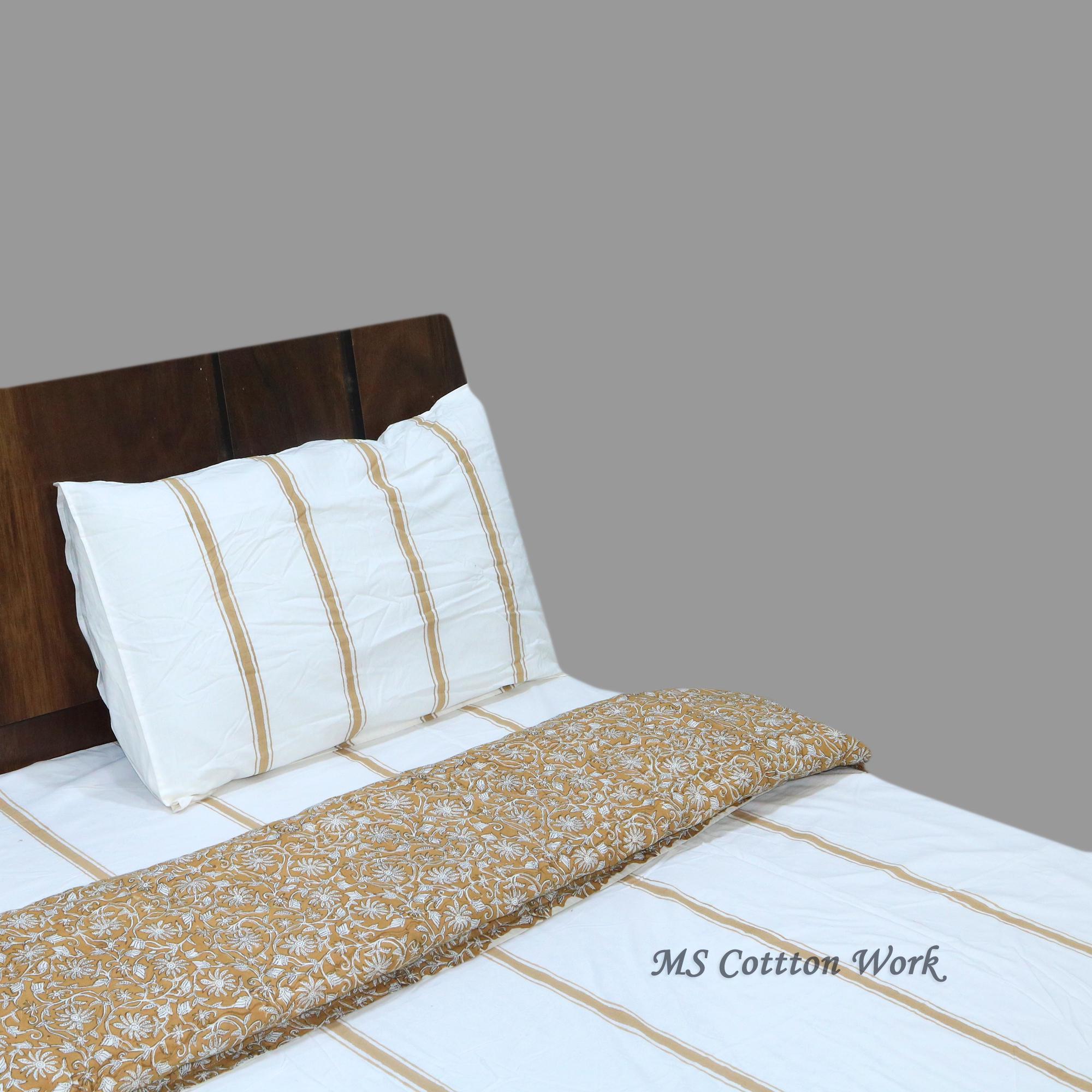 Size- Cotton Block Print Matching Quilt (90x108 ) + (Bedsheet With 2 Pillow Cover) - {18x28"} Inch