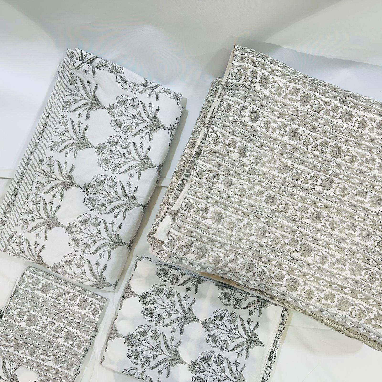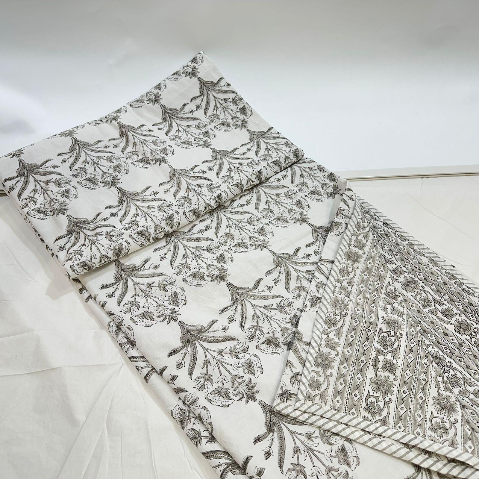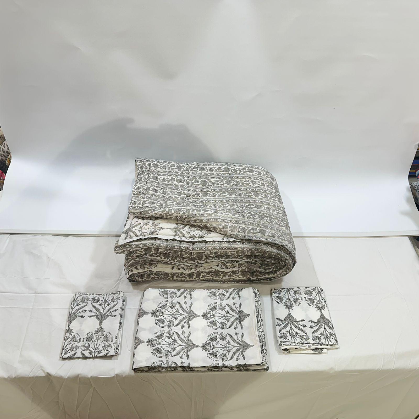 Size- Cotton Block Print Matching Quilt (90x108 ) + (Bedsheet With 2 Pillow Cover) - {18x28"} Inch