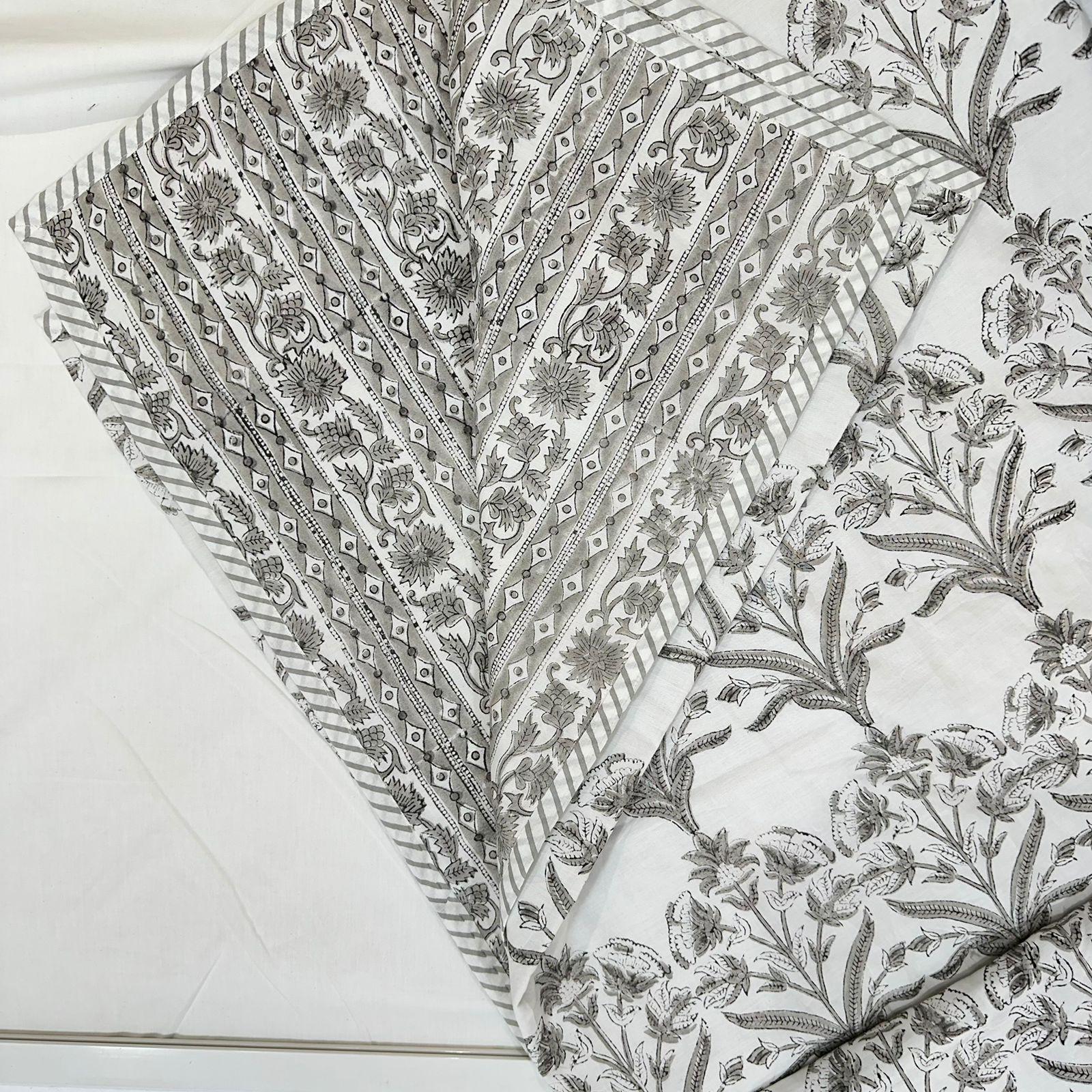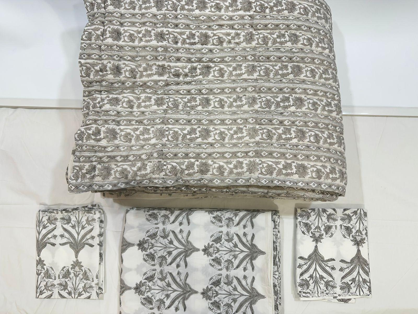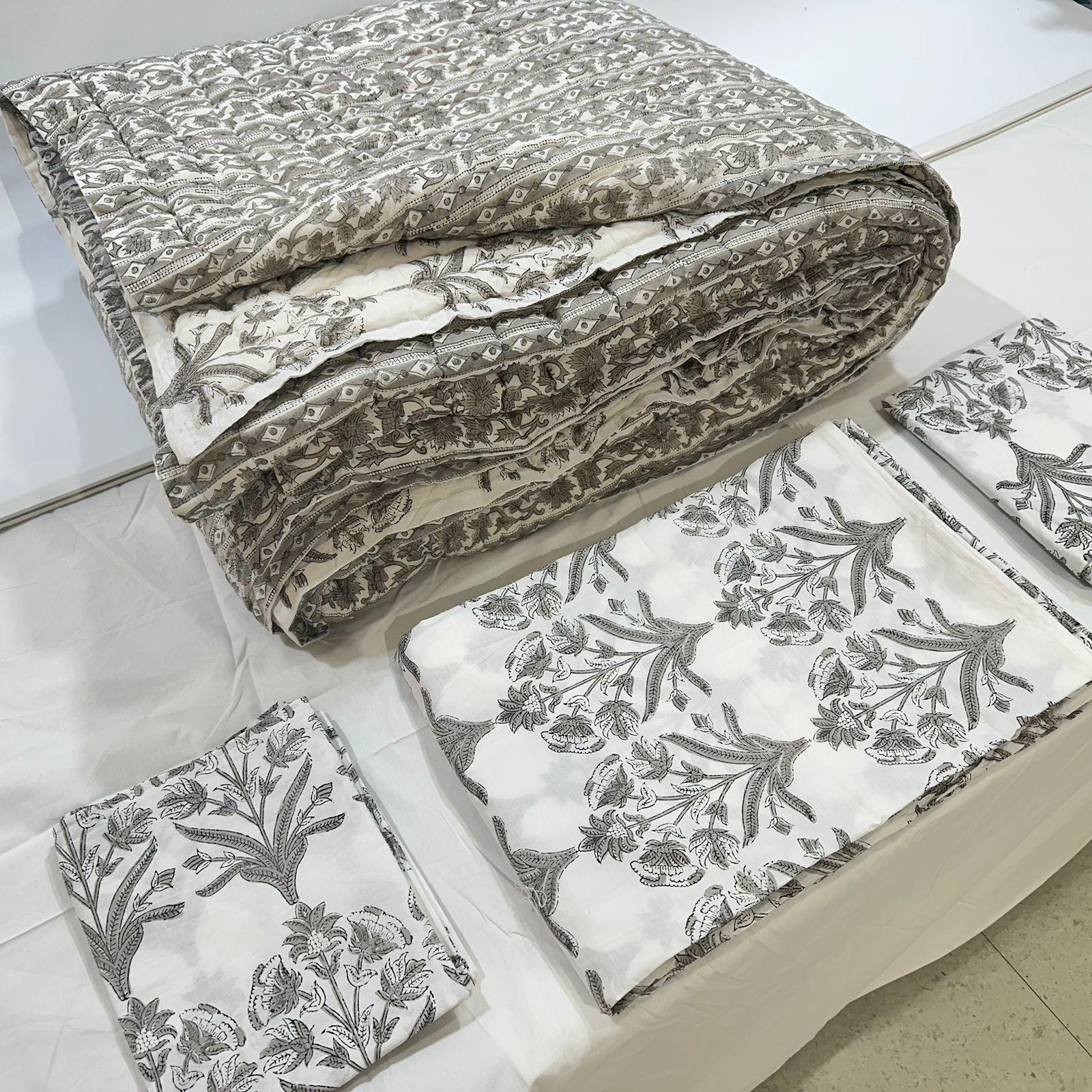 Size- Cotton Block Print Matching Quilt (90x108 ) + (Bedsheet With 2 Pillow Cover) - {18x28"} Inch