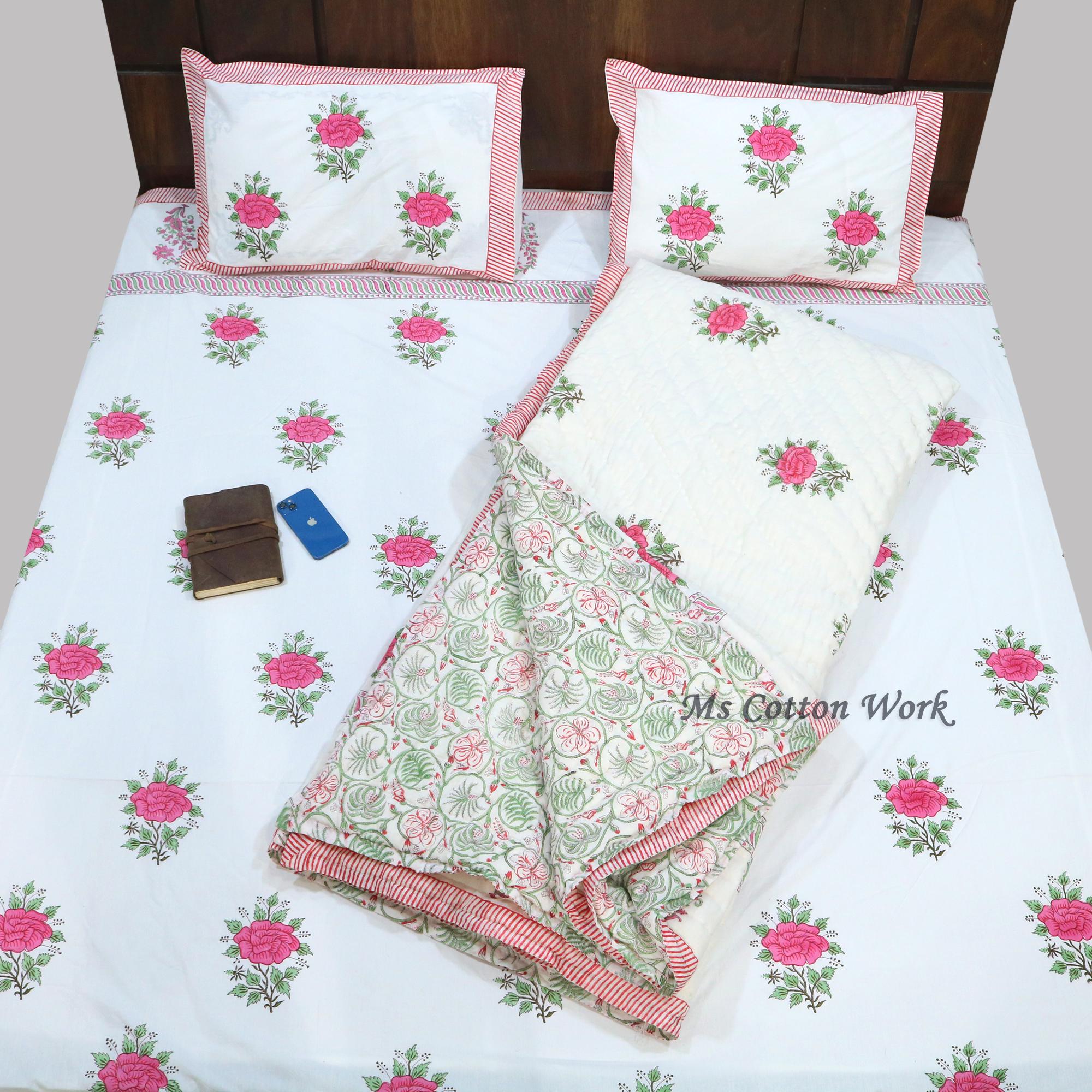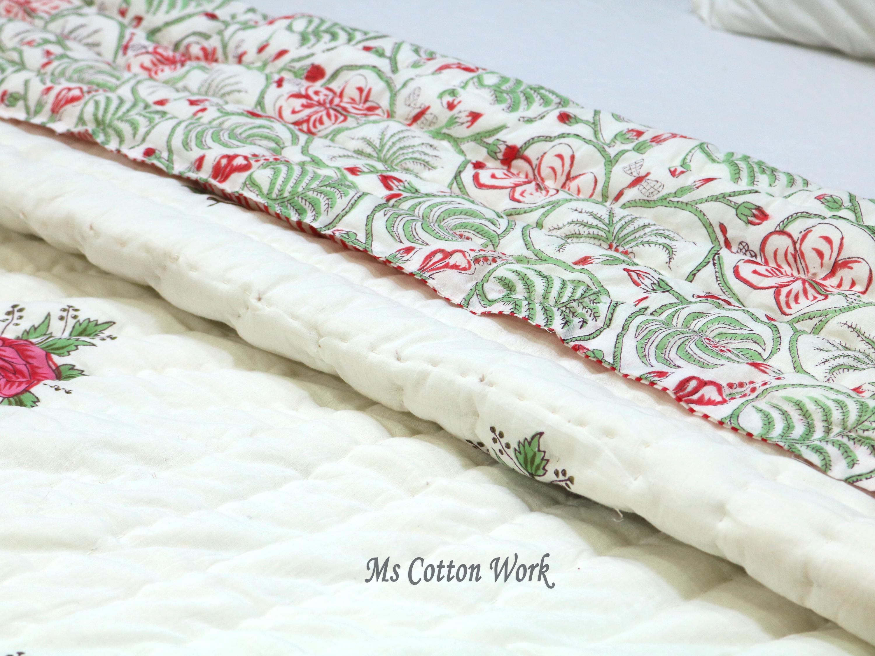 Beautiful Cotton Quilts Hand Block Printed with Hand Stitching Quilts