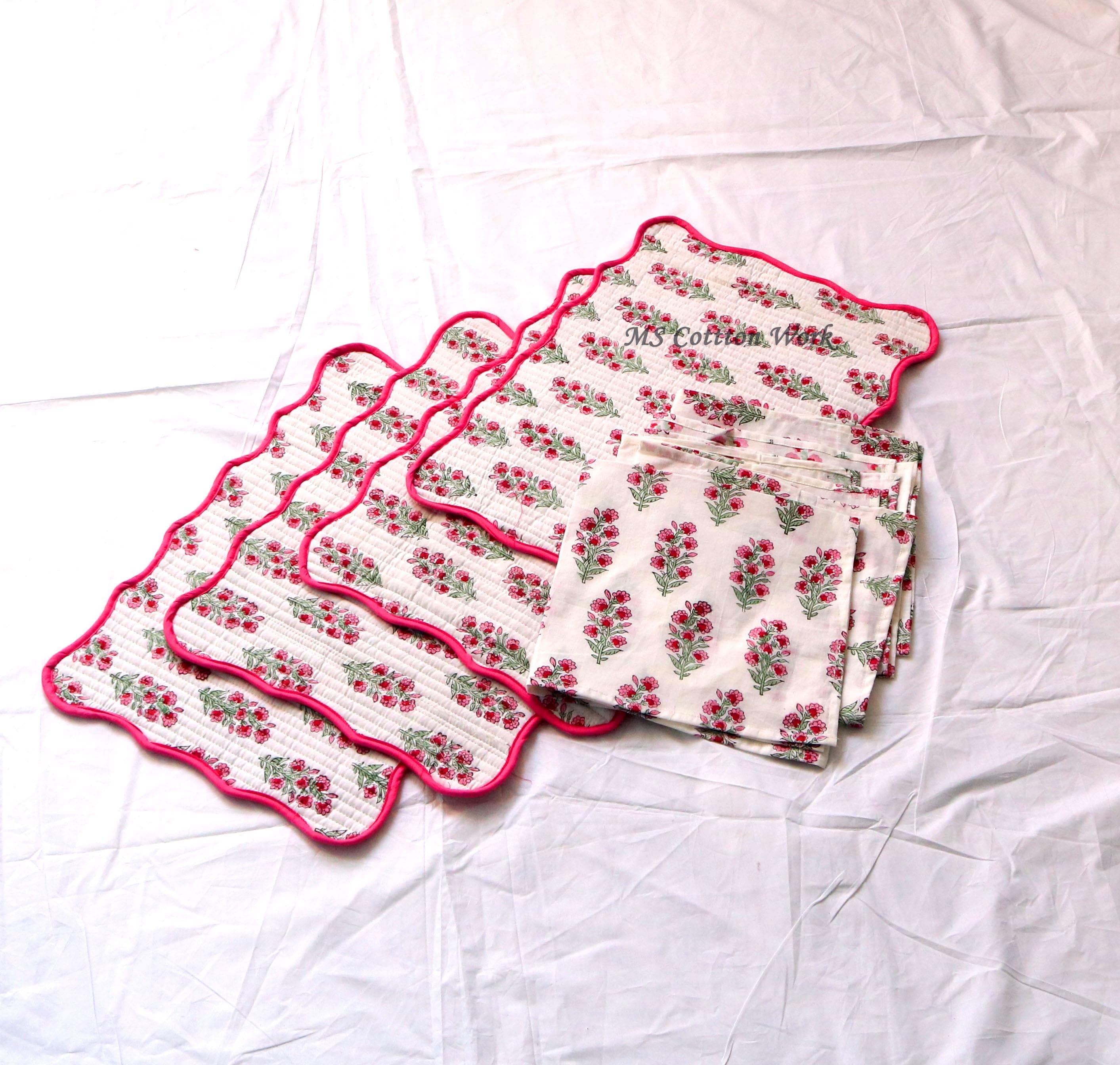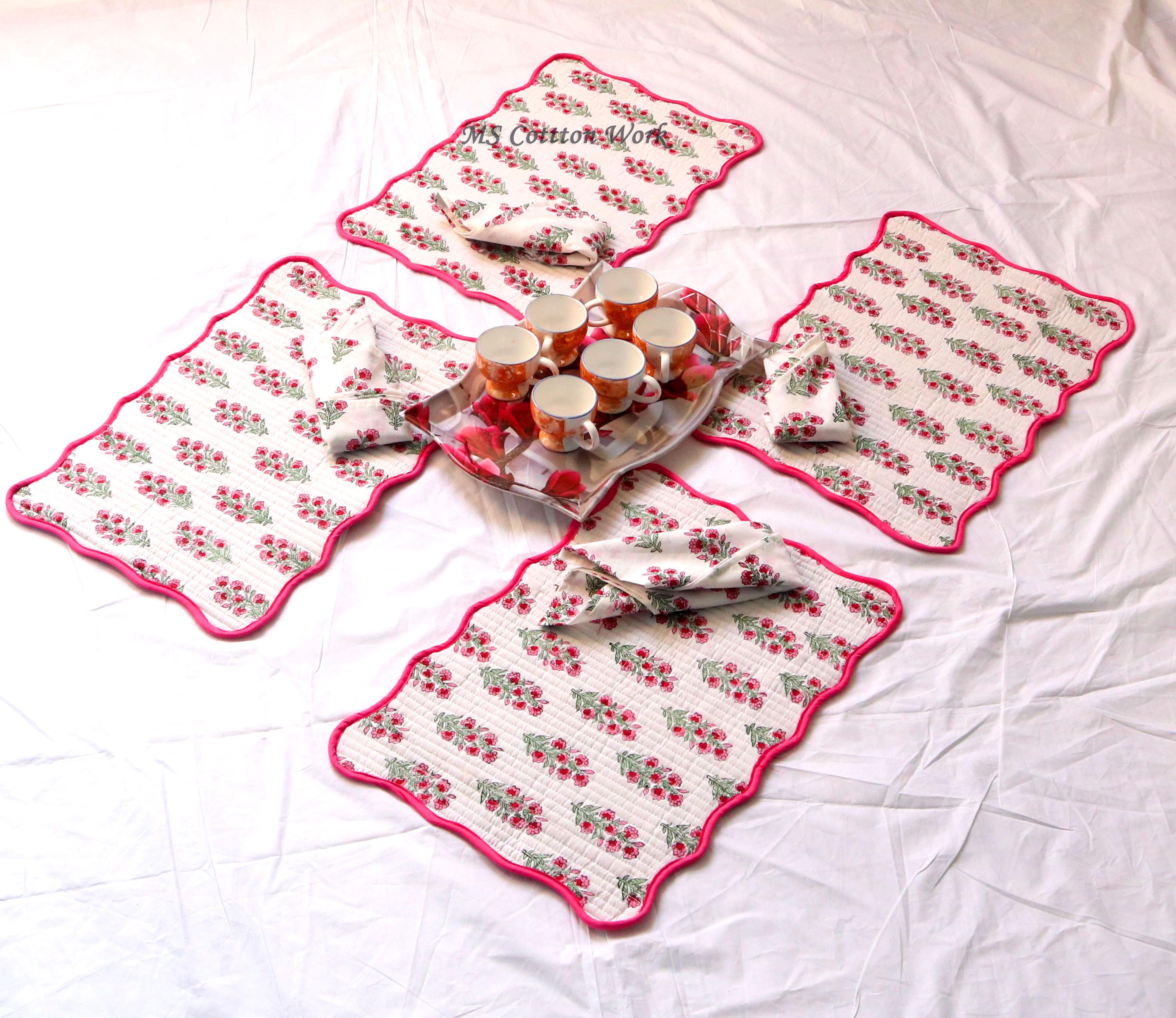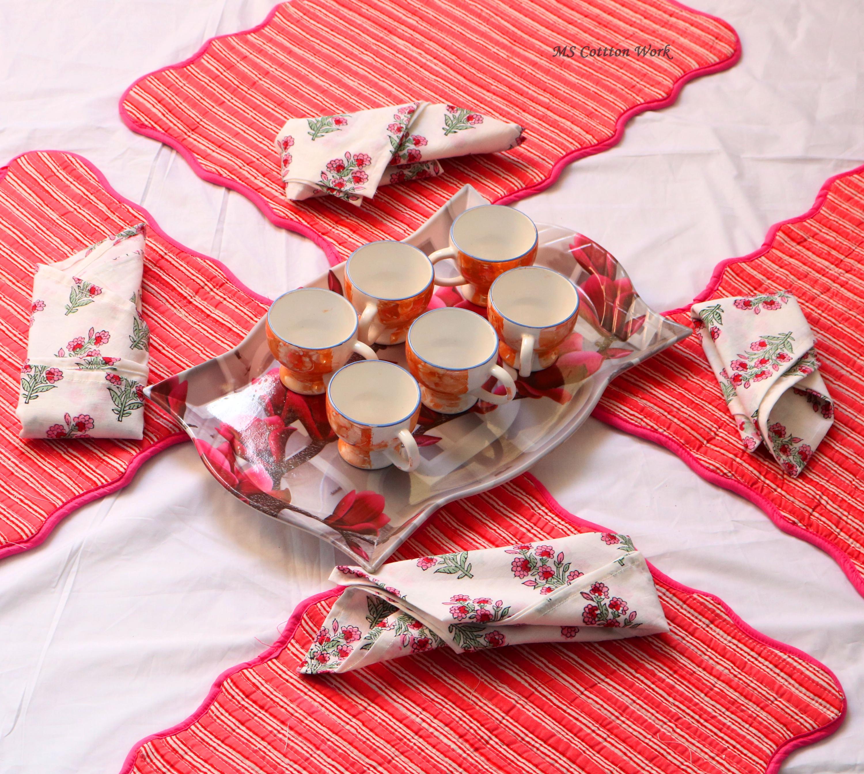 Add a splash of color with our placemats! Our gorgeous Rainbow blossom floral block print placemats are created from beautiful hand block printed Cotton fabric. The placemats are perfectly constructed Table Mat and Napkins.