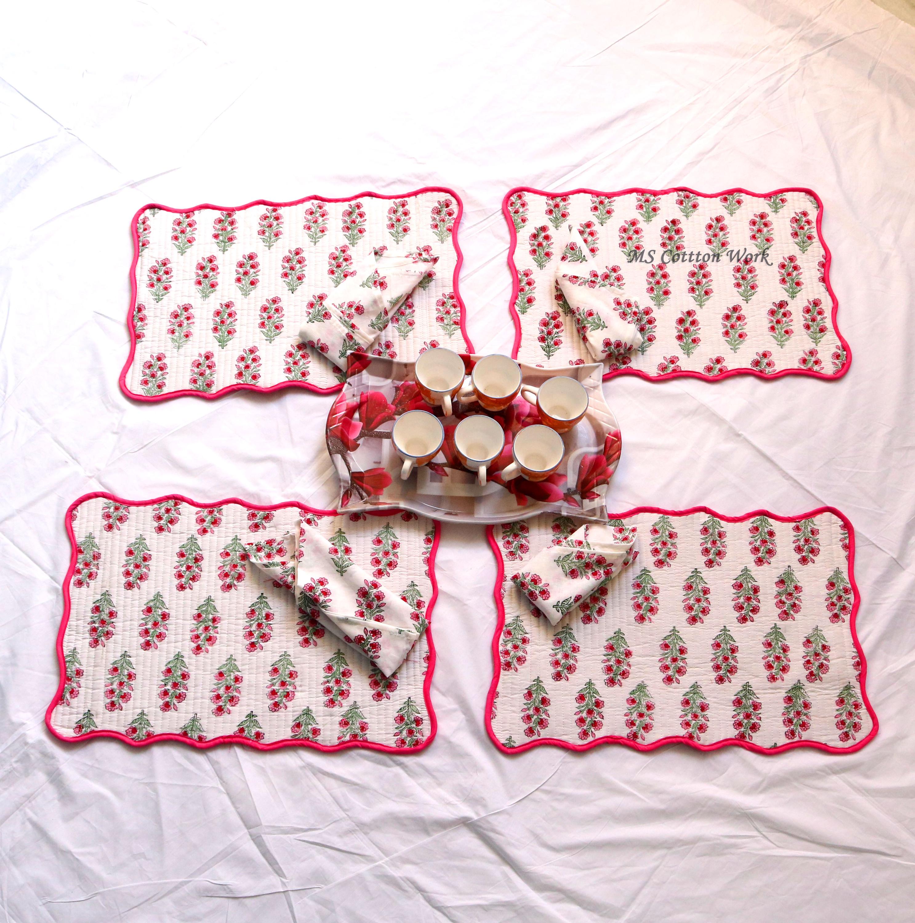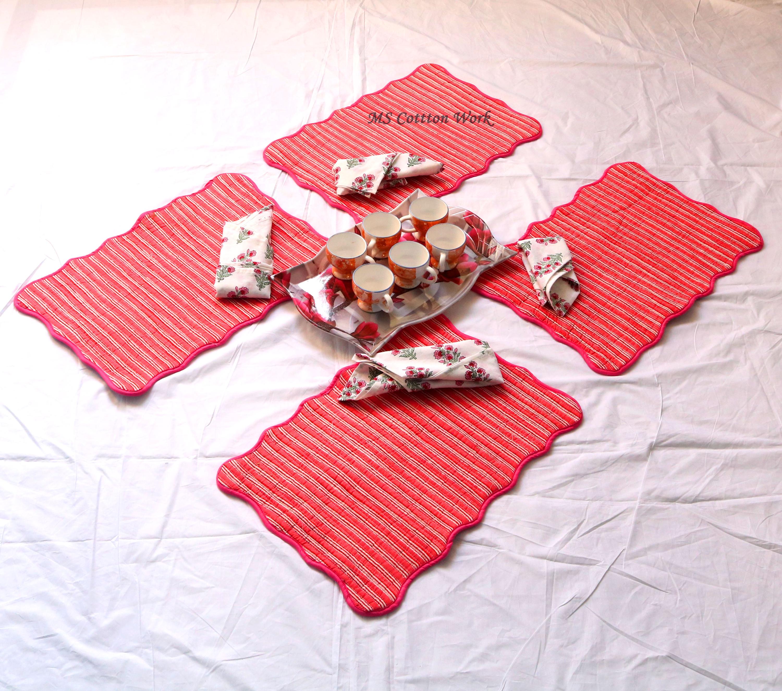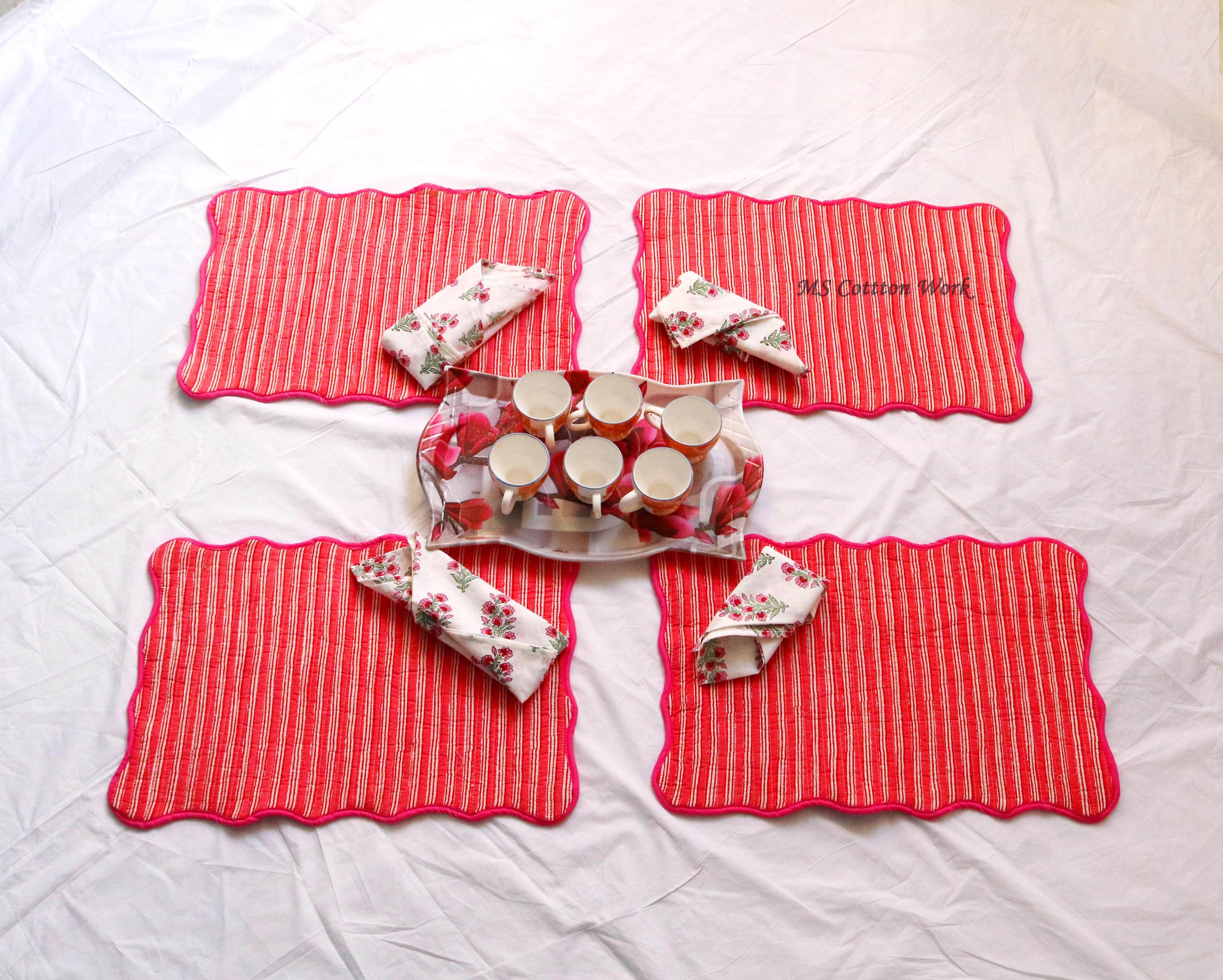 Add a splash of color with our placemats! Our gorgeous Rainbow blossom floral block print placemats are created from beautiful hand block printed Cotton fabric. The placemats are perfectly constructed Table Mat and Napkins.