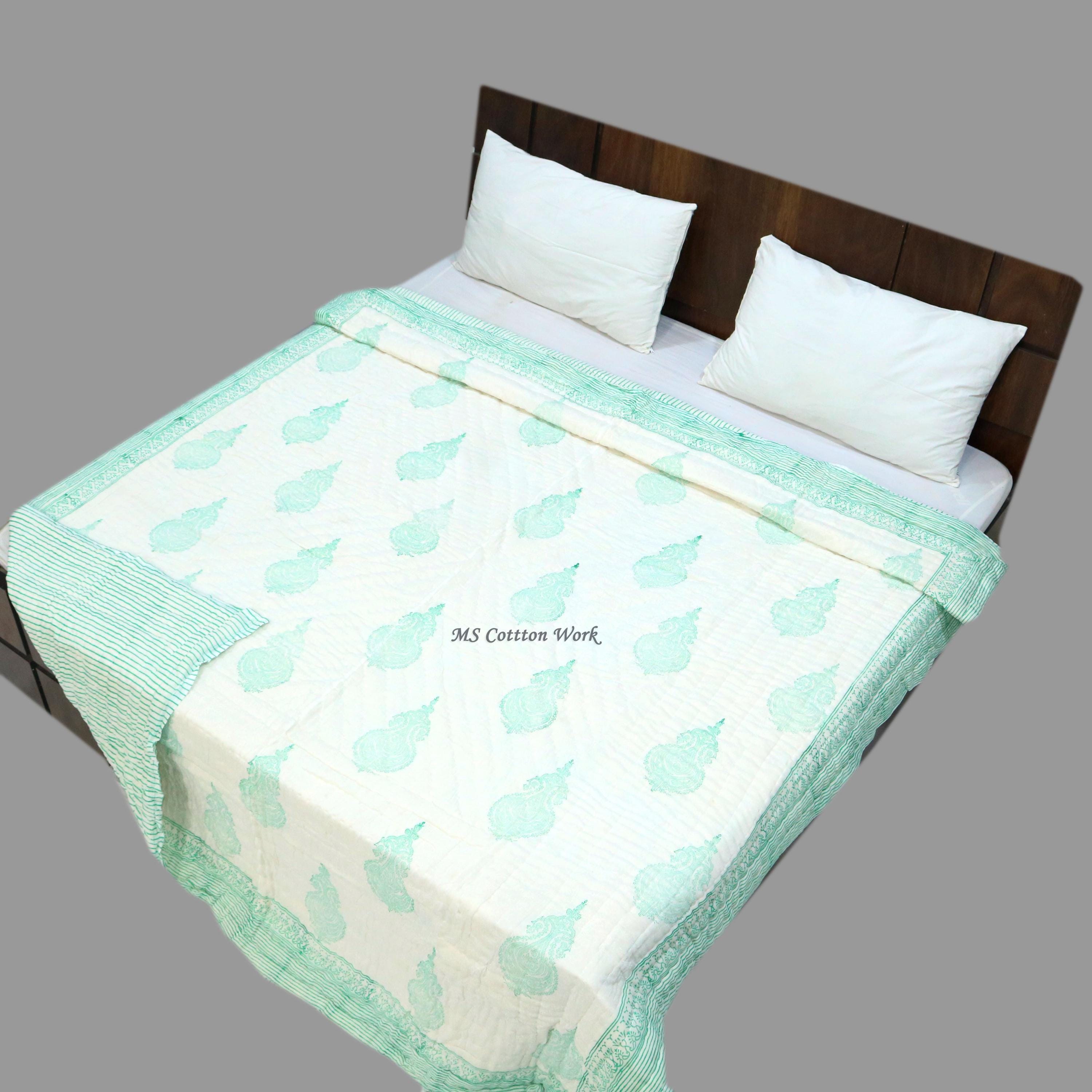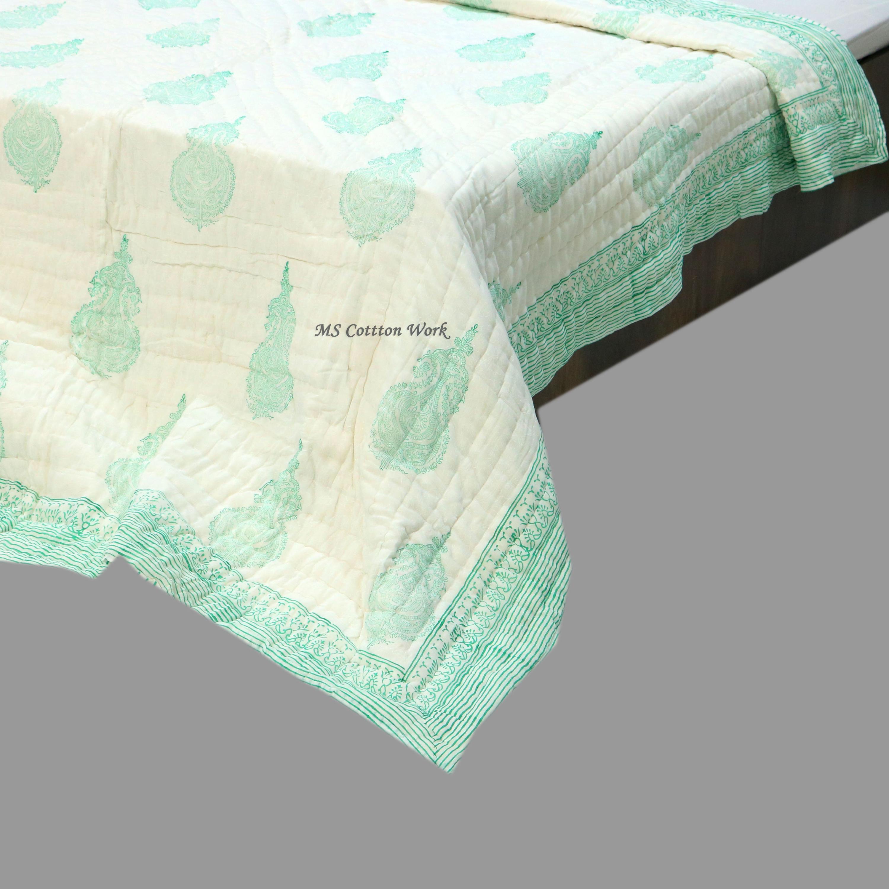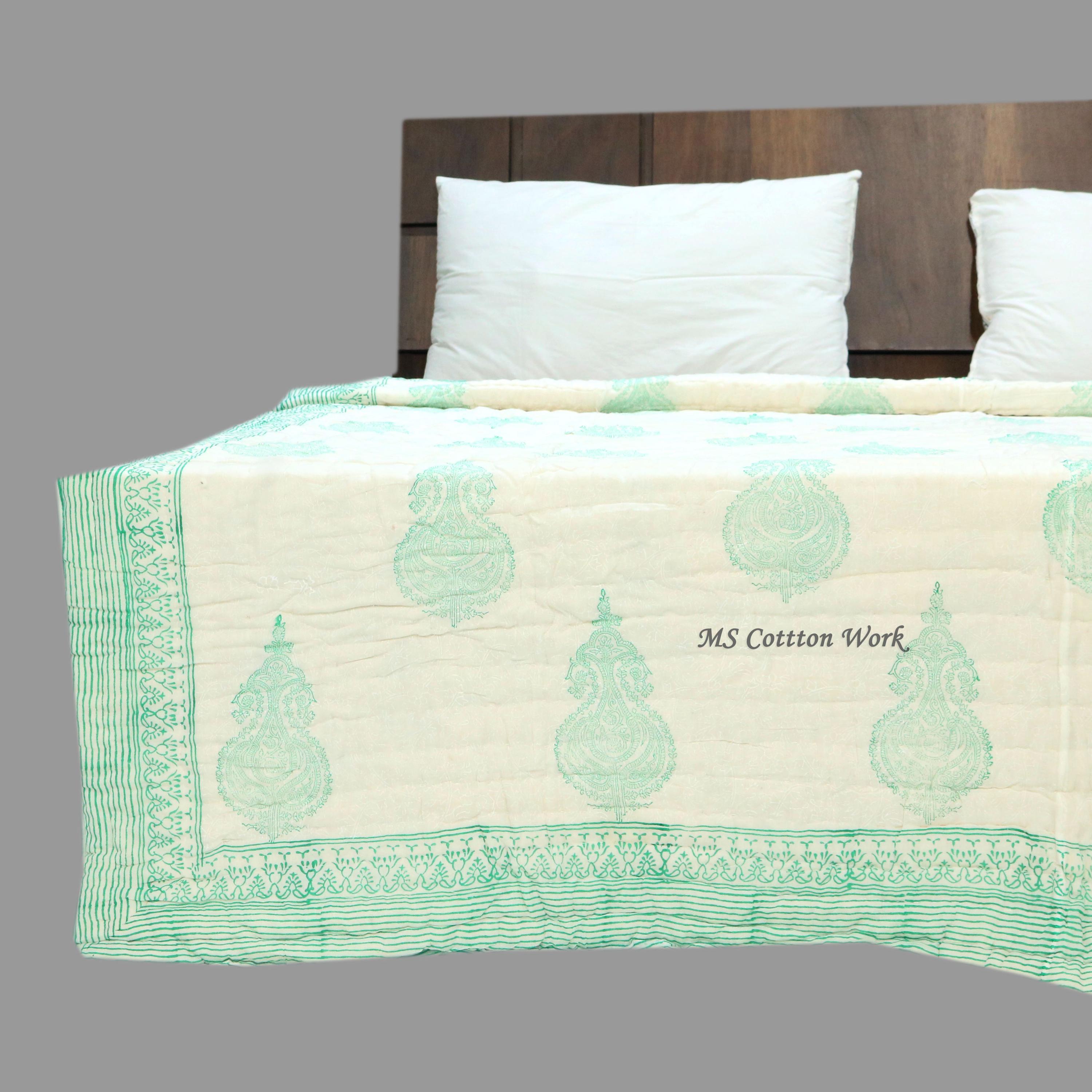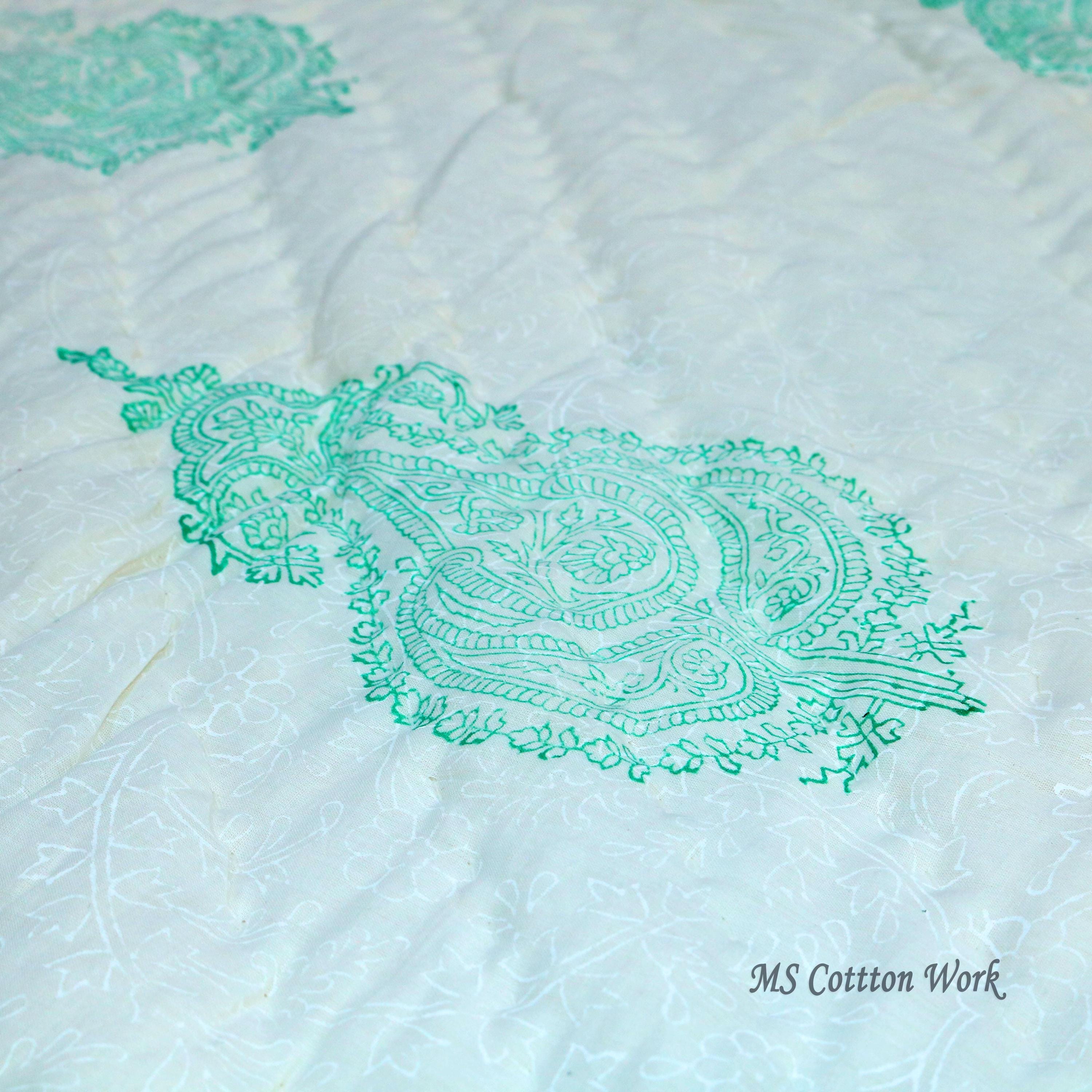 Hand Block Print Cotton Quilt: Queen Size Bed Cover