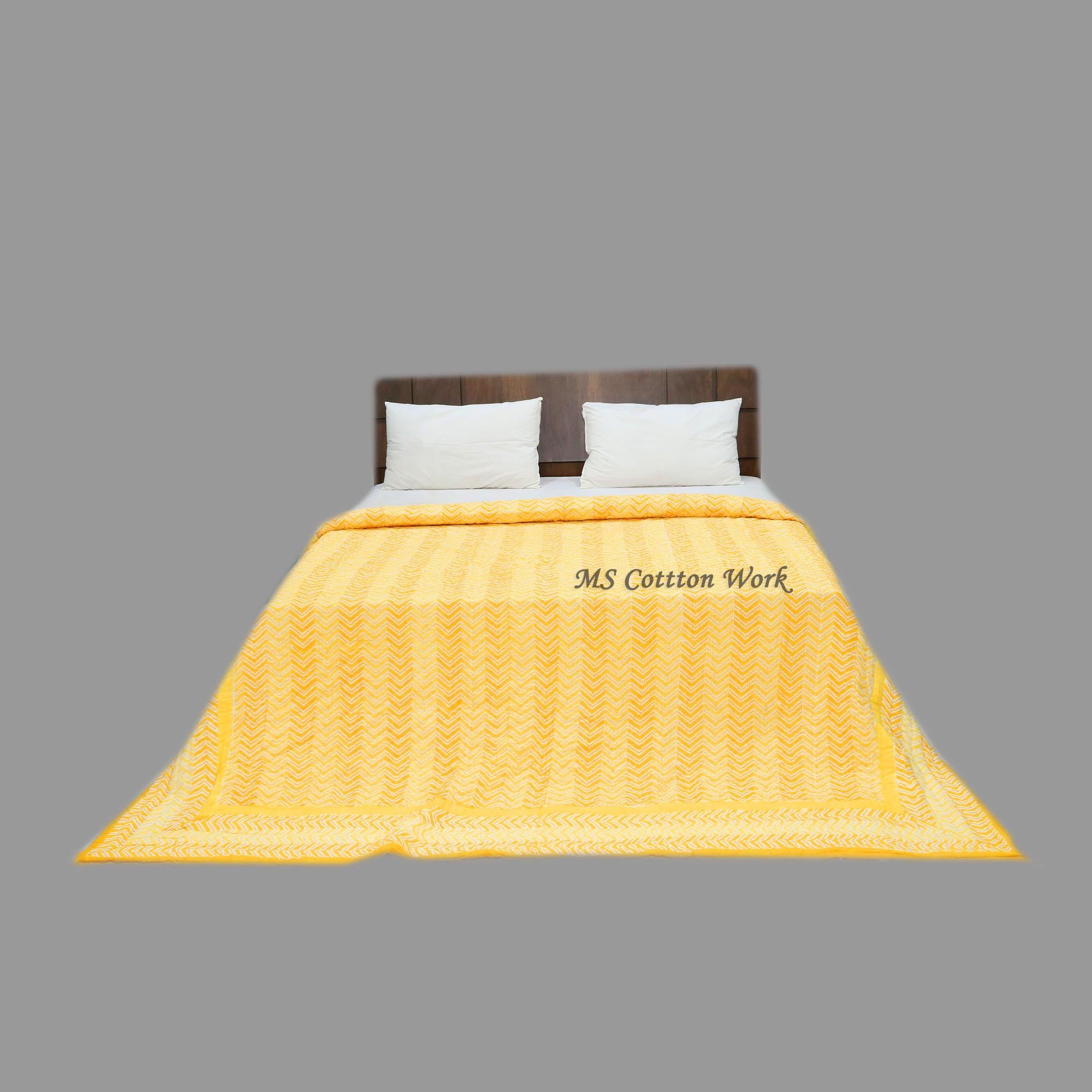 Wrap yourself in warmth and luxury with our Hand Block Printed Quilt, featuring intricate hand block printing on soft Malmal cotton fabric. Filled with natural loose cotton, it offers unparalleled comfort and coziness, perfect for colder seasons. Meticulously hand-stitched throughout, the quilt's unique design adds a touch of artistry and charm to your bedroom.