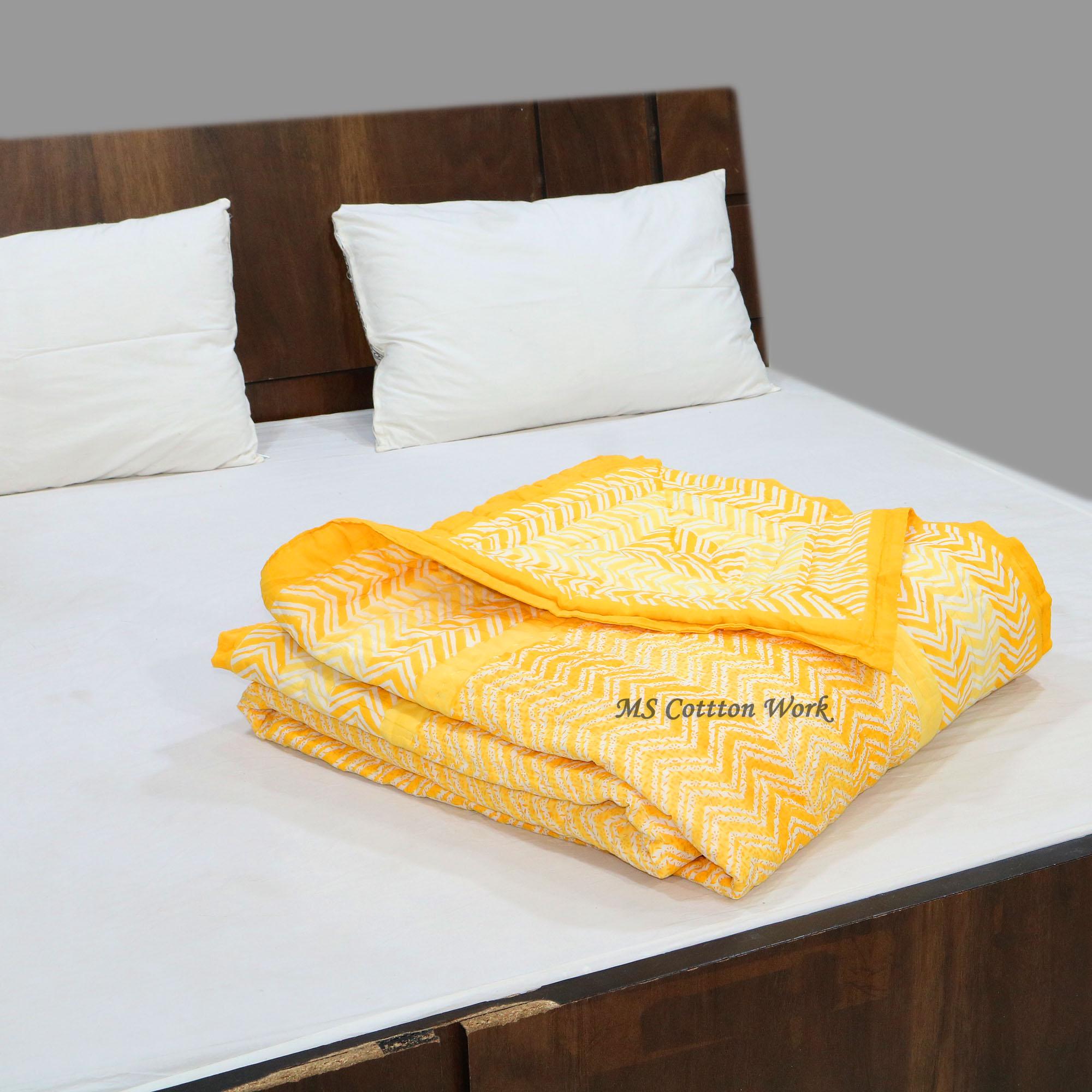 Hand Block Print Cotton Quilt: Jaipuri Razai, Soft Warm Blanket