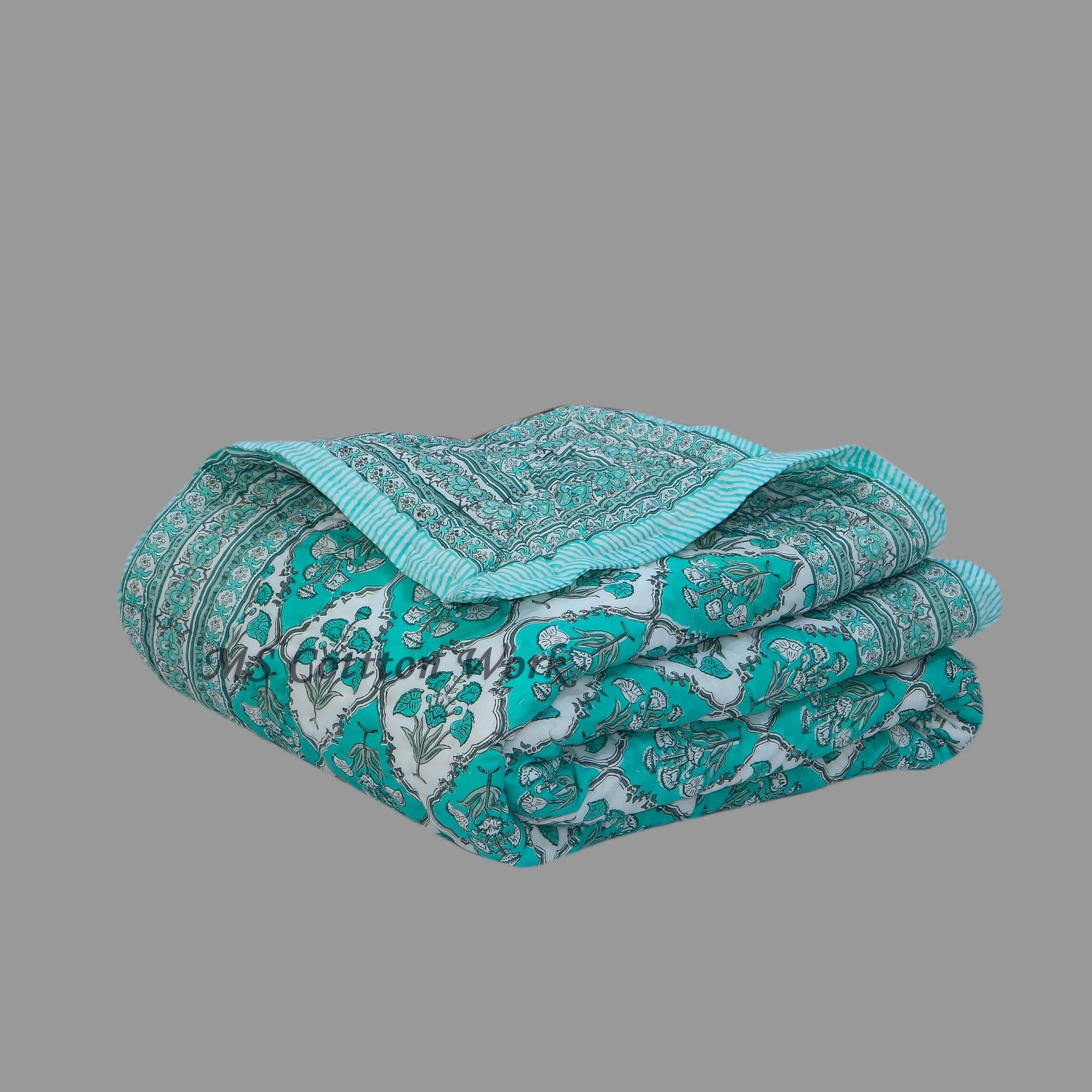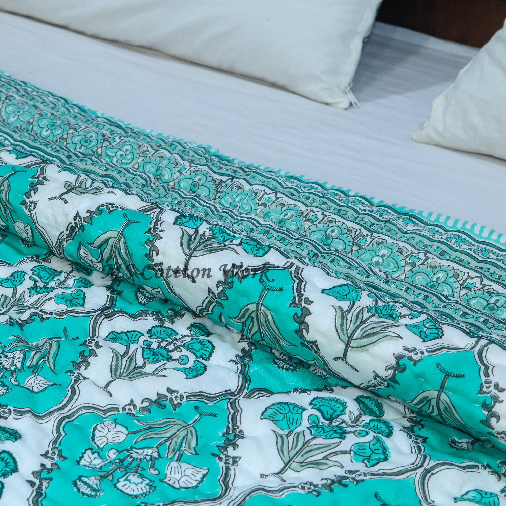 Indulge in the artistry of traditional craftsmanship with our exquisite Hand Stitched Hand Block Print Quilt. Each quilt is a masterpiece of skill and creativity, meticulously crafted by skilled artisans in Jaipur, India. From the intricate hand block printing to the careful stitching, every step in the process is a labor of love, resulting in a quilt that's as beautiful as it is functional.