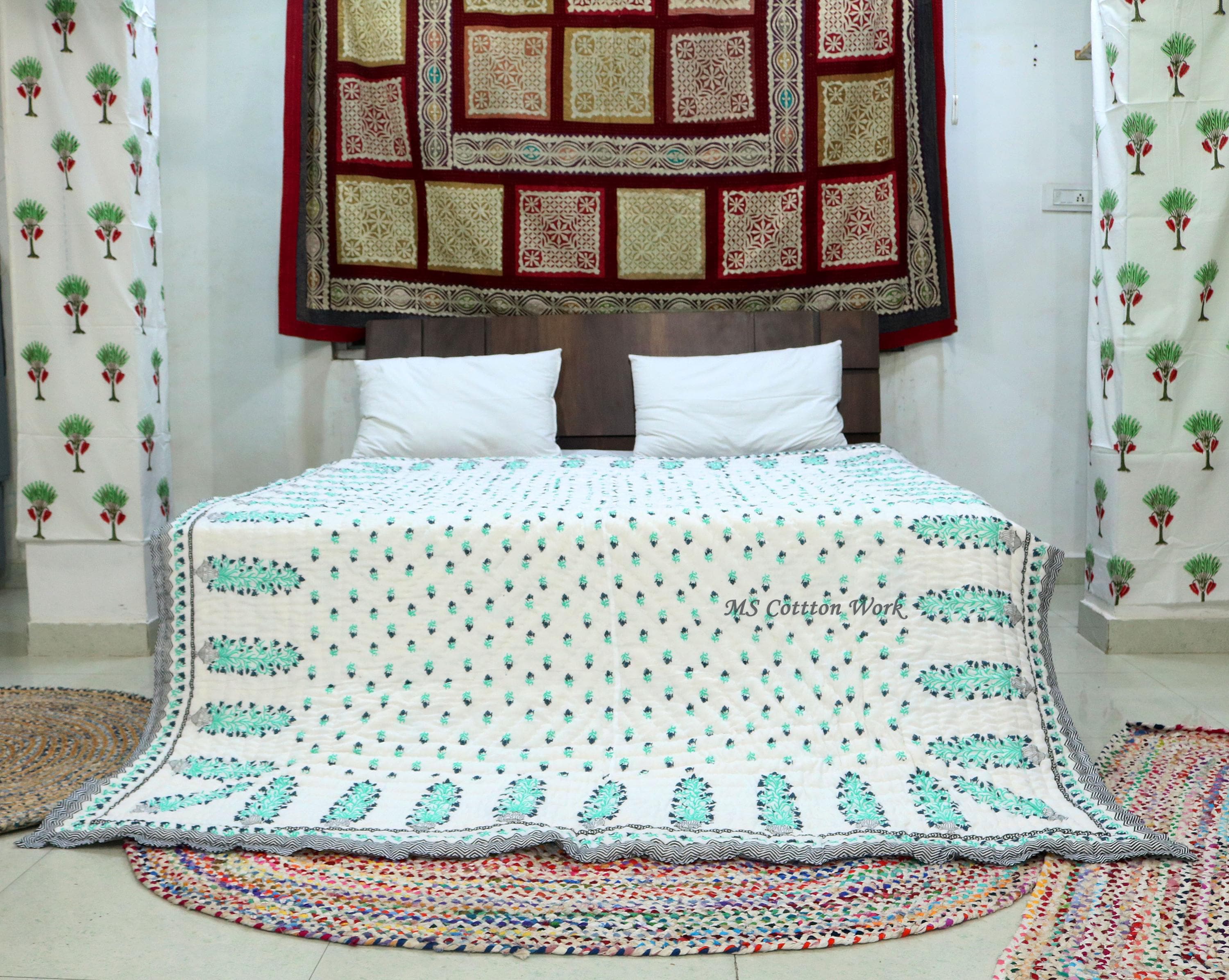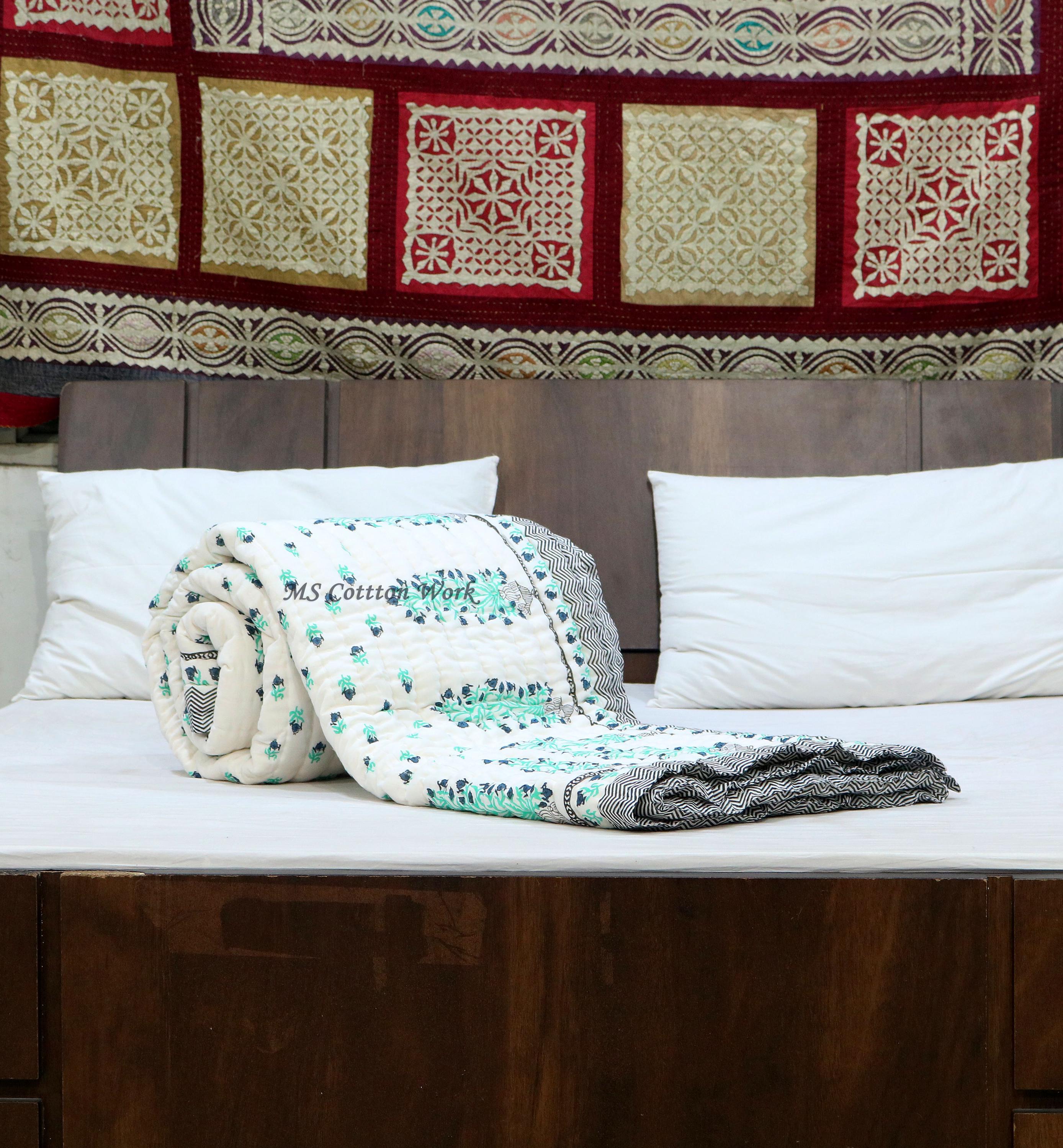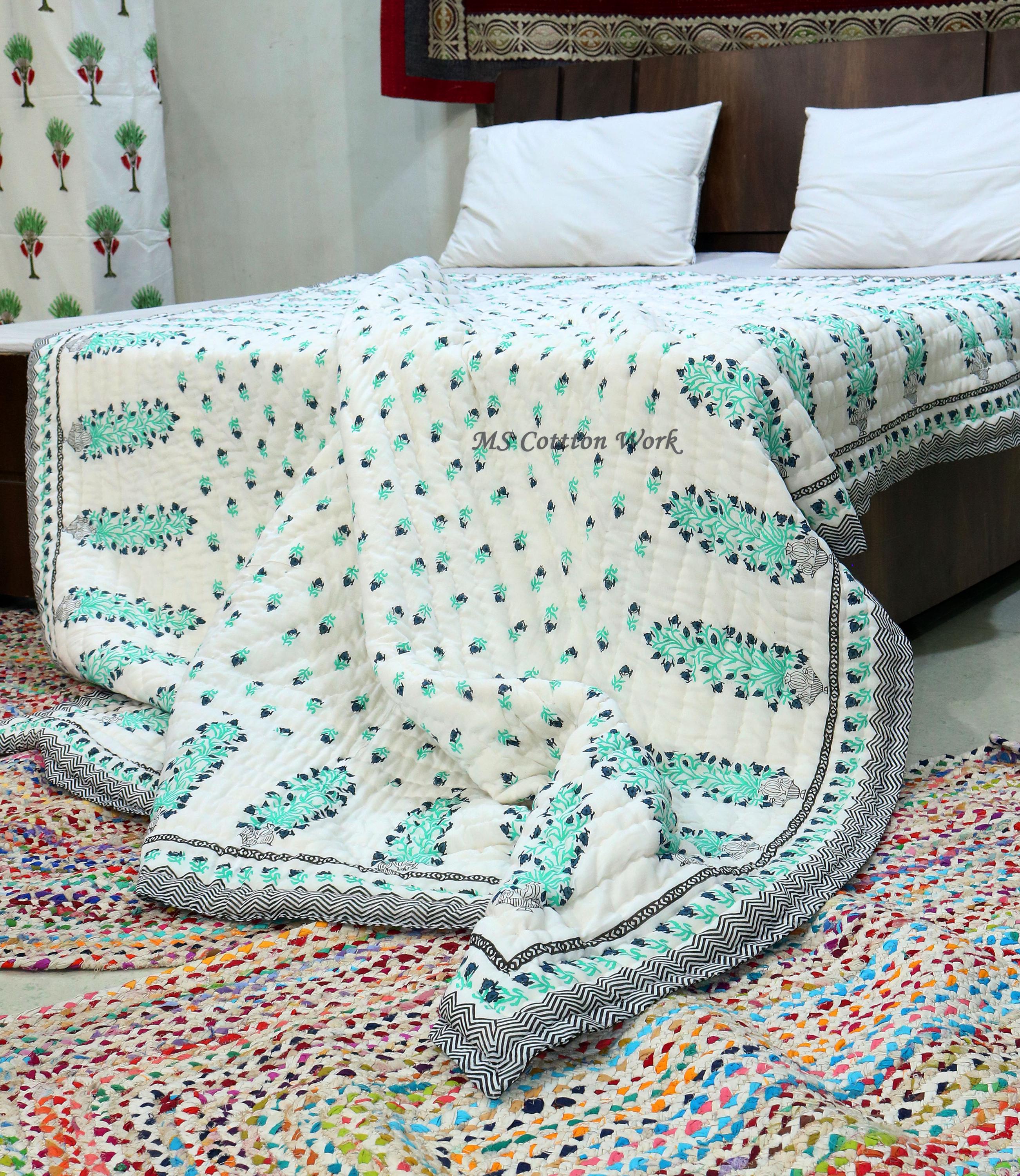 Beautiful Cotton Quilts Hand Block Printed with Hand Stitching Quilts