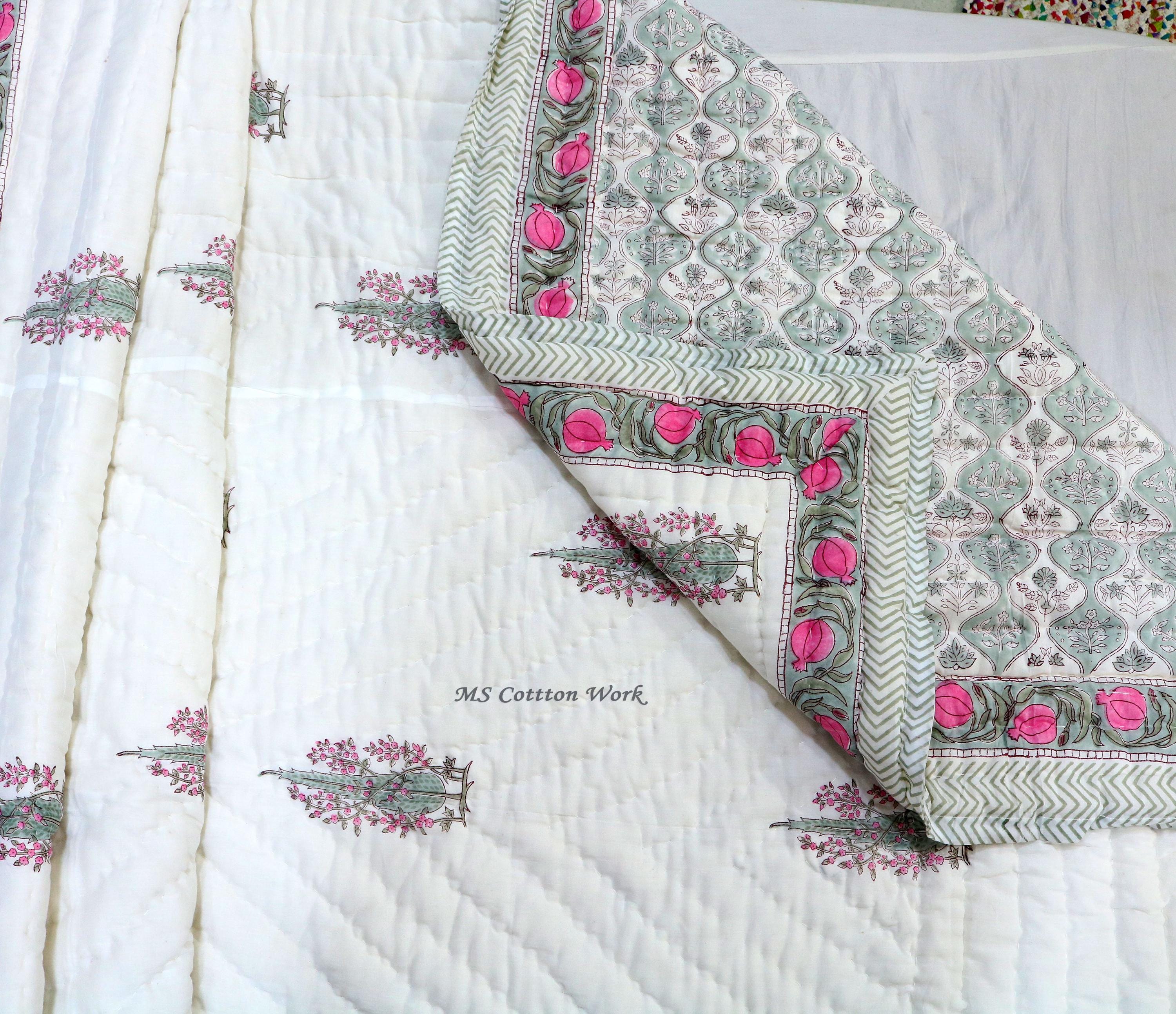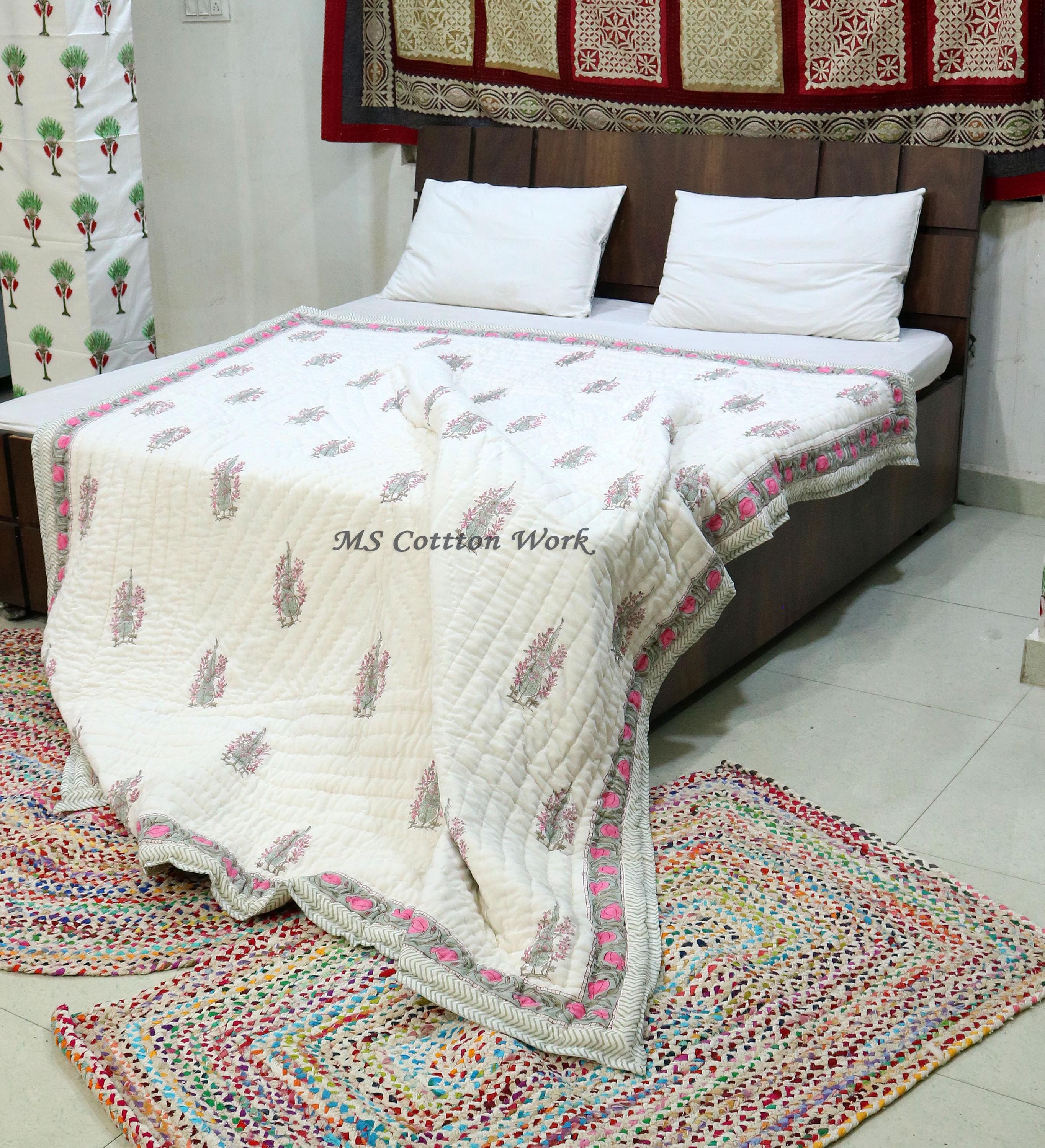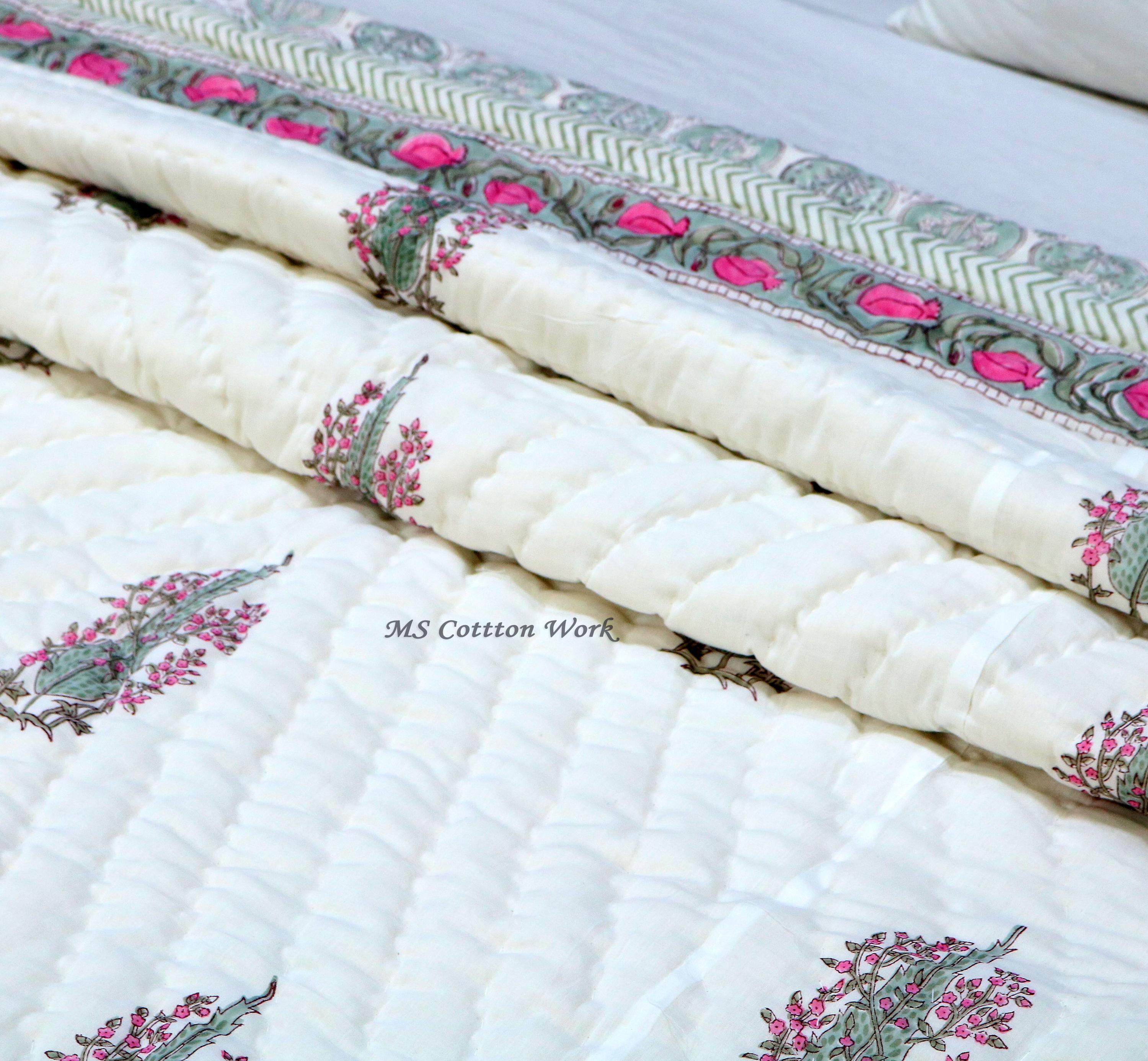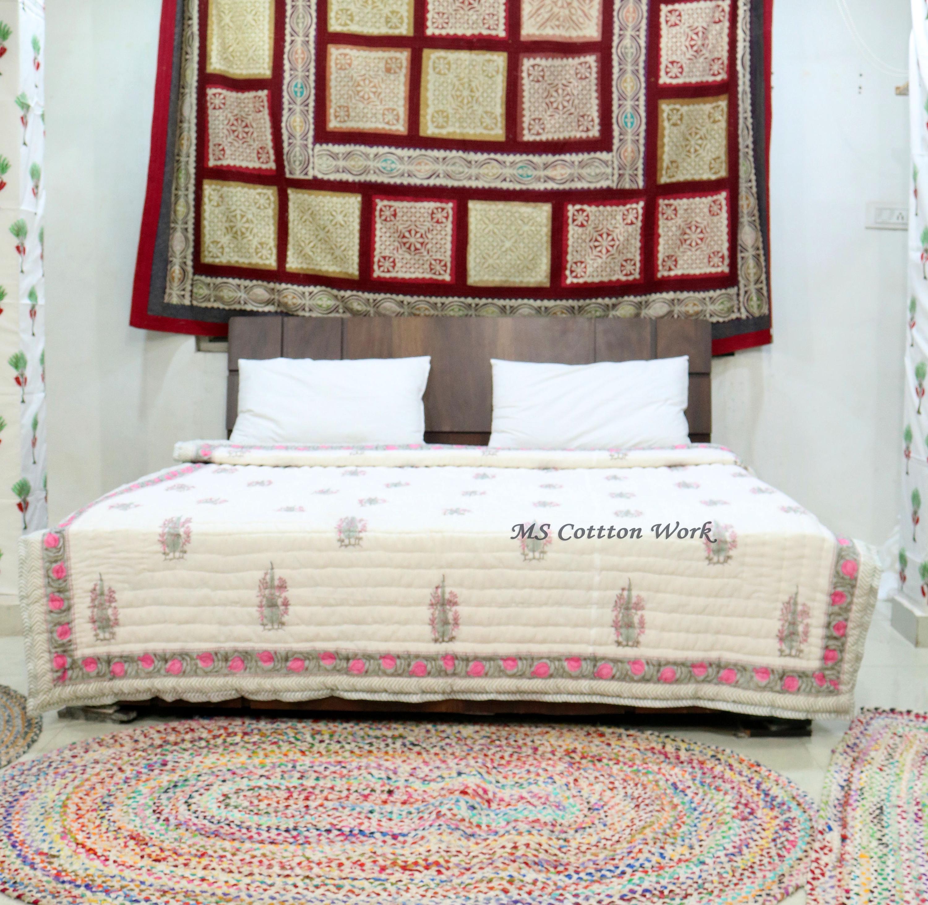 Beautiful Cotton Quilts Hand Block Printed with Hand Stitching Quilts