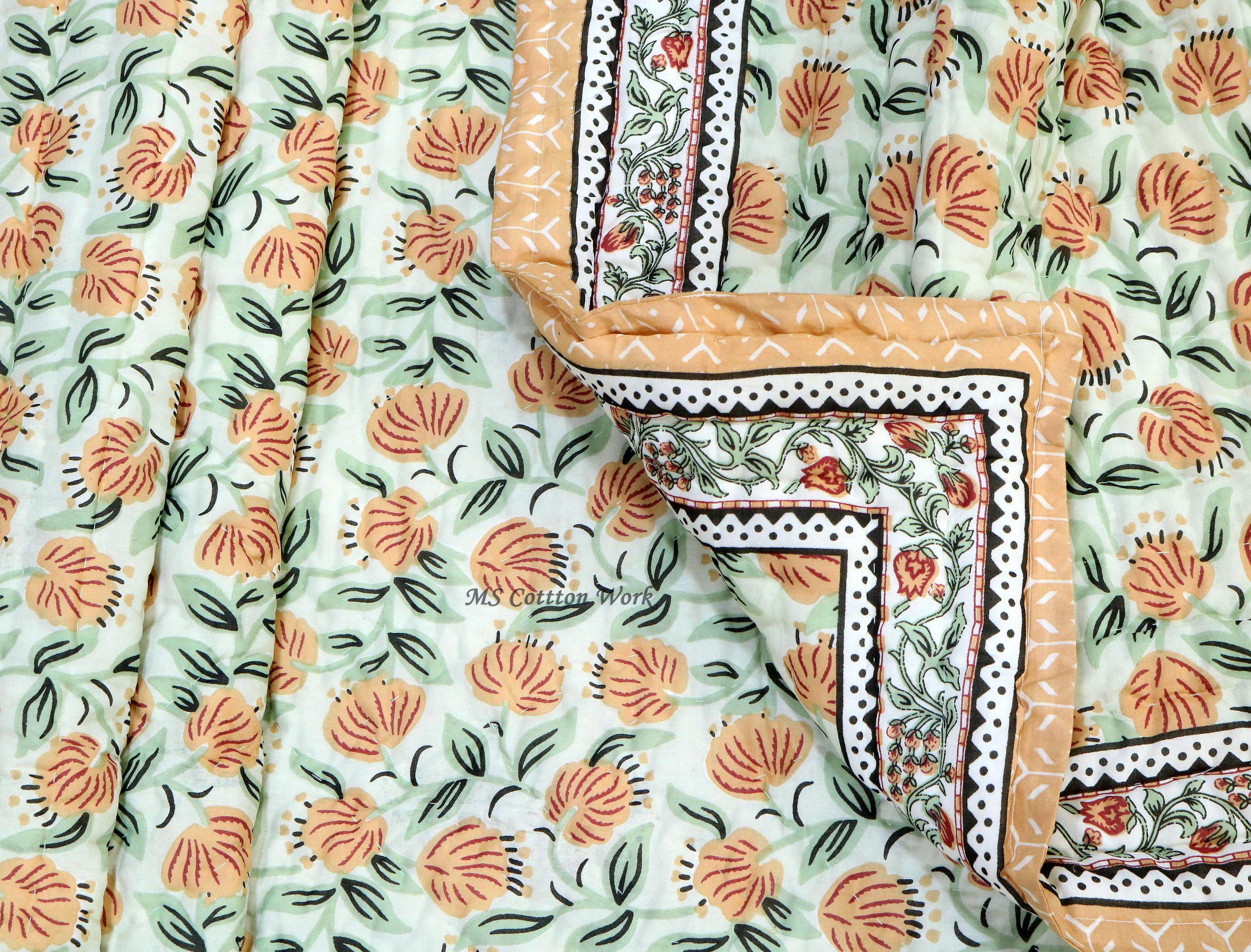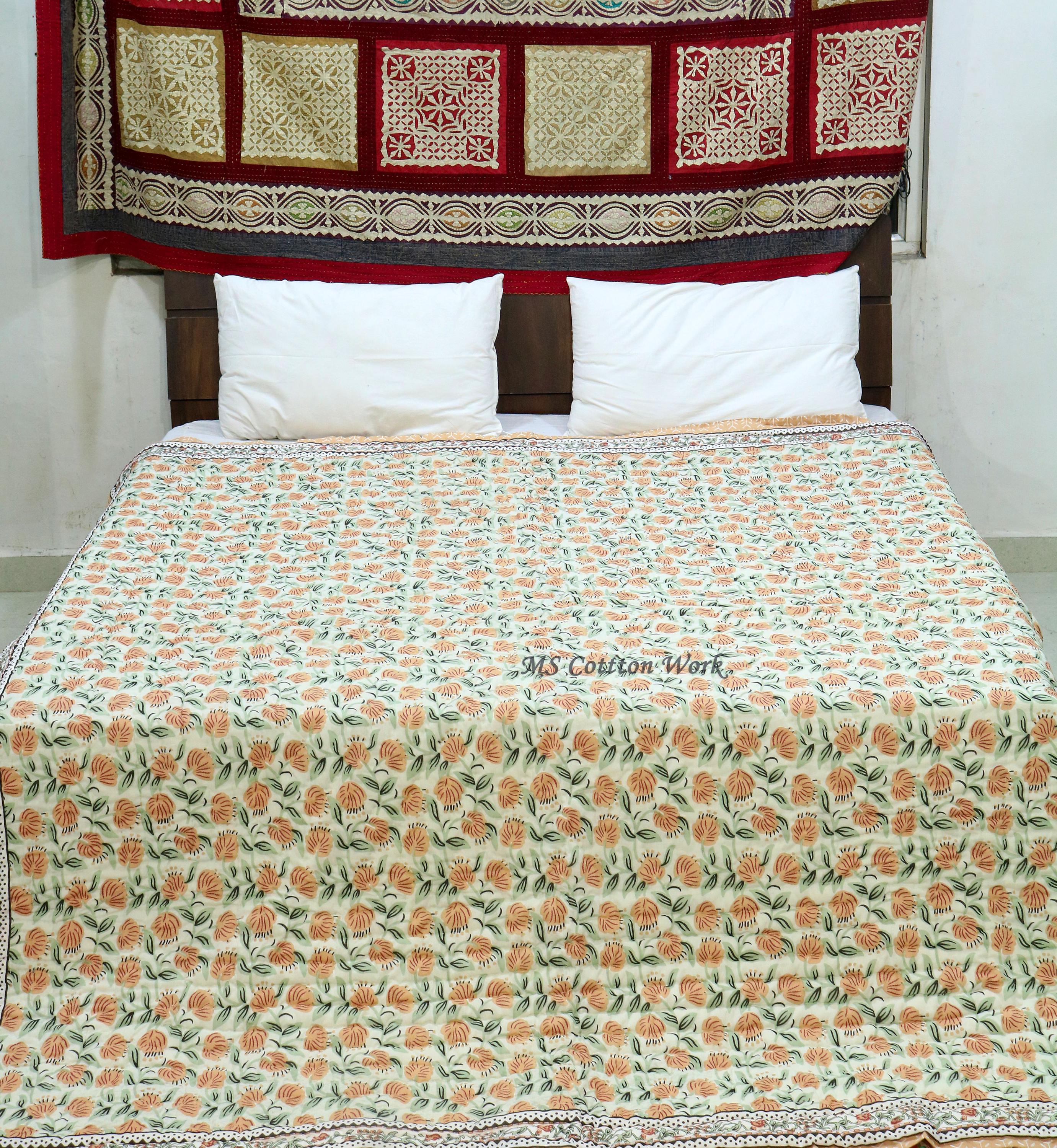 Beautiful Cotton Quilts Hand Block Printed with Hand Stitching Quilts