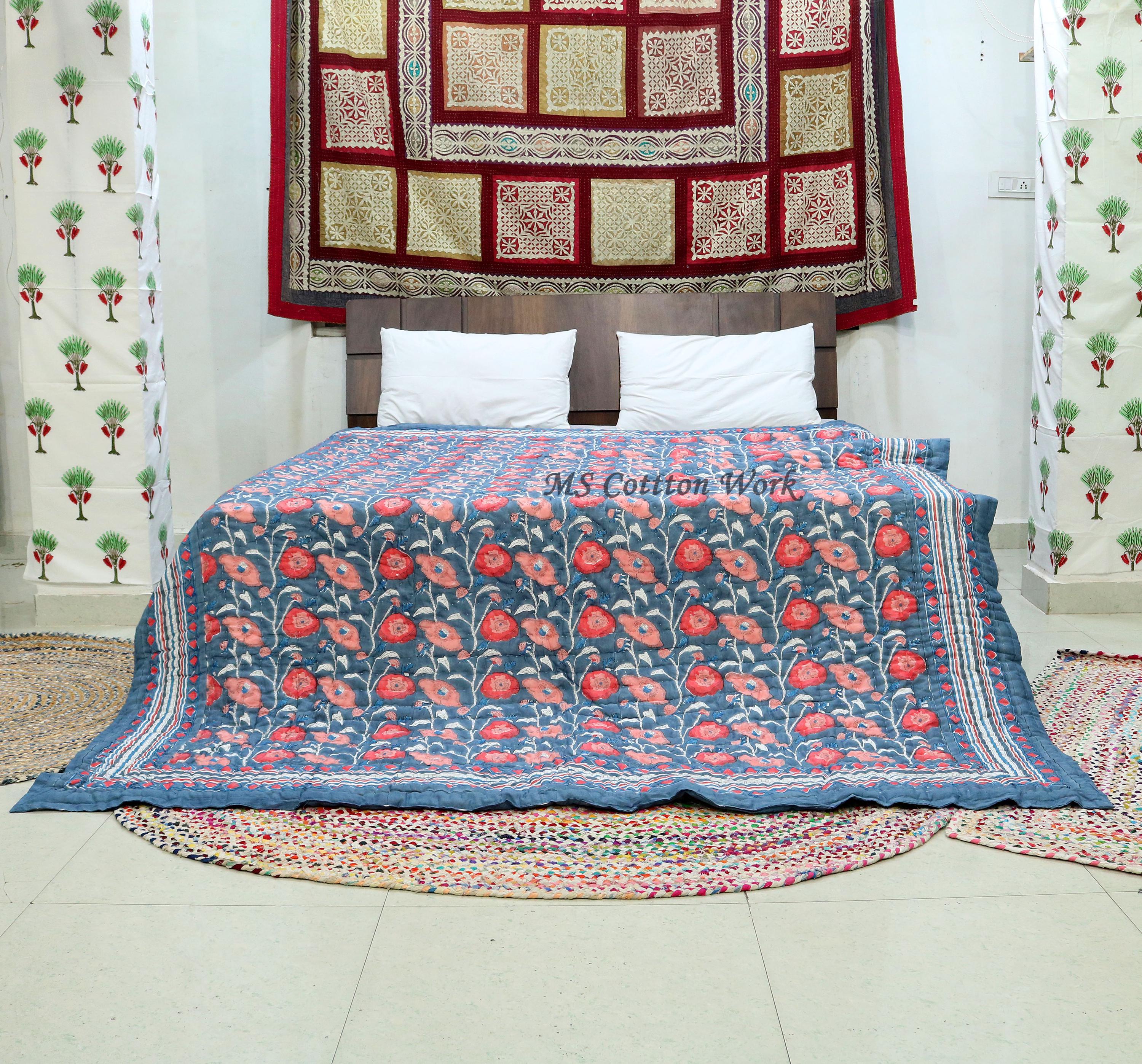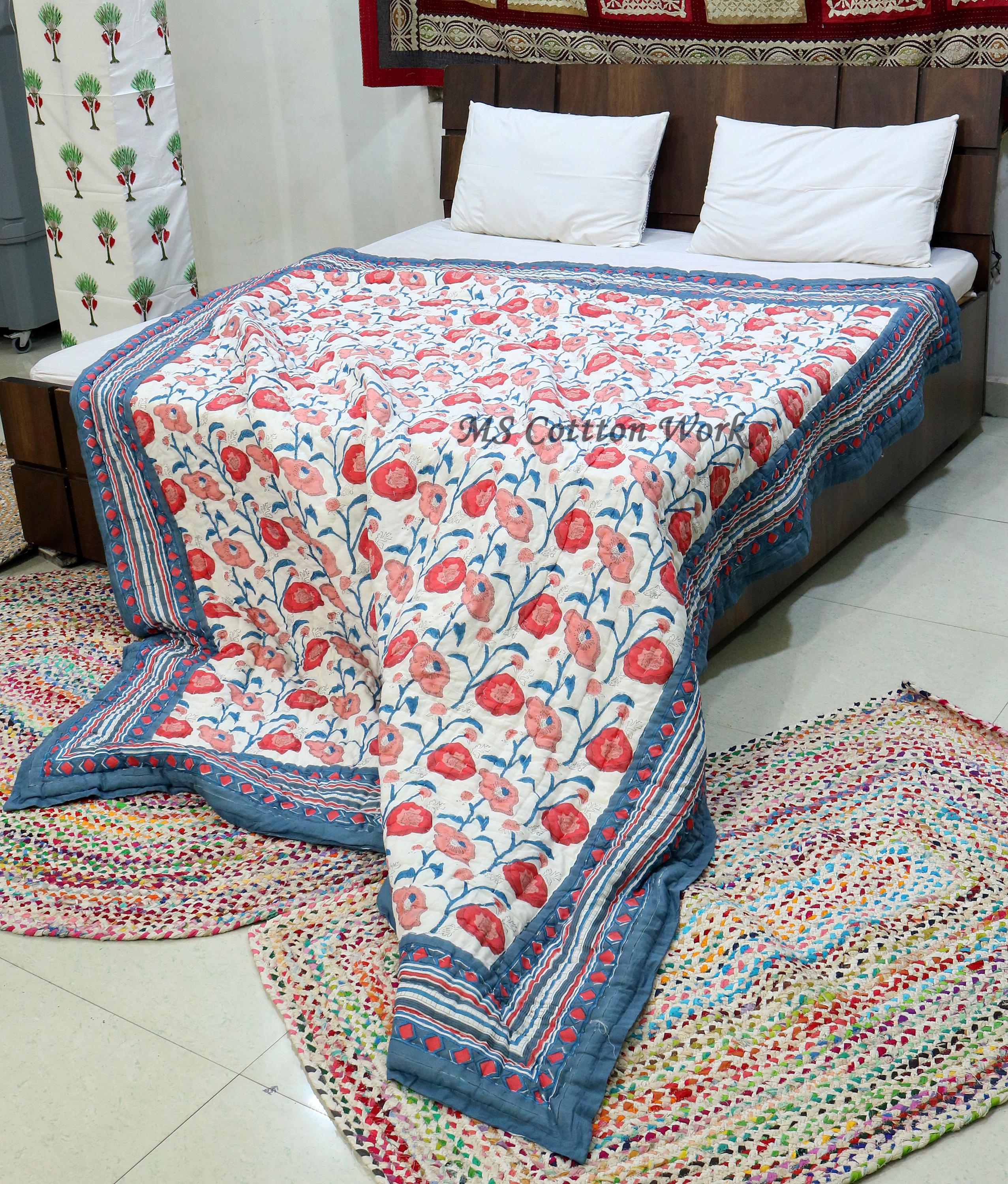 Beautiful Cotton Quilts Hand Block Printed with Hand Stitching Quilts