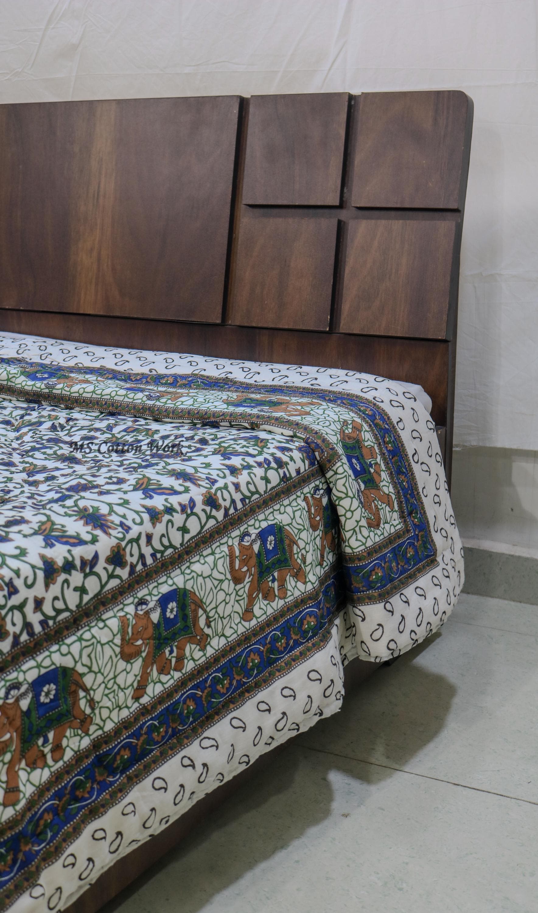 The listing photos display the quilt only, but please note that in the same pattern, it is possible to make an AC Blanket (Dohar) for this design as well. Visit our AC Blanket (Dohar) section to view similar patterns and explore the versatility of our designs.
