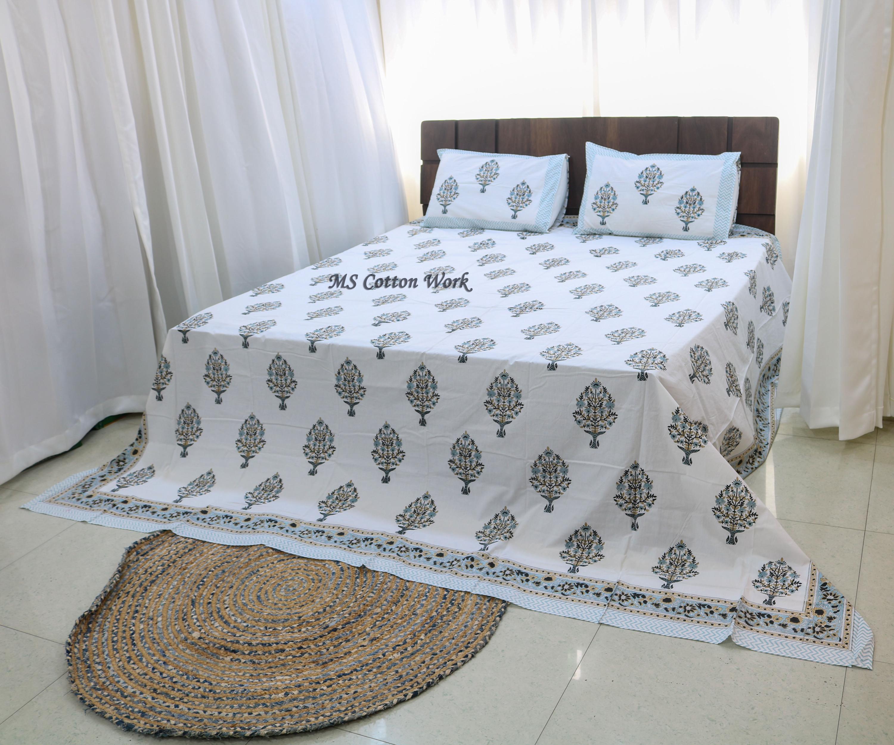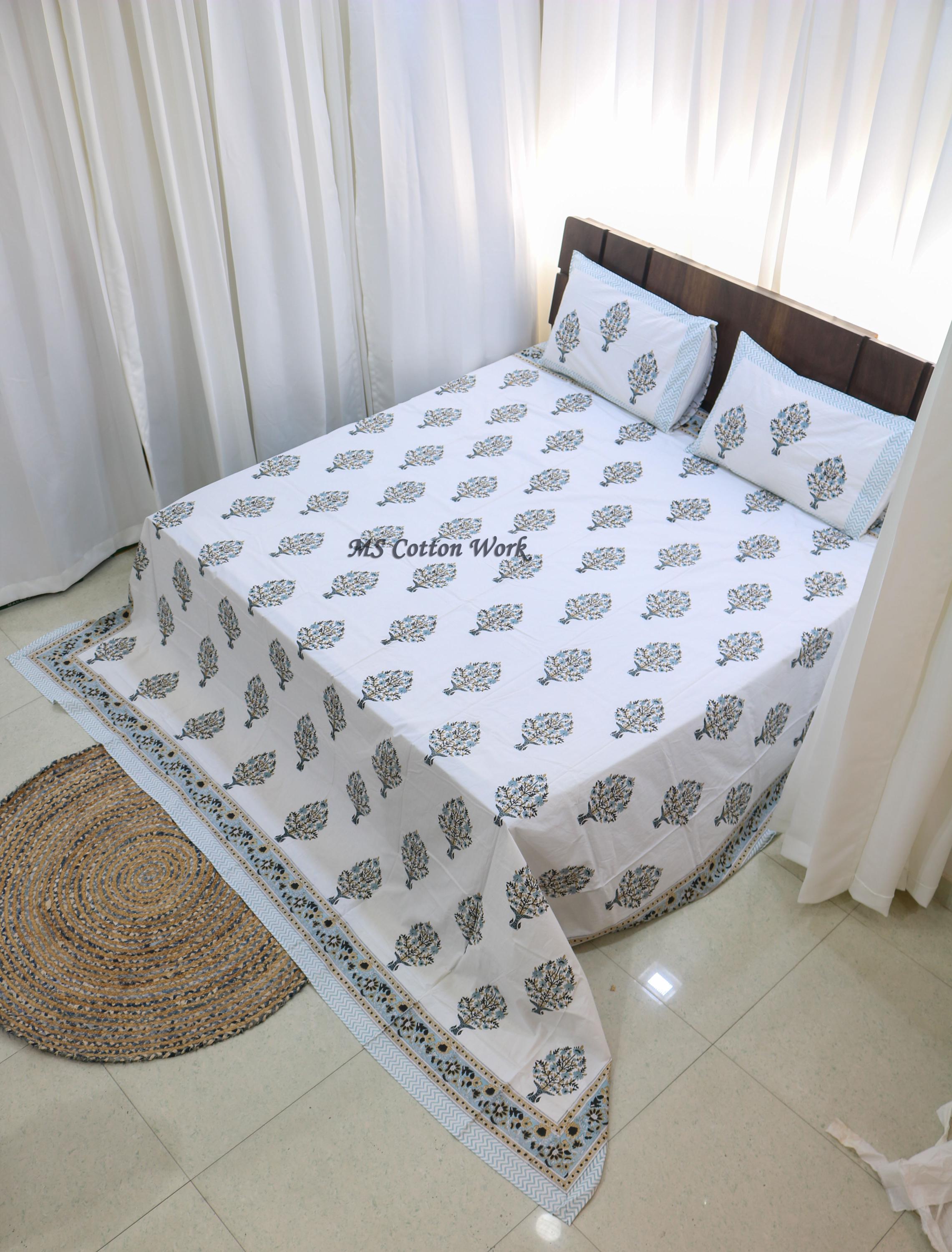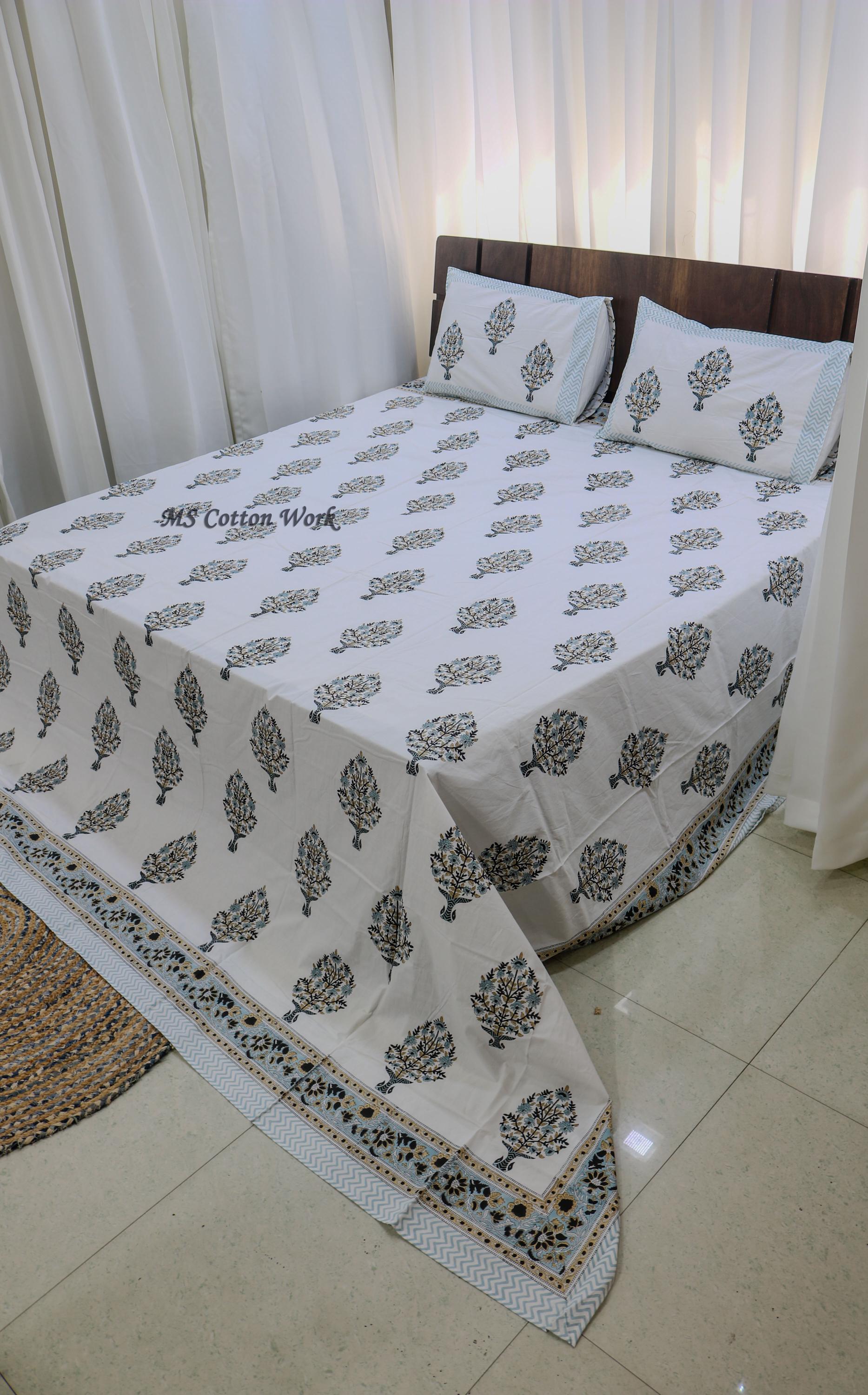 Premium Materials: Crafted from high-quality cotton, our quilts and bed sheets offer luxurious softness and comfort for a restful night's sleep.