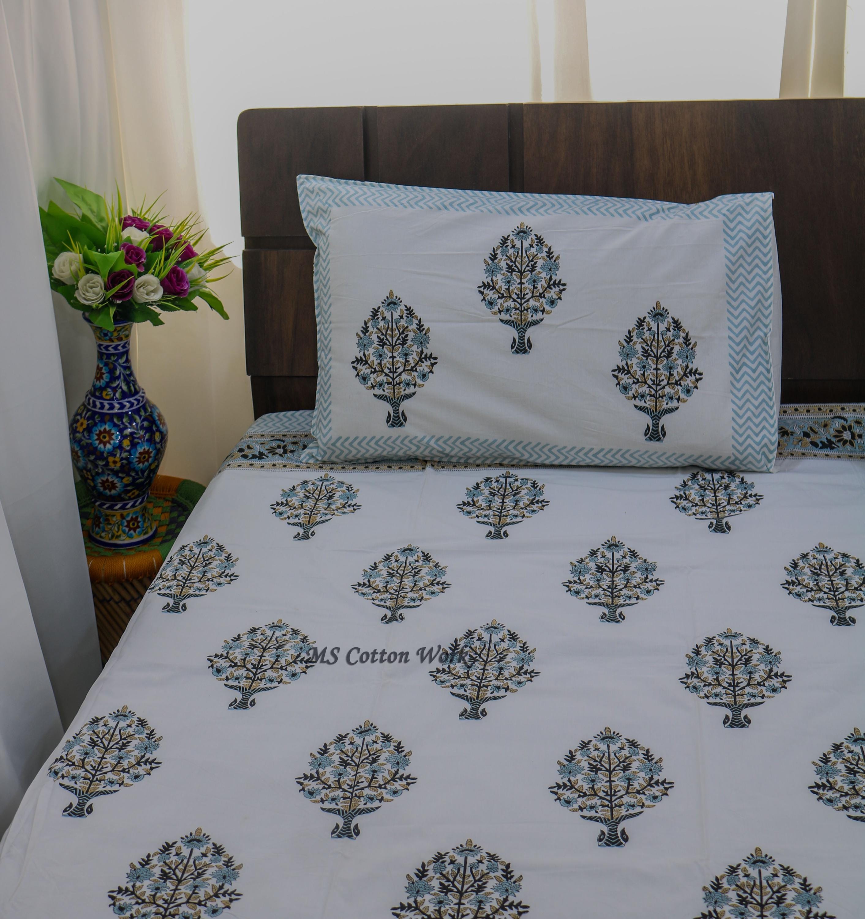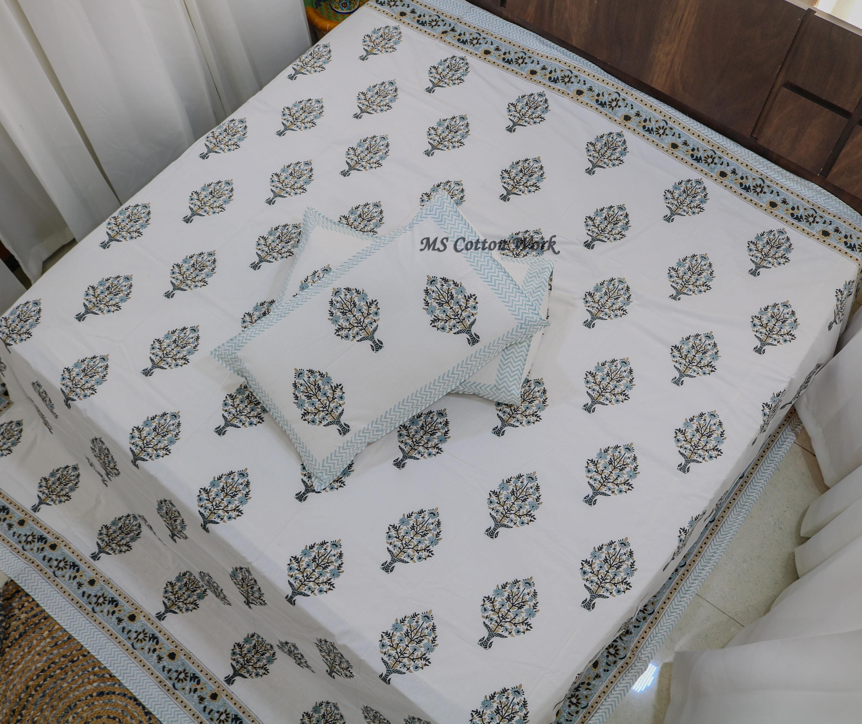 Versatile Design: Whether used as a bedspread, throw, or wall hanging, our quilt adds a touch of artisanal elegance to any space. The bed sheet set complements the quilt beautifully, enhancing the overall aesthetic of your bedroom.