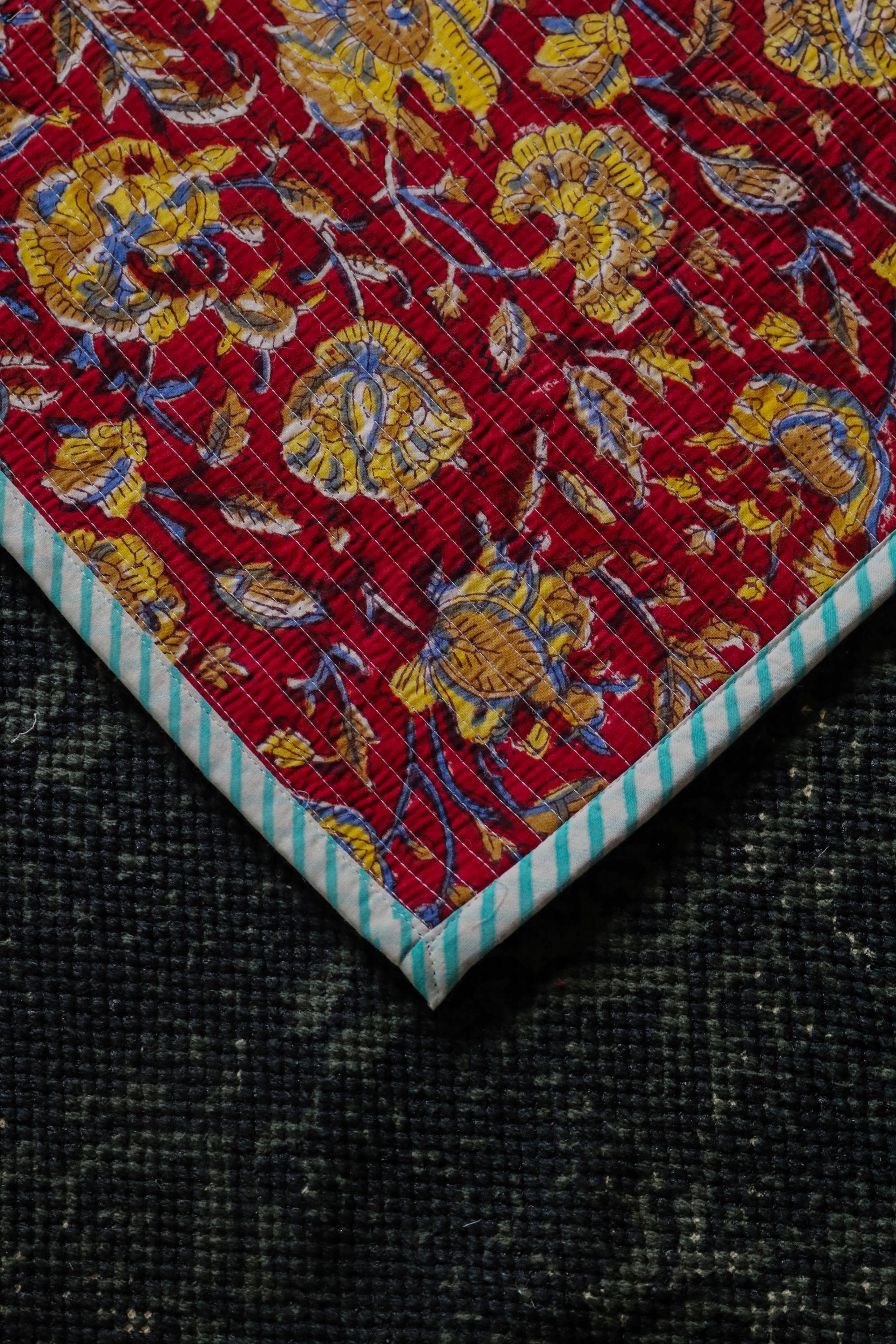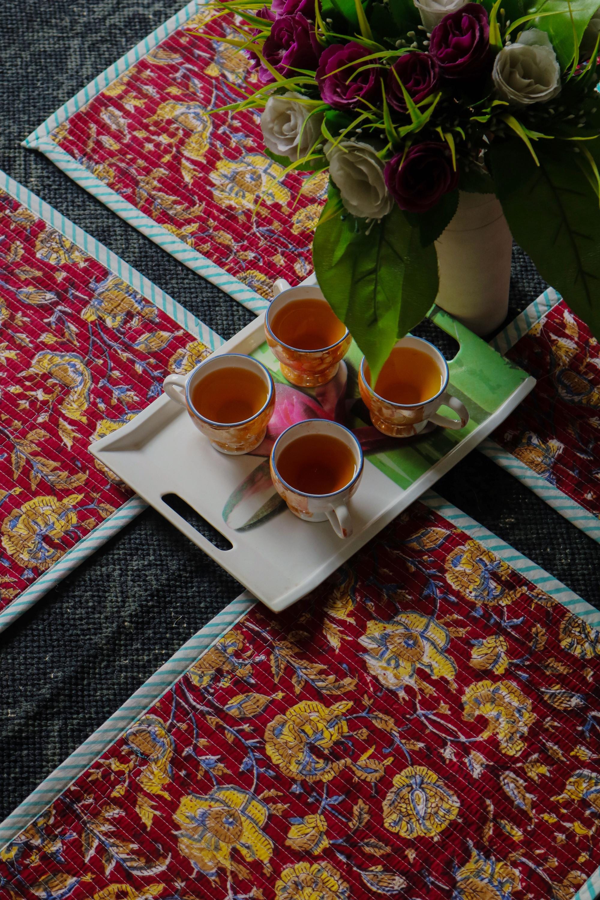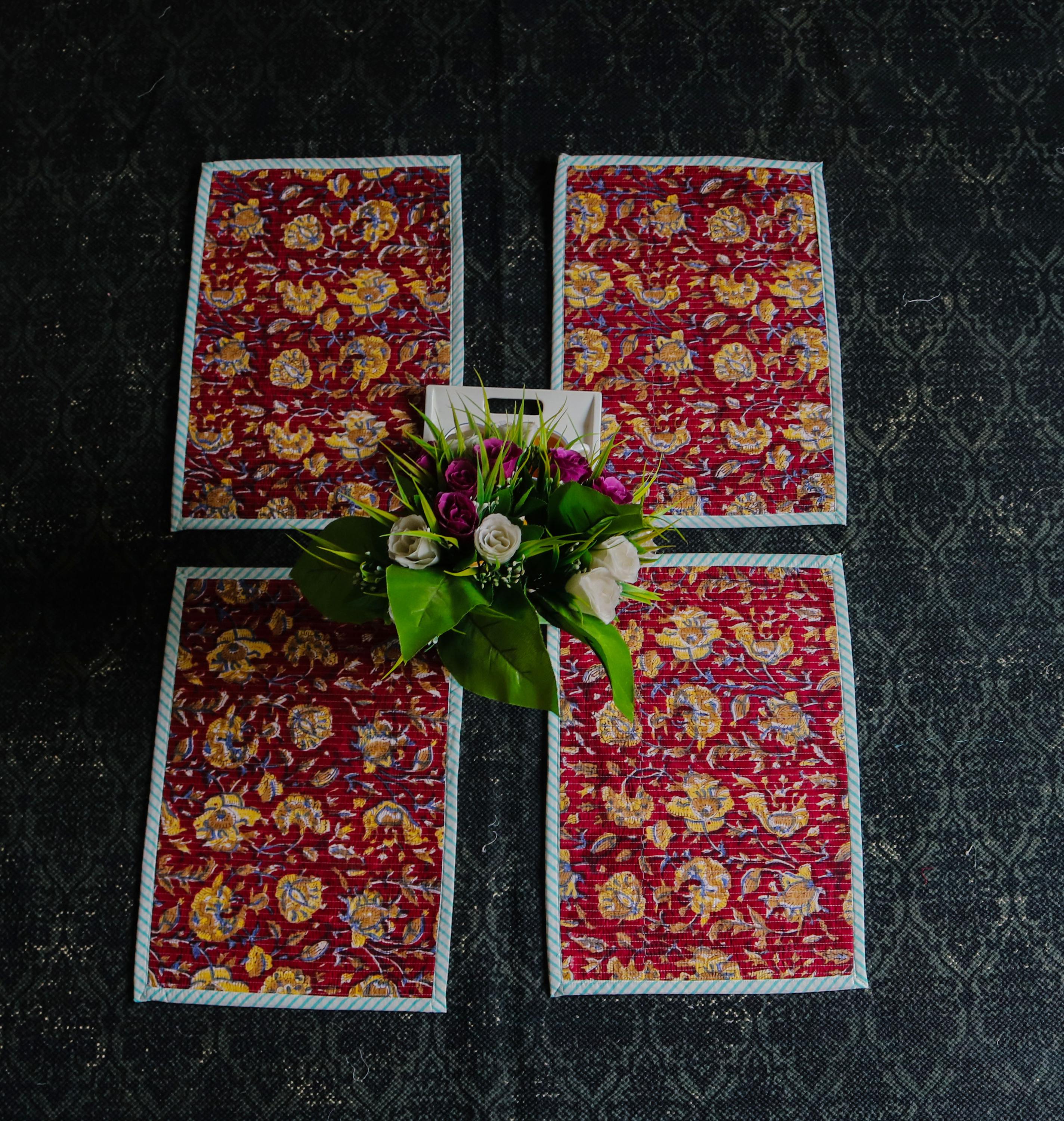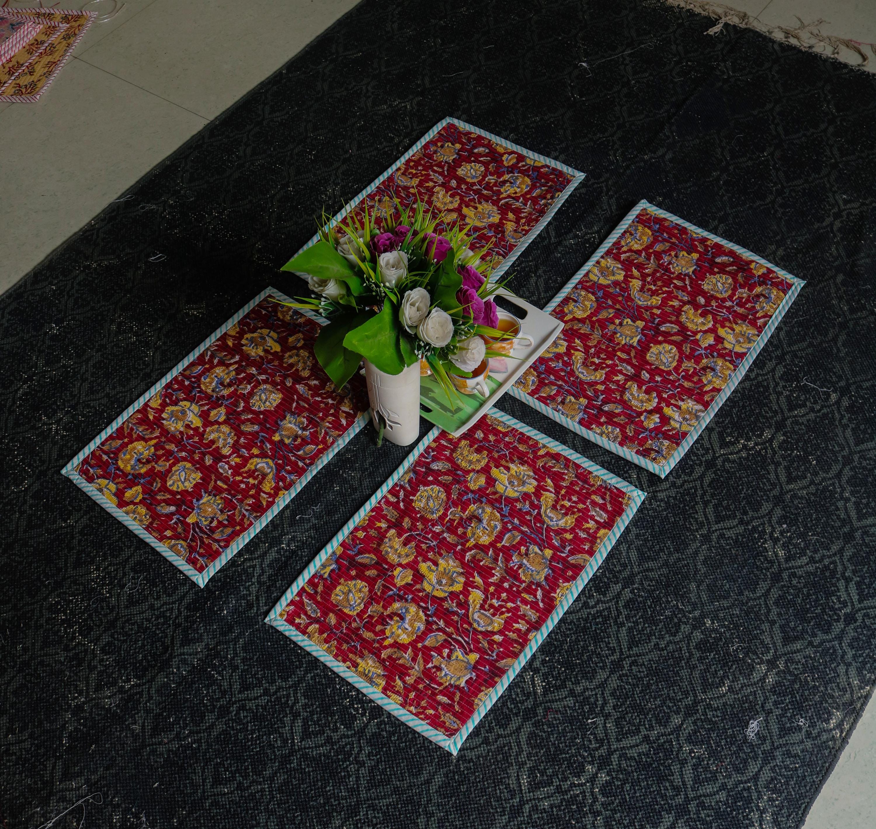 Add a splash of color with our placemats! Our gorgeous Rainbow blossom floral block print placemats are created from beautiful hand block printed Cotton fabric. The placemats are perfectly constructed Table Mat and Napkins.