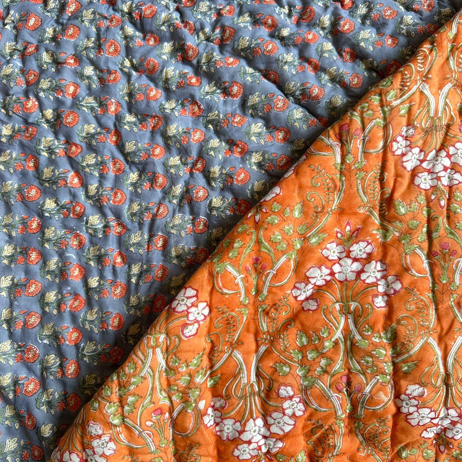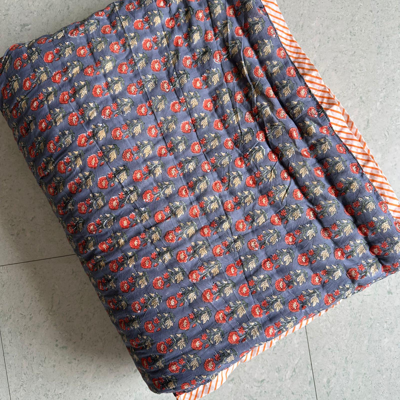 Indulge in the artistry of traditional craftsmanship with our exquisite Hand Stitched Hand Block Print Quilt. Each quilt is a masterpiece of skill and creativity, meticulously crafted by skilled artisans in Jaipur, India. From the intricate hand block printing to the careful stitching, every step in the process is a labor of love, resulting in a quilt that's as beautiful as it is functional.