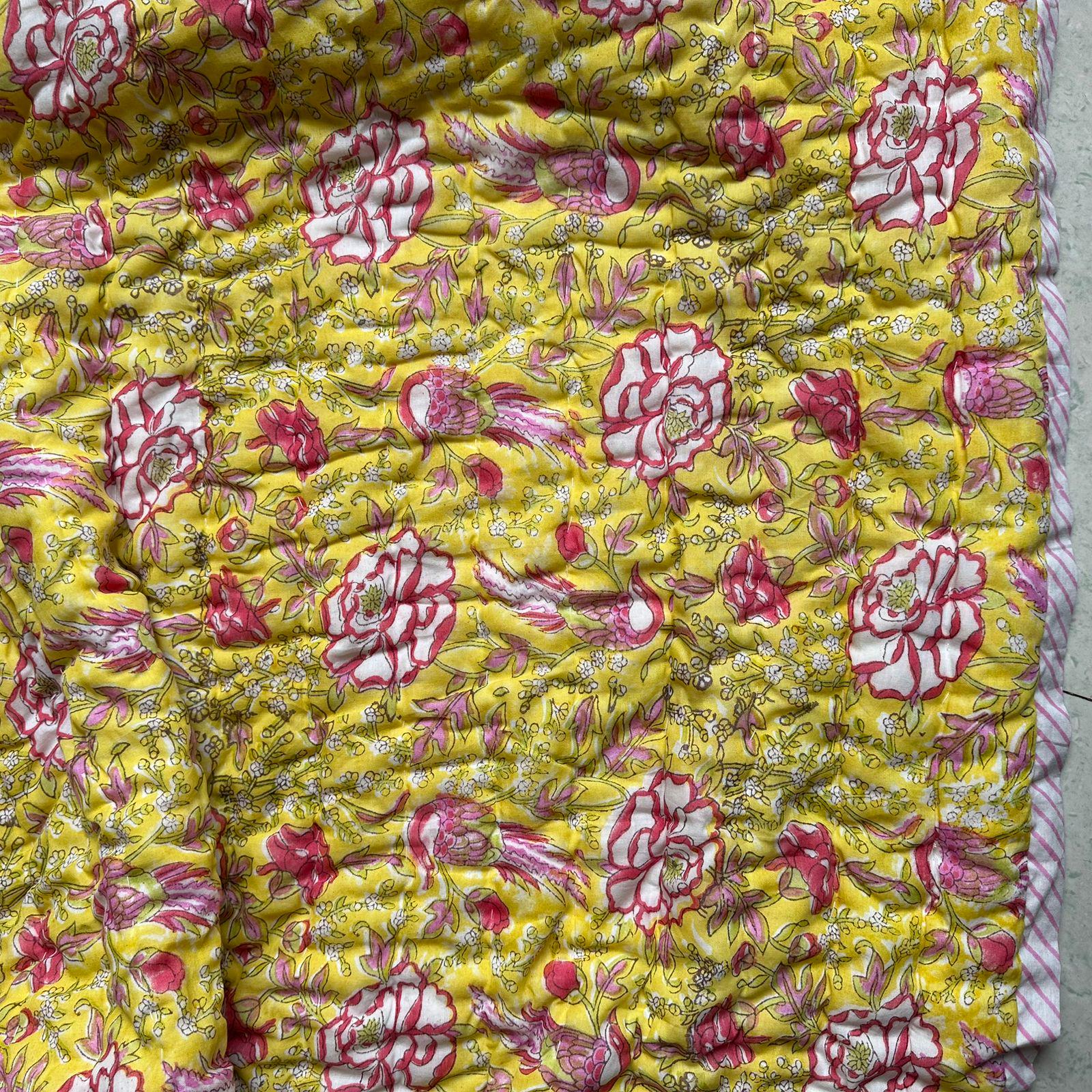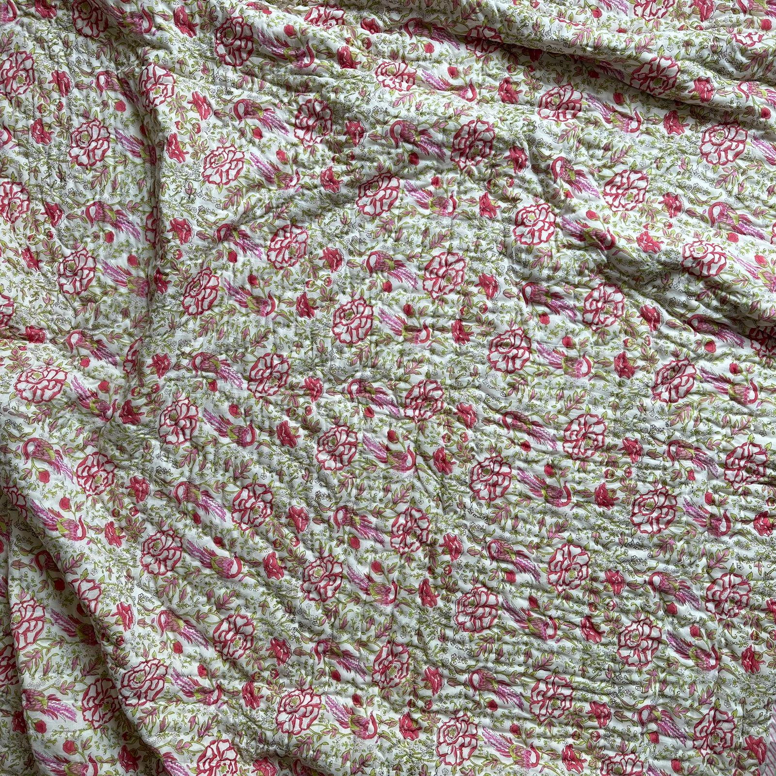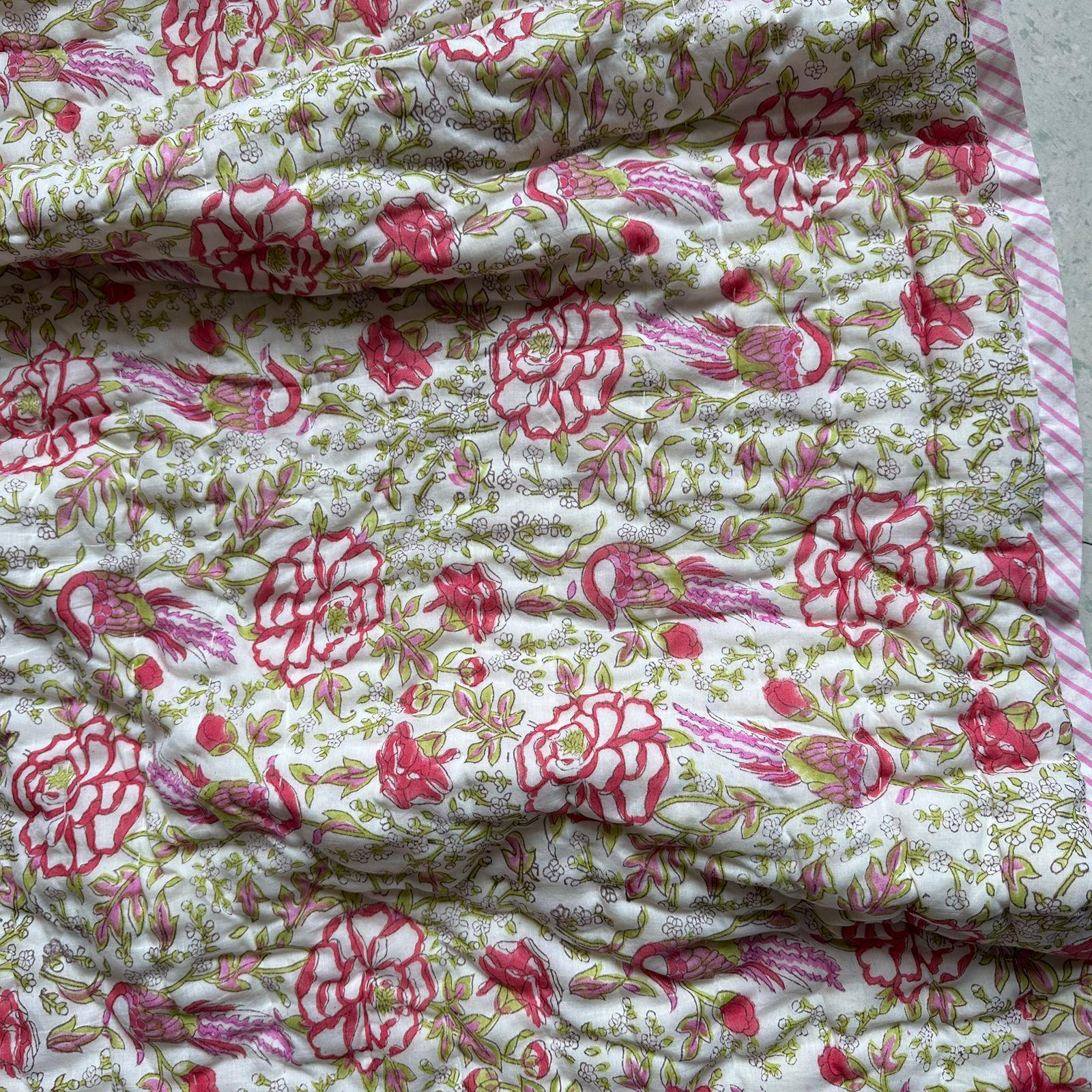 Hand Block Cotton Quilt | Jaipuri Floral Bedding, Reversible