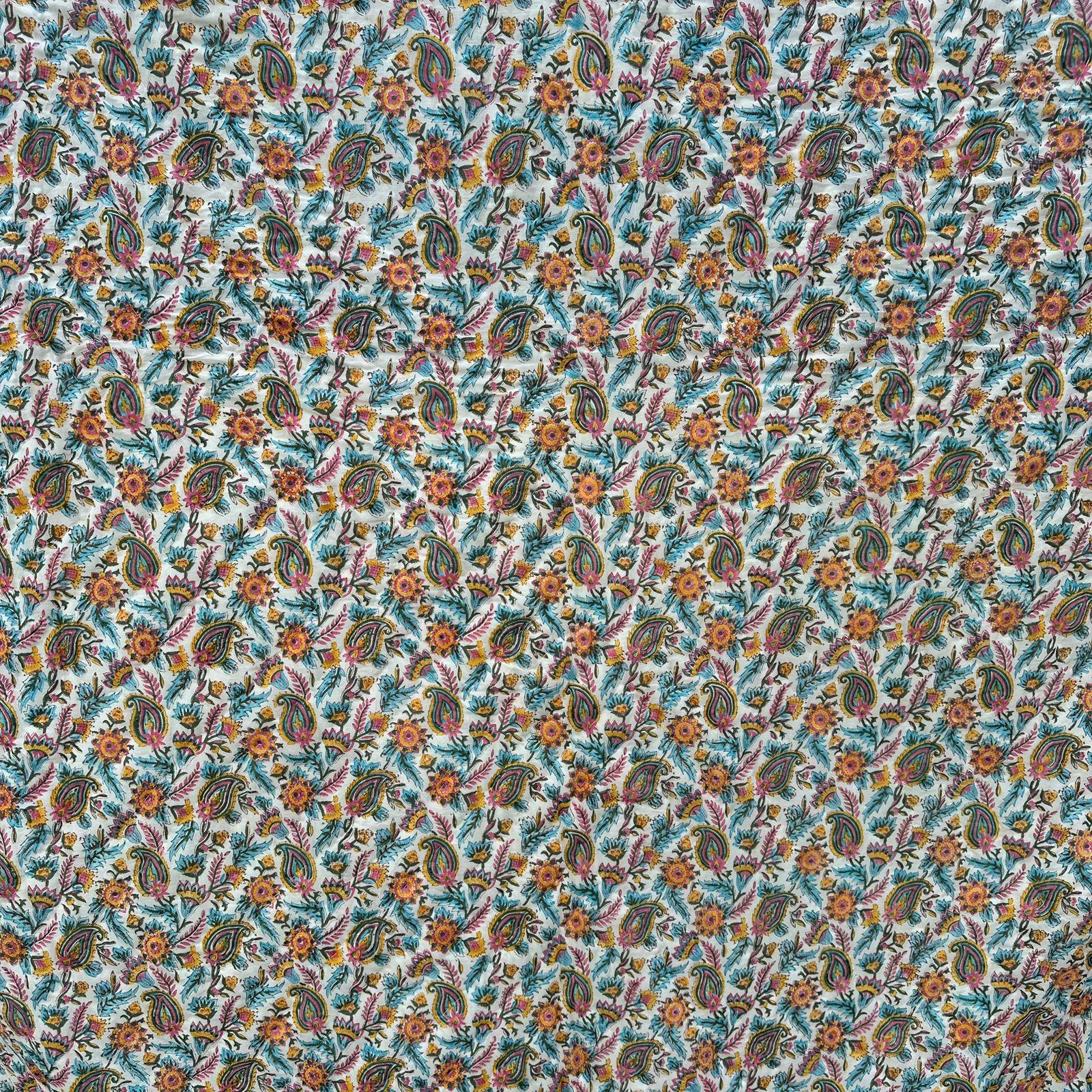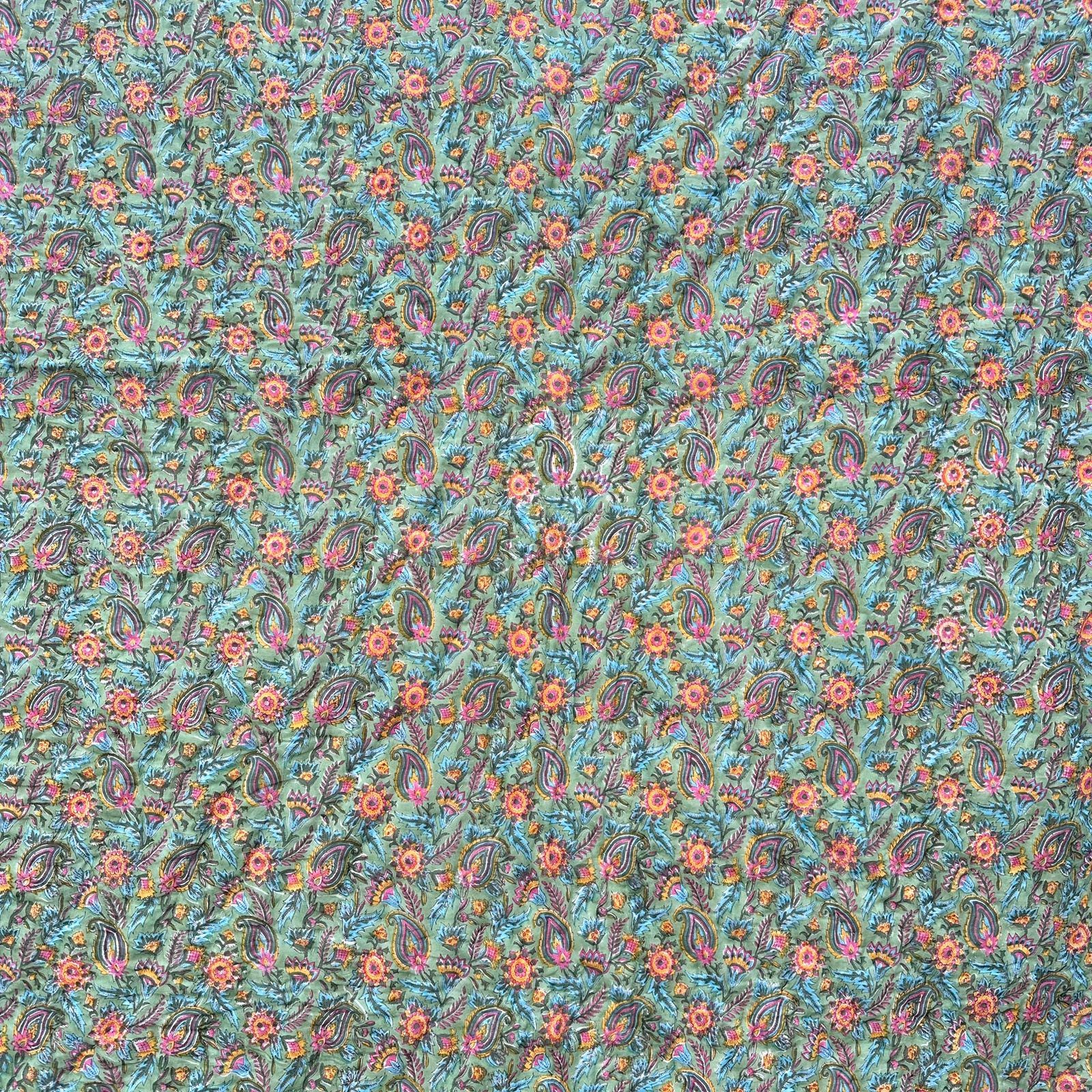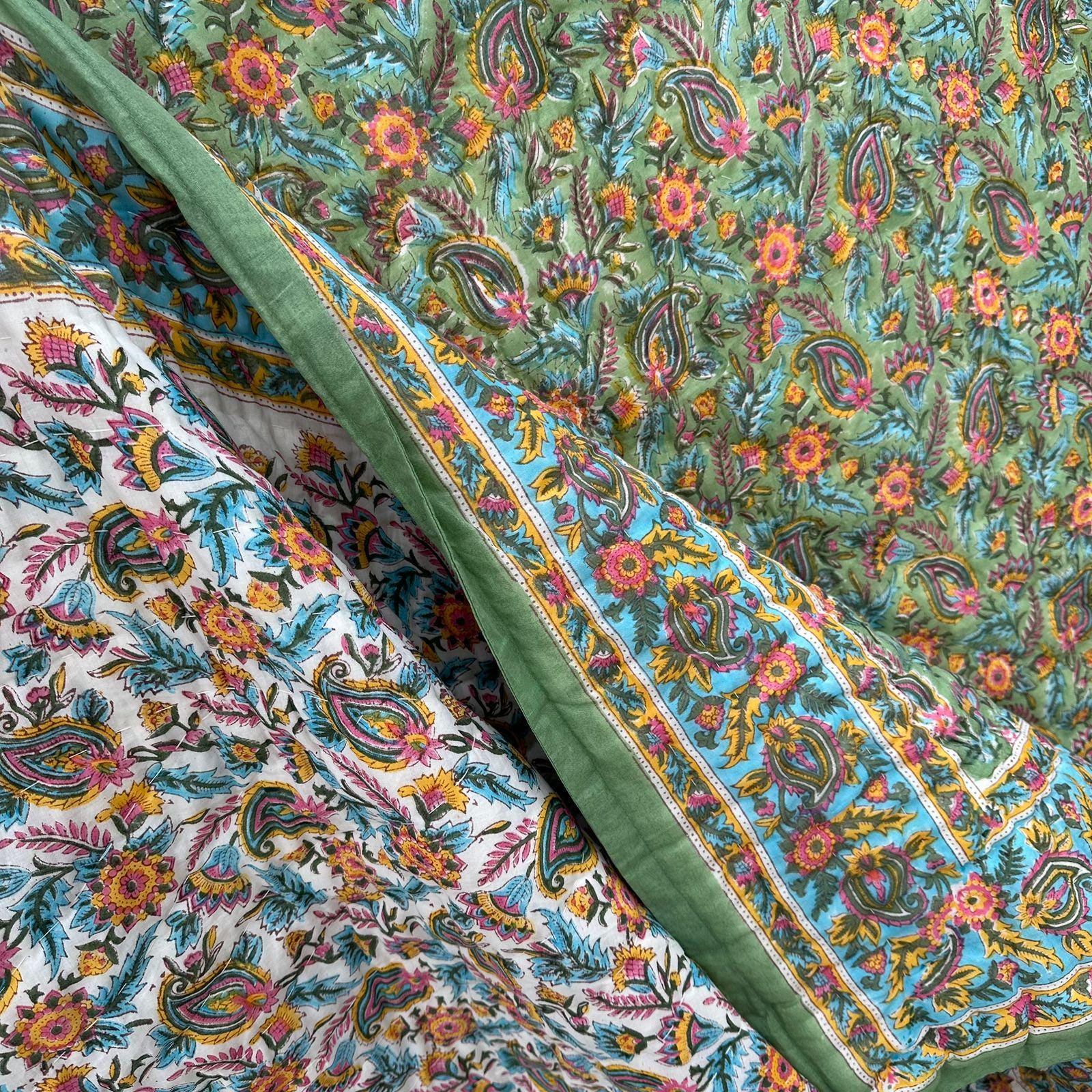 Indian Hand Block Printed Quilt | Multicolor Floral Paisley Pattern | Reversible Cotton Blanket |