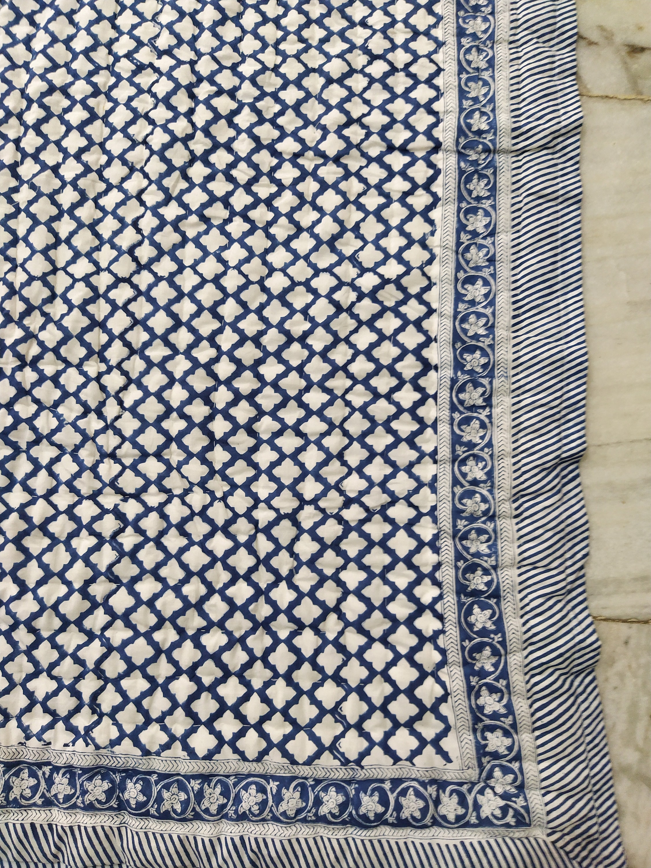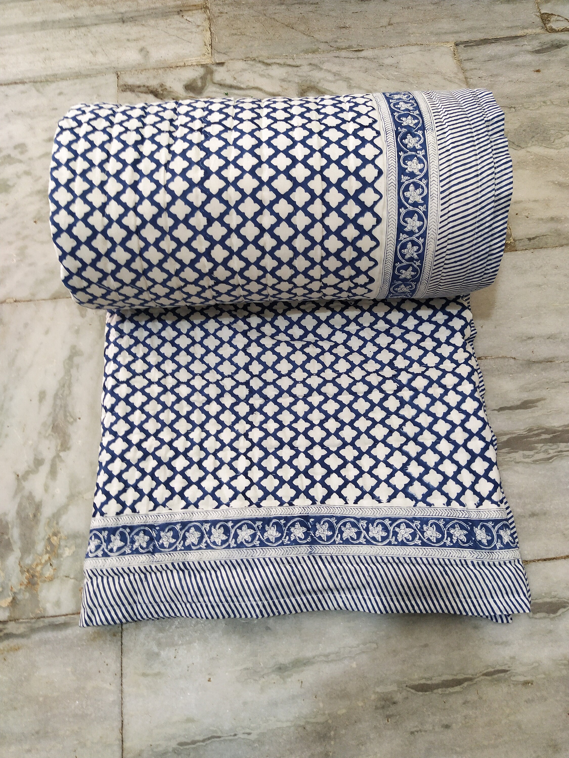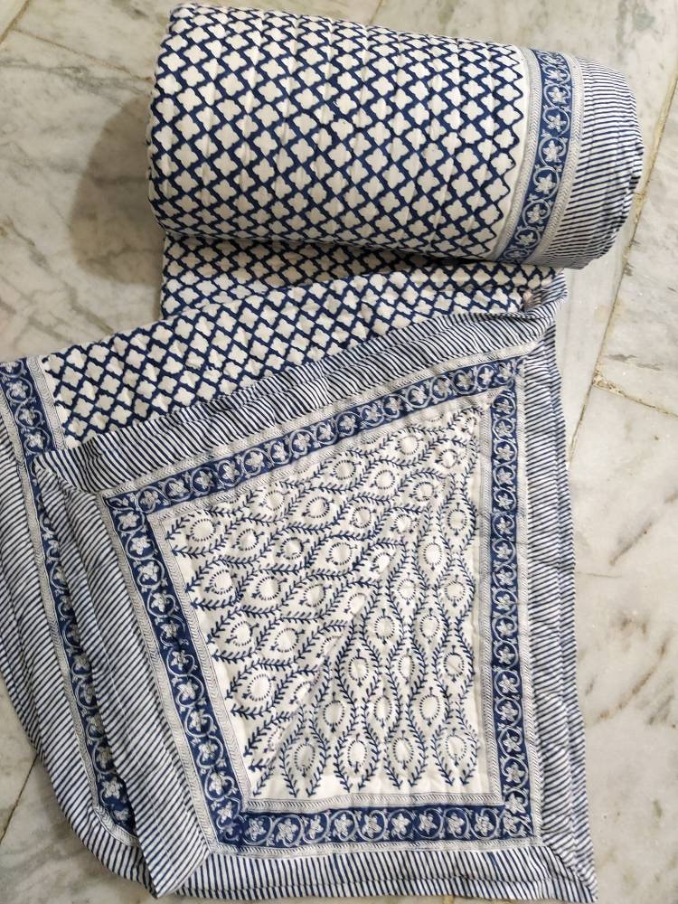 Indulge in the artistry of traditional craftsmanship with our exquisite Hand Stitched Hand Block Print Quilt. Each quilt is a masterpiece of skill and creativity, meticulously crafted by skilled artisans in Jaipur, India. From the intricate hand block printing to the careful stitching, every step in the process is a labor of love, resulting in a quilt that's as beautiful as it is functional.