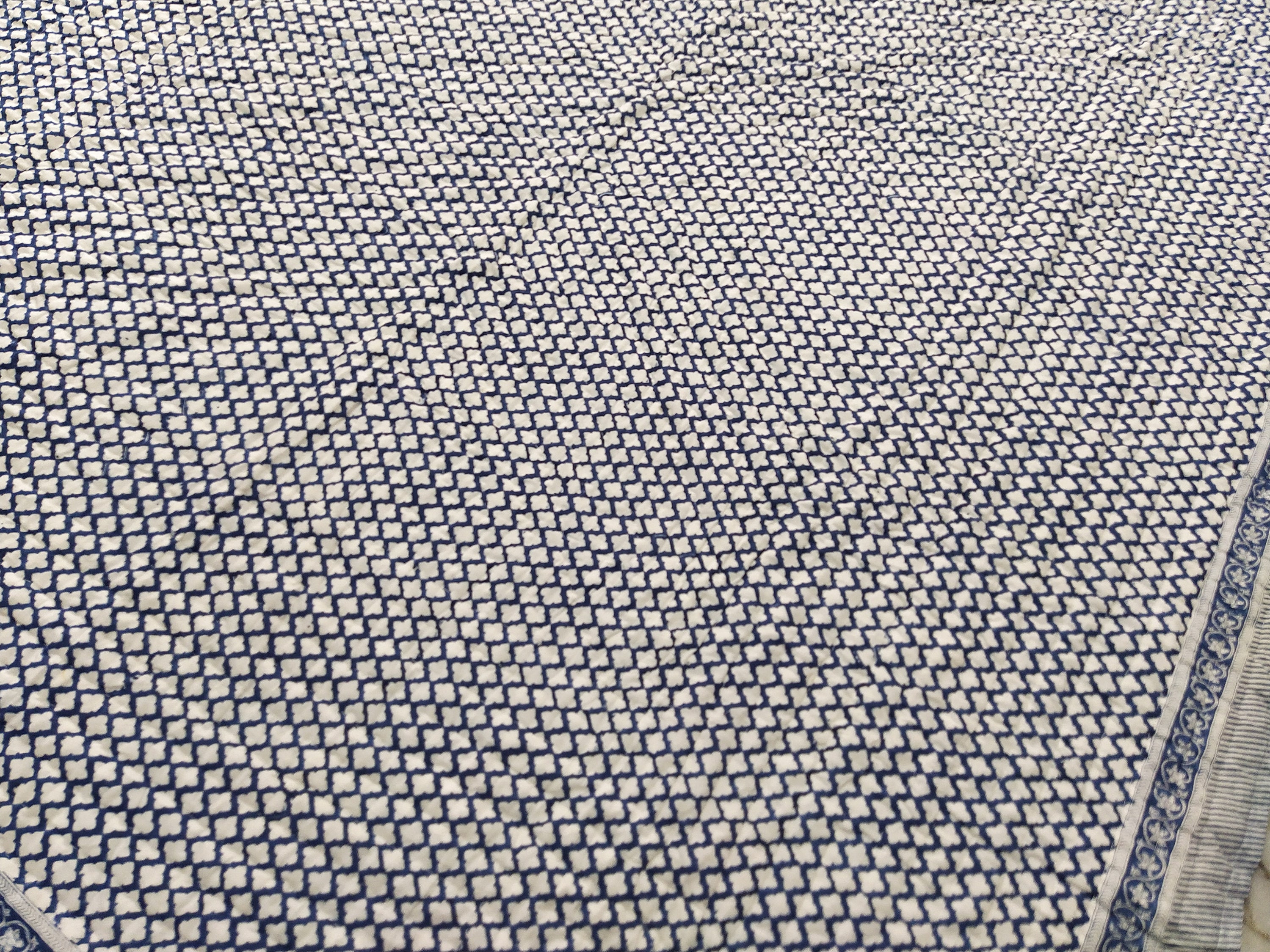 Blue Bohemian Block Print Cotton Quilt, Twin Size Handmade Bed Cover