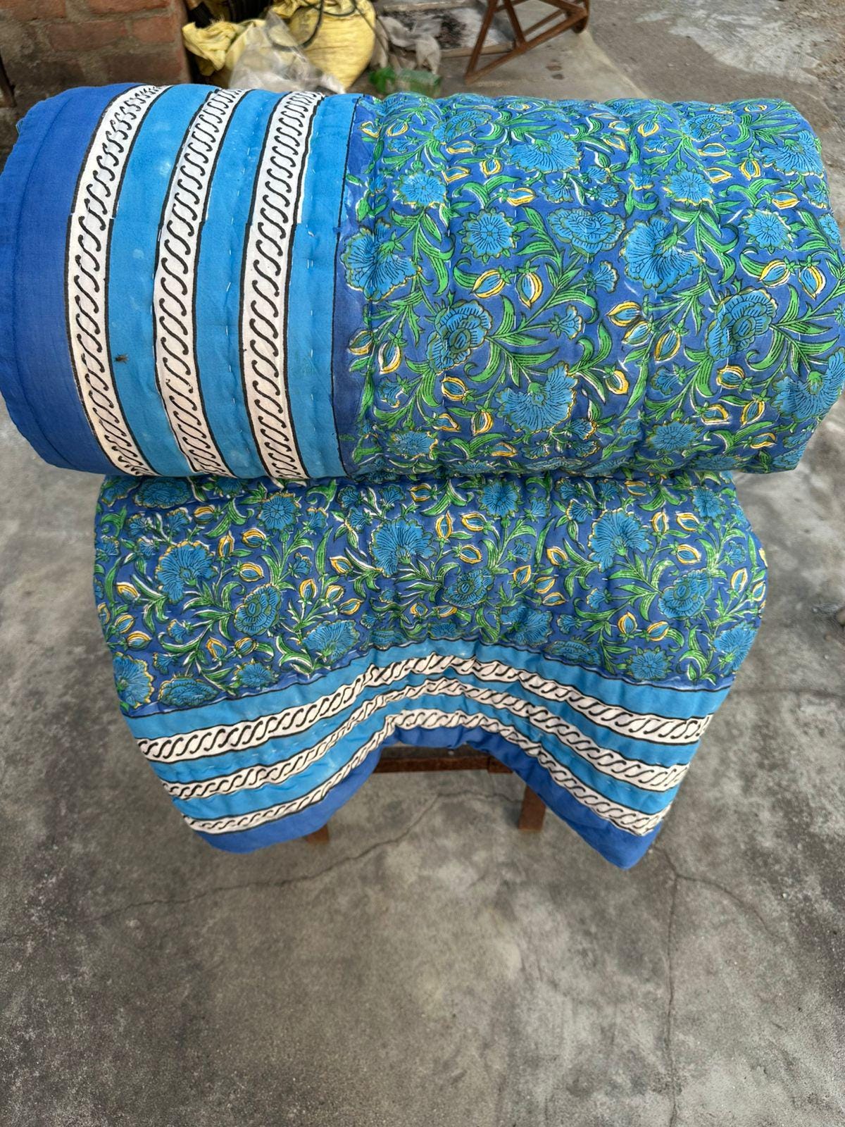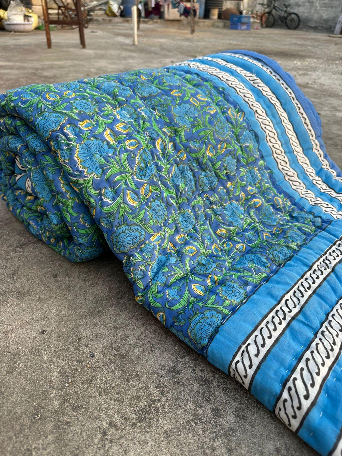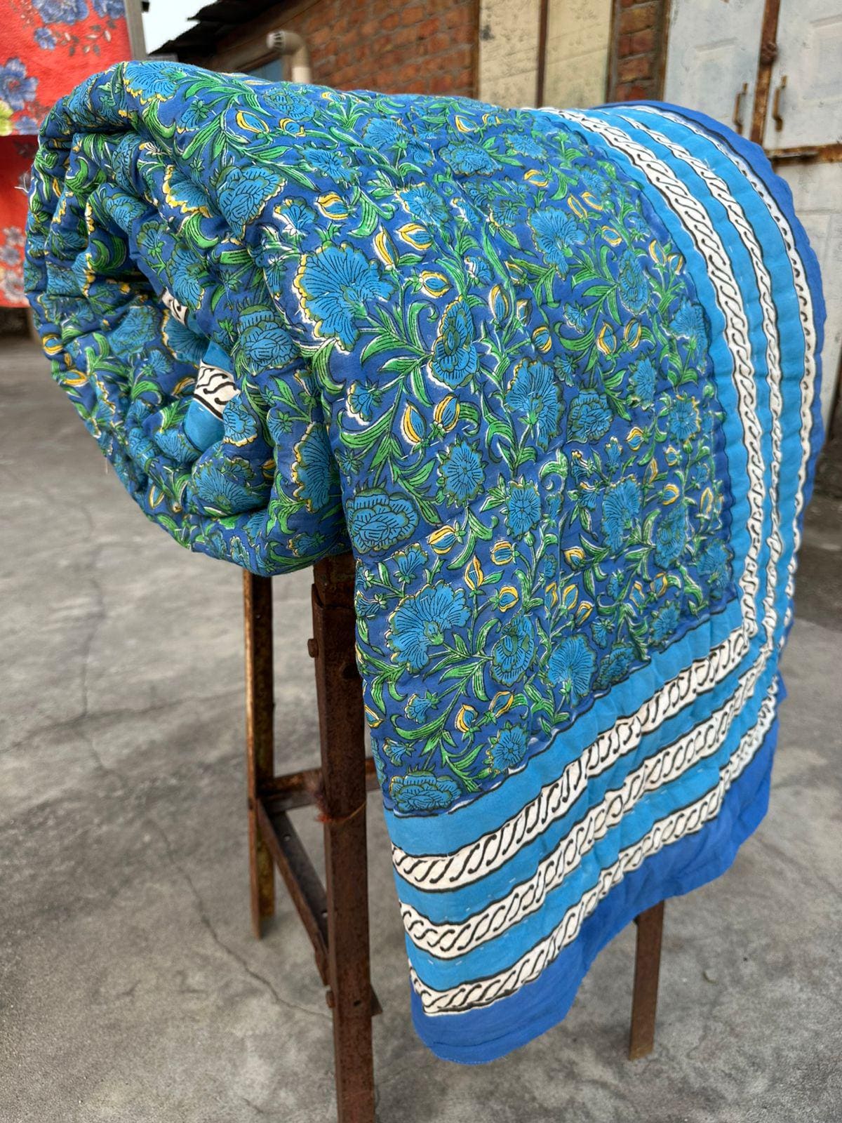 Indulge in the artistry of traditional craftsmanship with our exquisite Hand Stitched Hand Block Print Quilt. Each quilt is a masterpiece of skill and creativity, meticulously crafted by skilled artisans in Jaipur, India. From the intricate hand block printing to the careful stitching, every step in the process is a labor of love, resulting in a quilt that's as beautiful as it is functional.