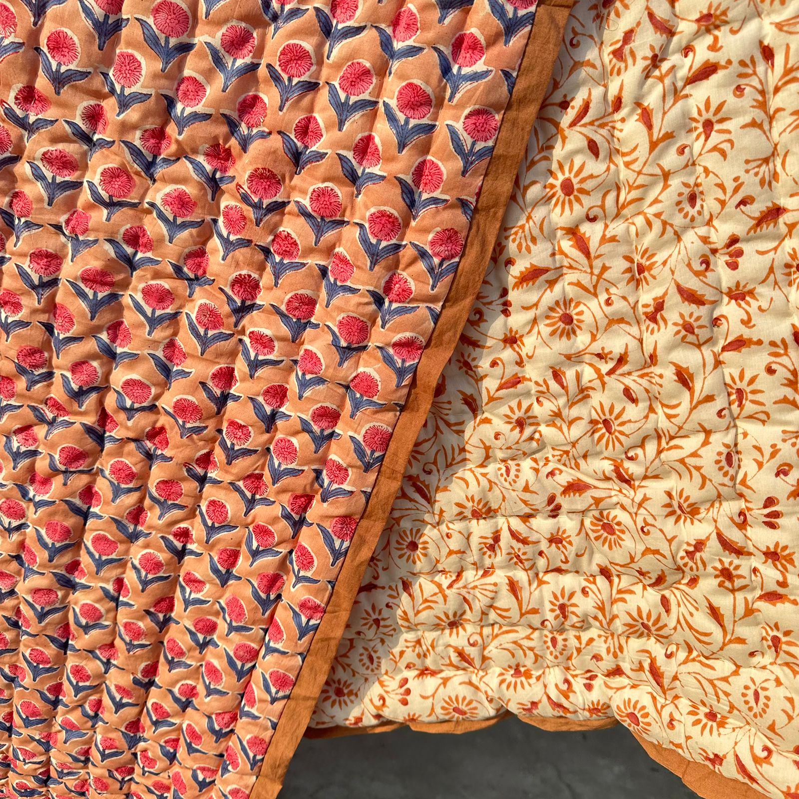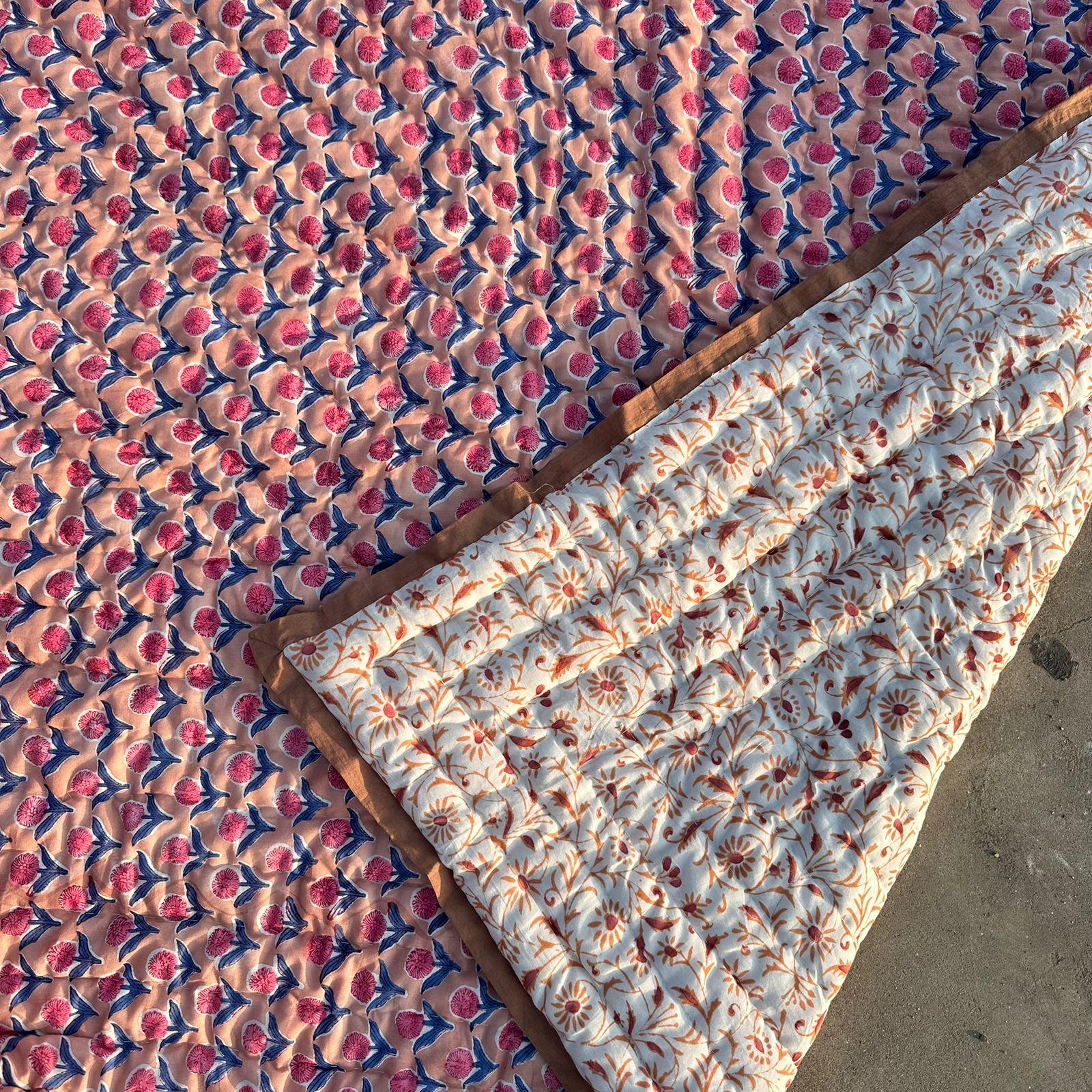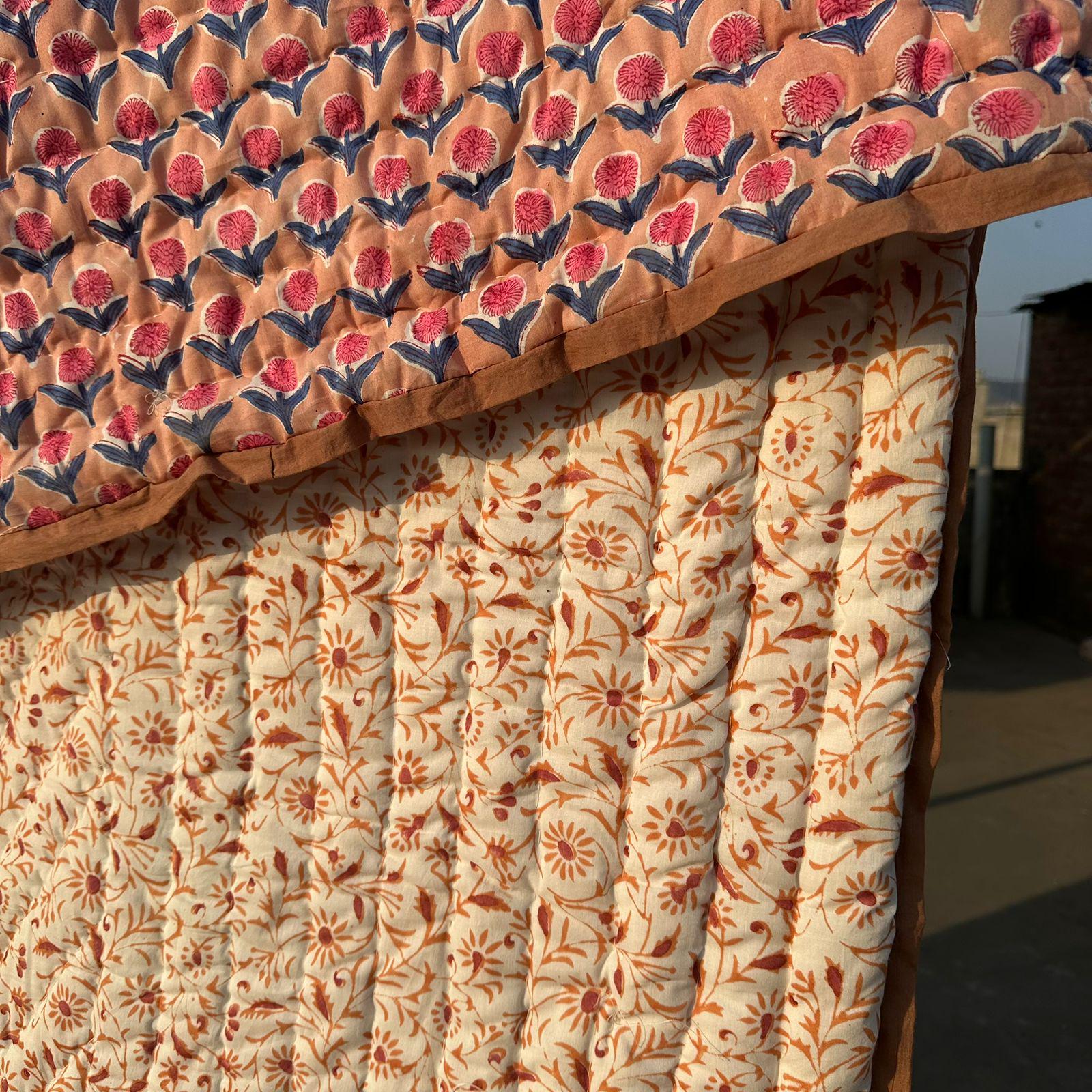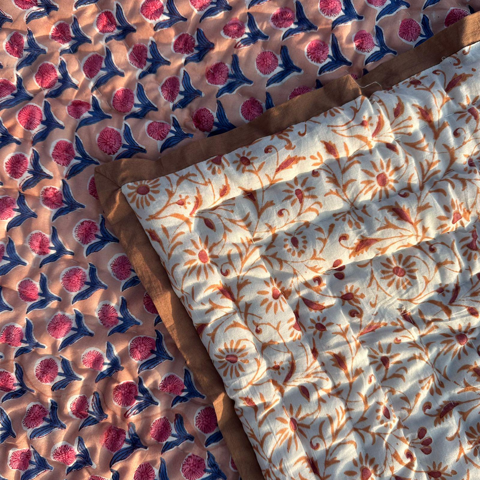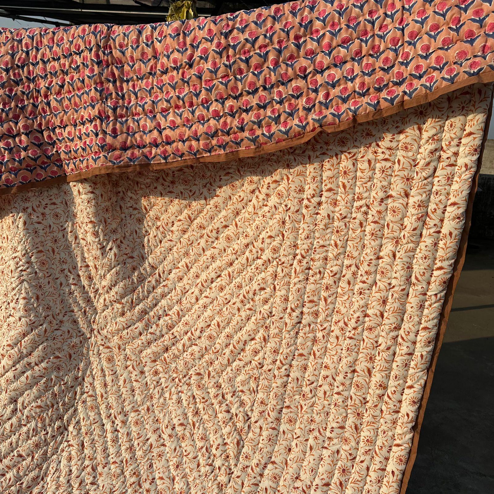 Beautiful Cotton Quilts Hand Block Printed with Hand Stitching Quilts