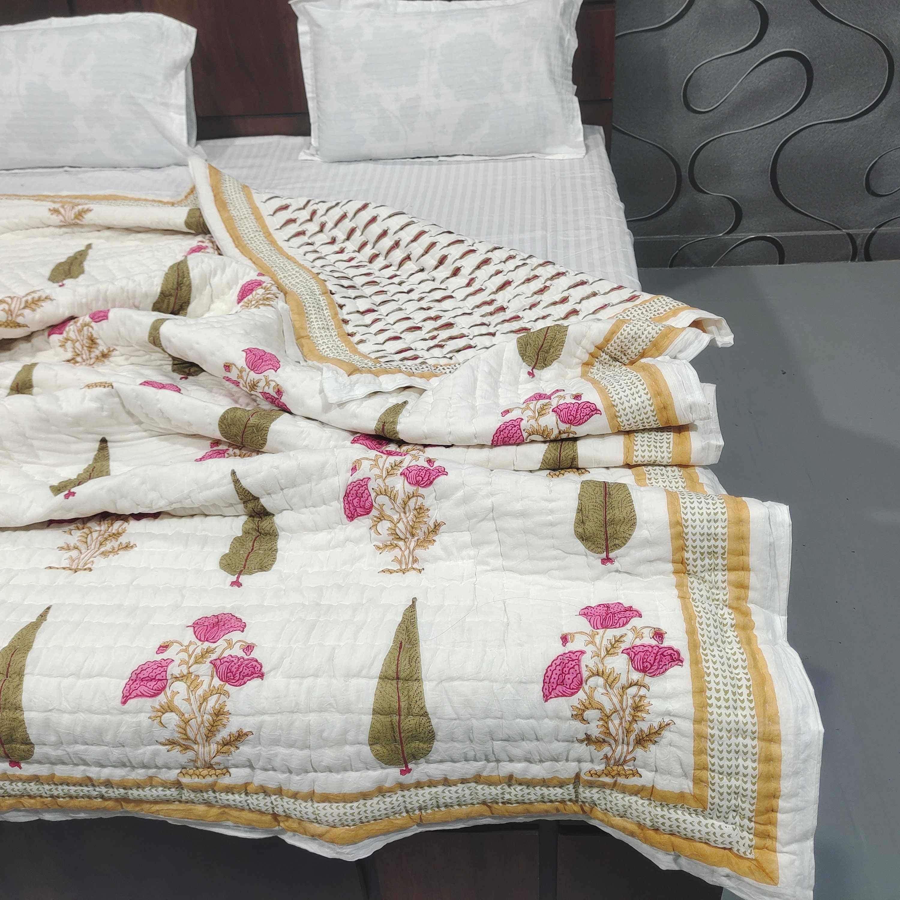 Beautiful Cotton Quilts Hand Block Printed with Hand Stitching Quilts