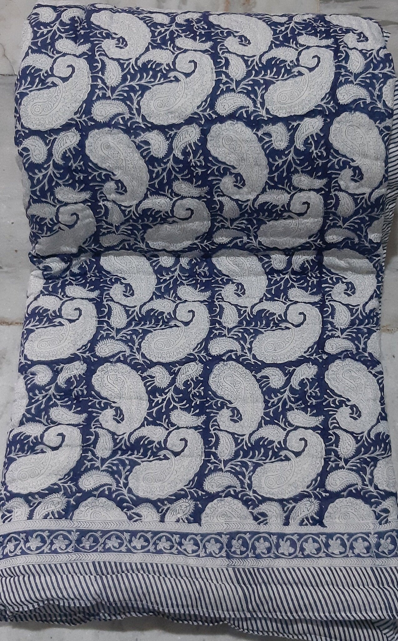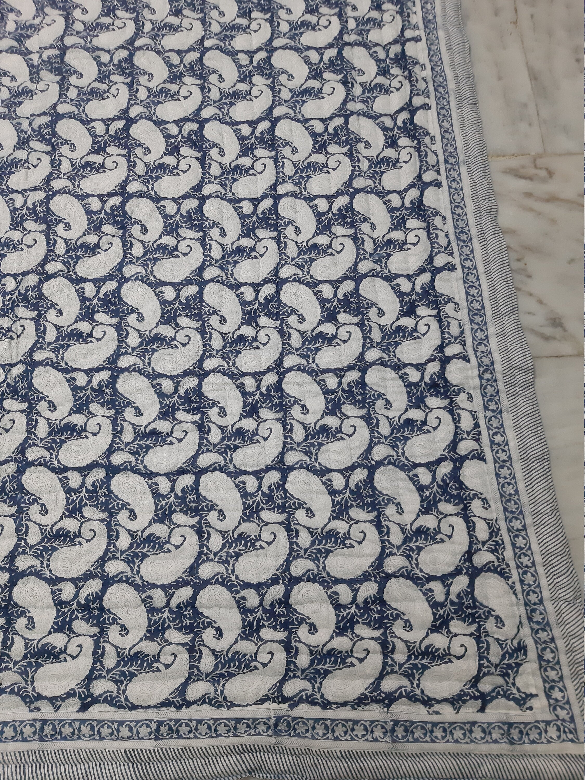 Indulge in the artistry of traditional craftsmanship with our exquisite Hand Stitched Hand Block Print Quilt. Each quilt is a masterpiece of skill and creativity, meticulously crafted by skilled artisans in Jaipur, India. From the intricate hand block printing to the careful stitching, every step in the process is a labor of love, resulting in a quilt that's as beautiful as it is functional.
