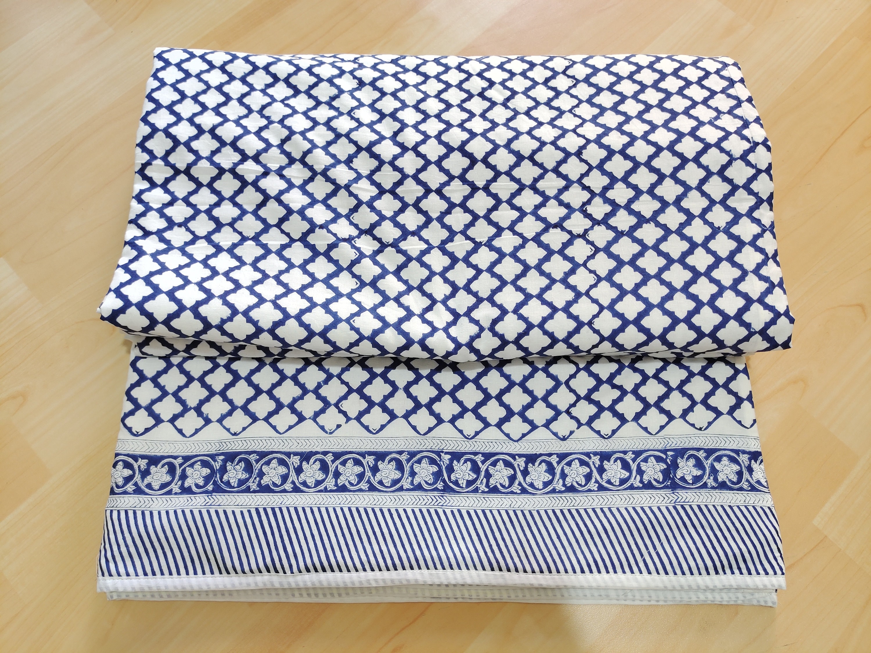 Experience the perfect blend of comfort and style with our Hand Block Printed AC Blanket (Dohar). Crafted with the same exquisite artistry as our quilts, this lightweight blanket is designed for optimal airflow and cooling comfort during warmer months. Made from soft and breathable mal mal fabric, each blanket features intricate hand block printing, adding a touch of artisanal elegance to your bedroom decor.
