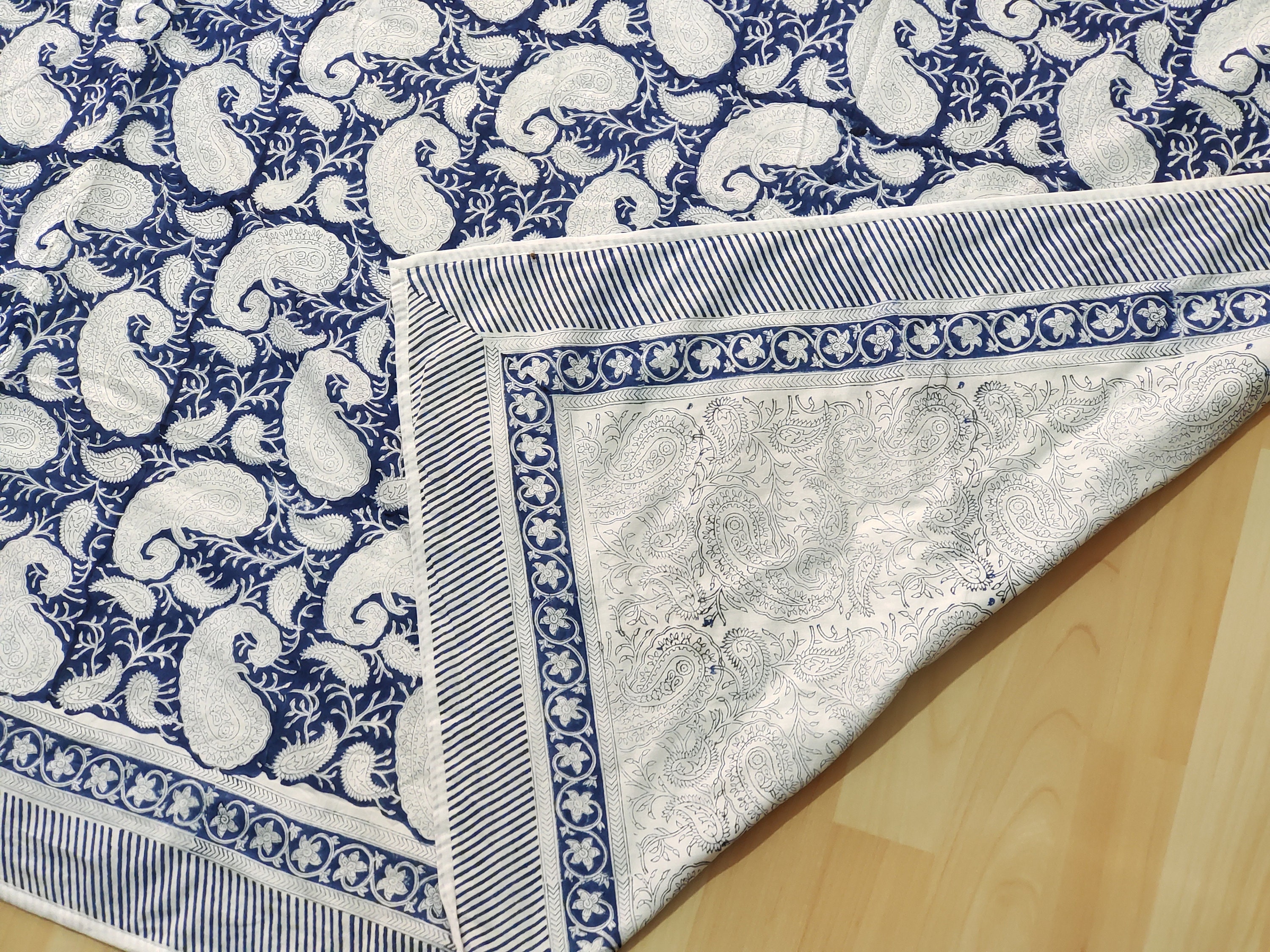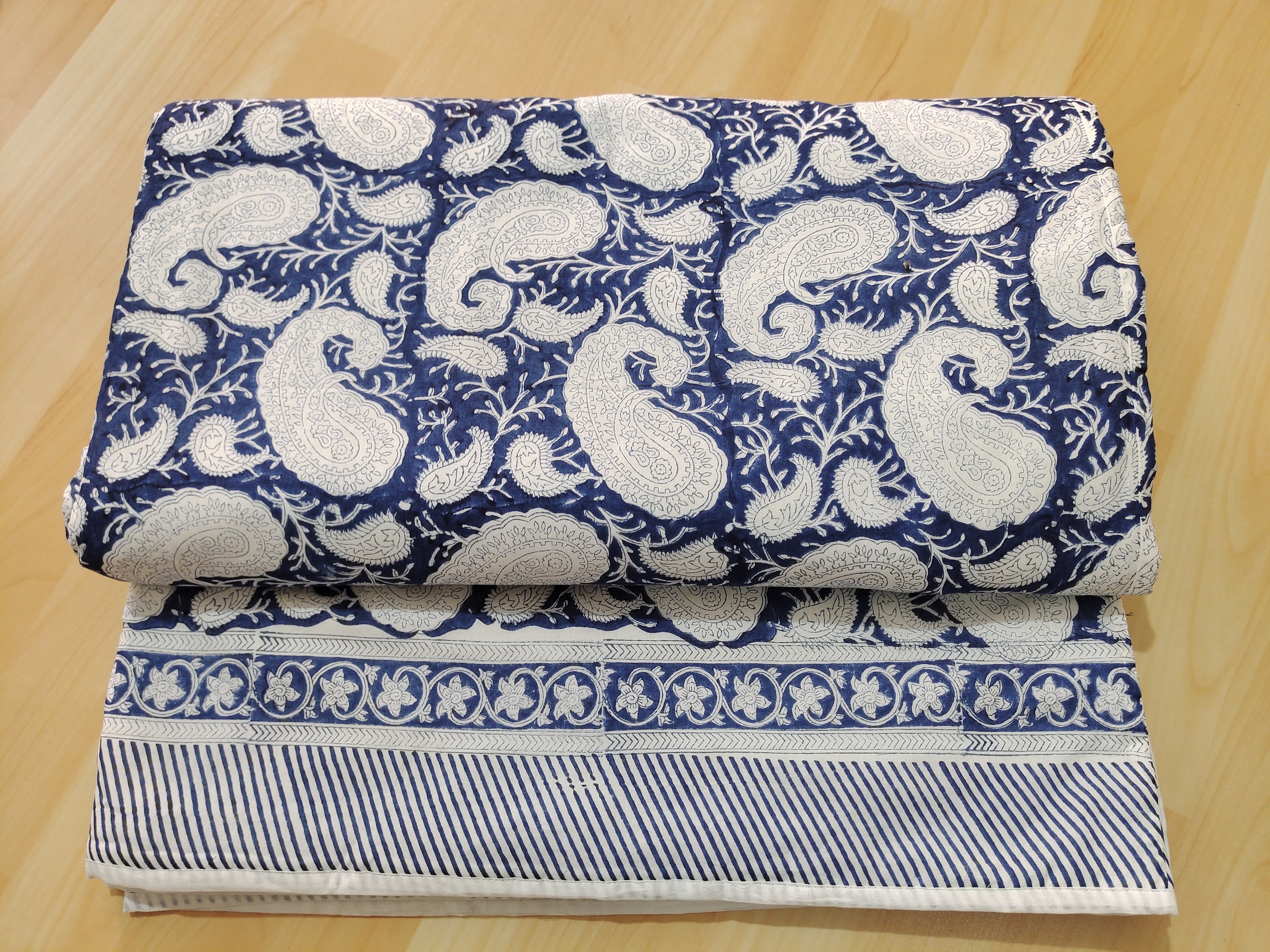 Experience the perfect blend of comfort and style with our Hand Block Printed AC Blanket (Dohar). Crafted with the same exquisite artistry as our quilts, this lightweight blanket is designed for optimal airflow and cooling comfort during warmer months. Made from soft and breathable mal mal fabric, each blanket features intricate hand block printing, adding a touch of artisanal elegance to your bedroom decor.
