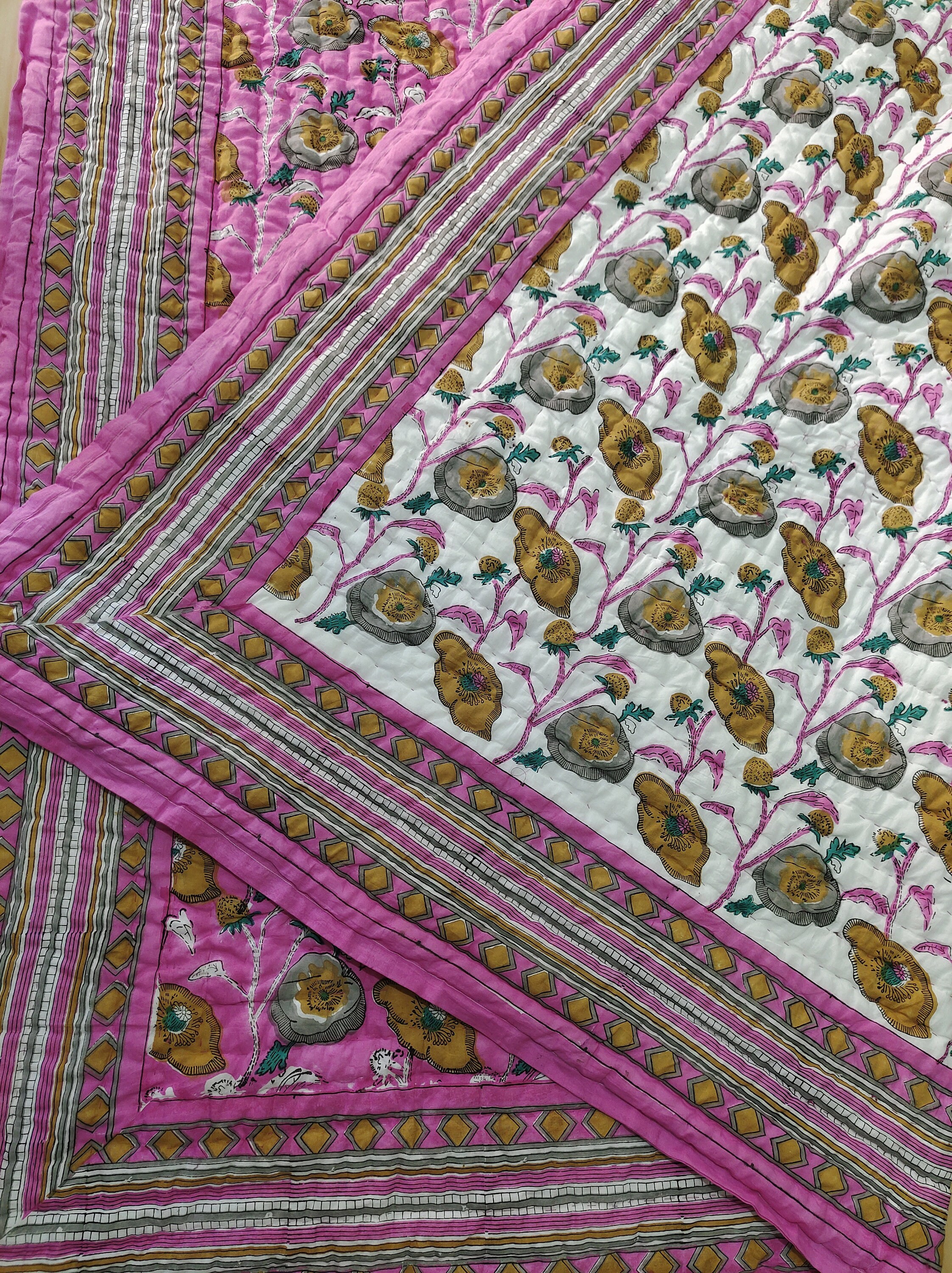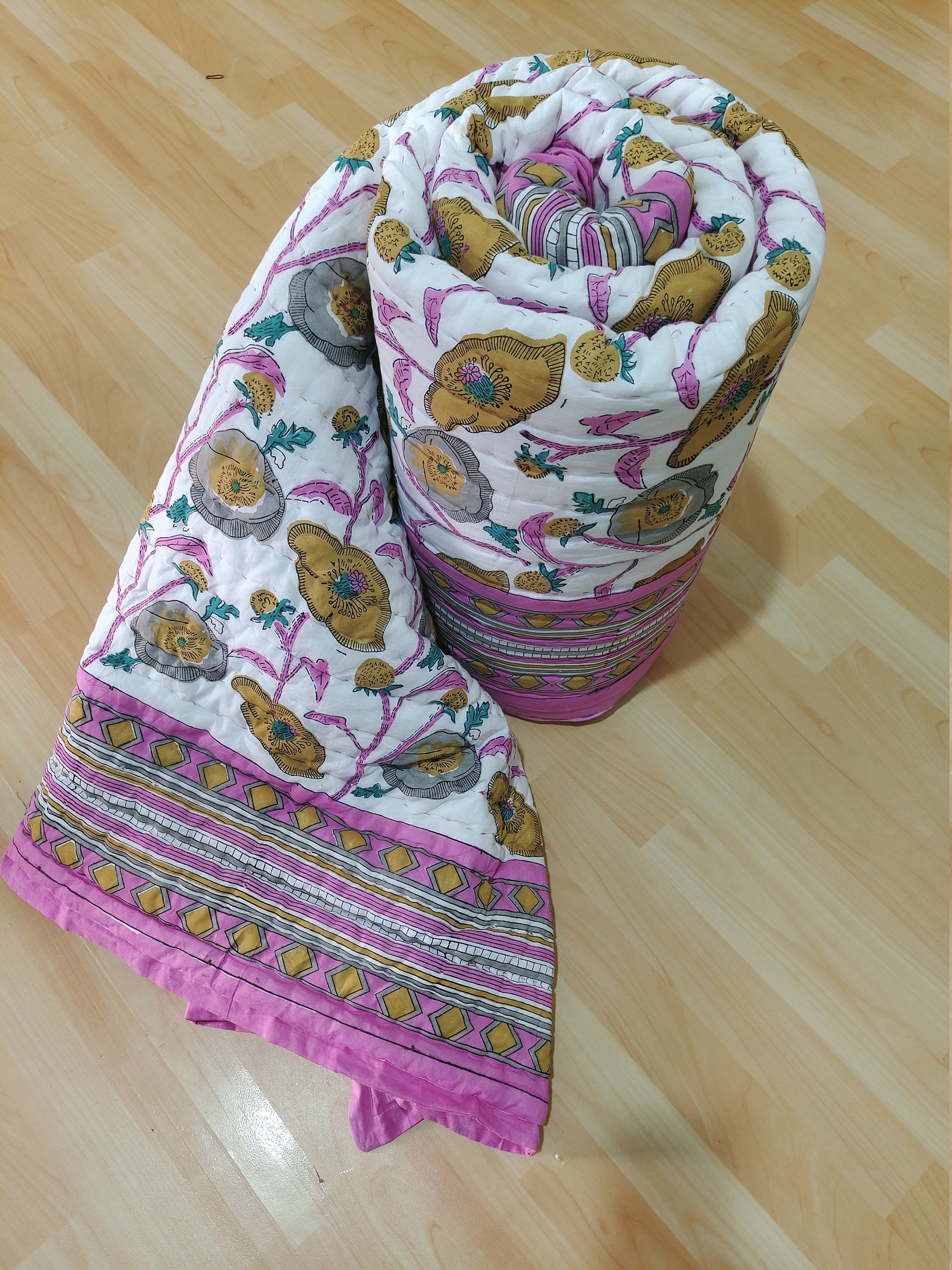 Beautiful Cotton Quilts Hand Block Printed with Hand Stitching Quilts